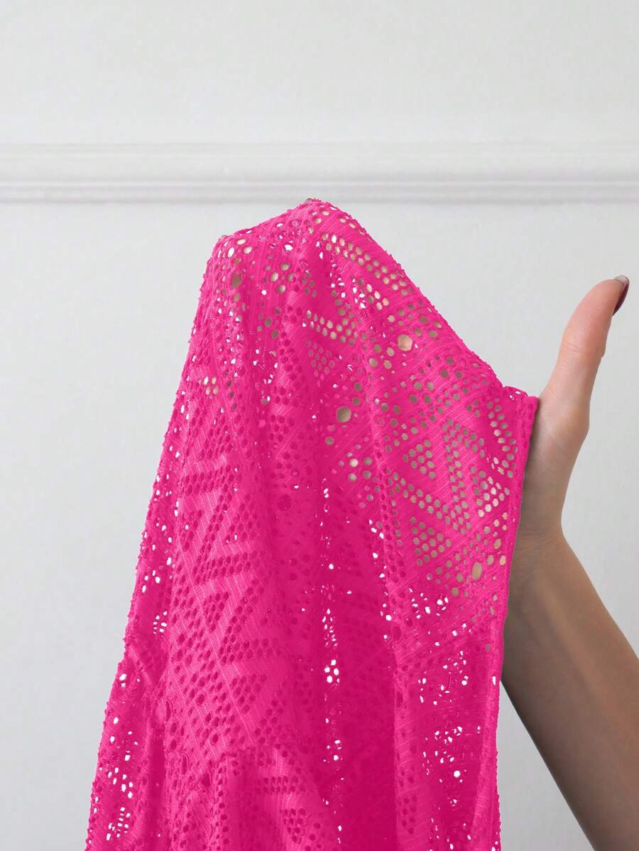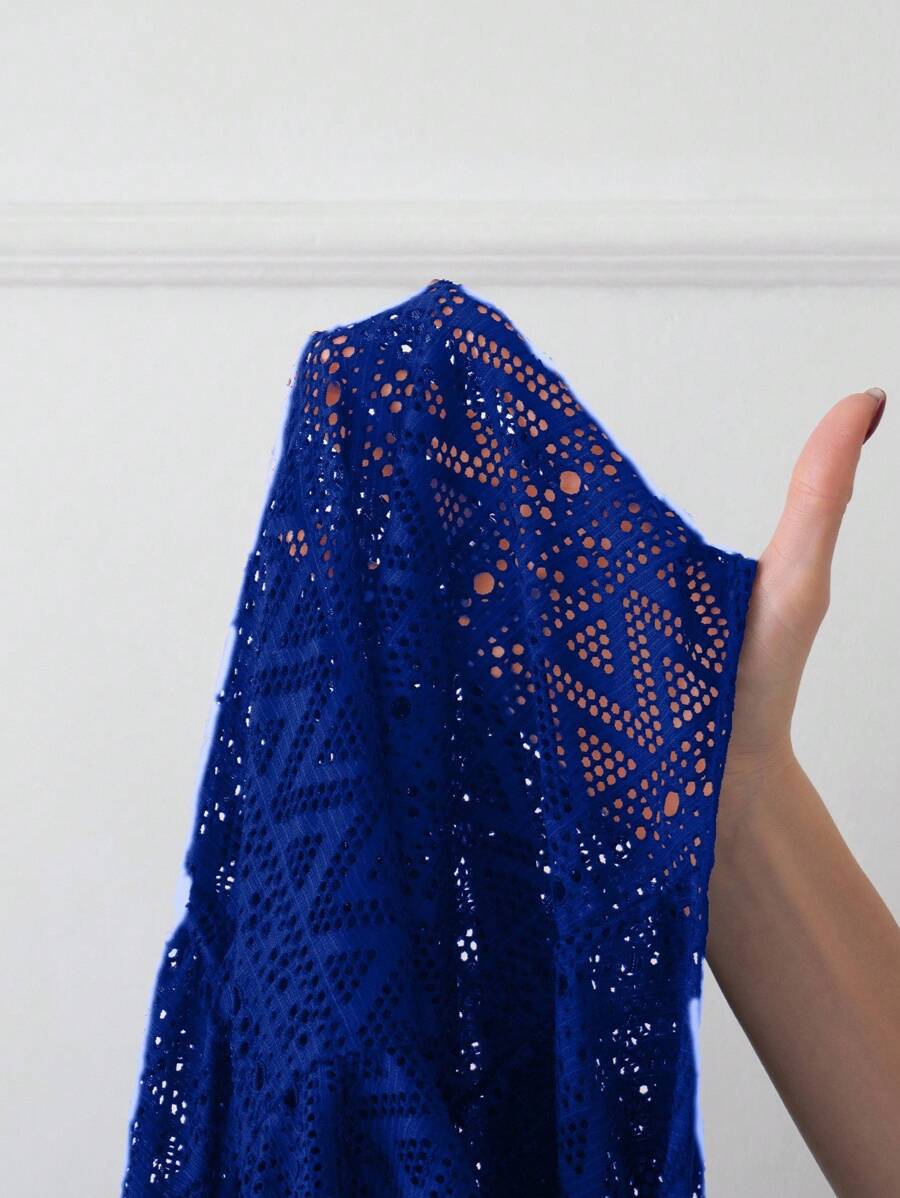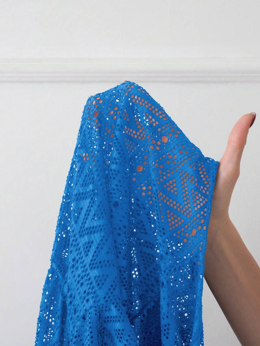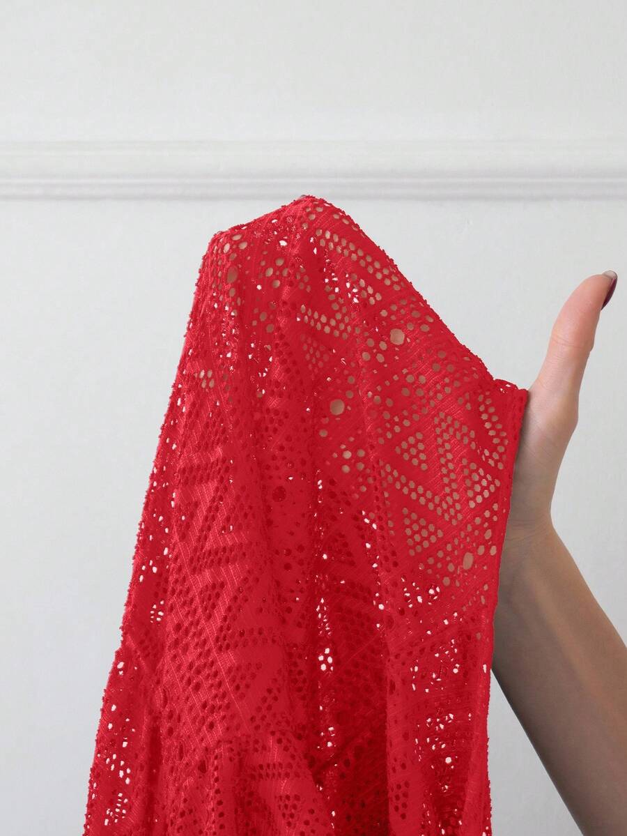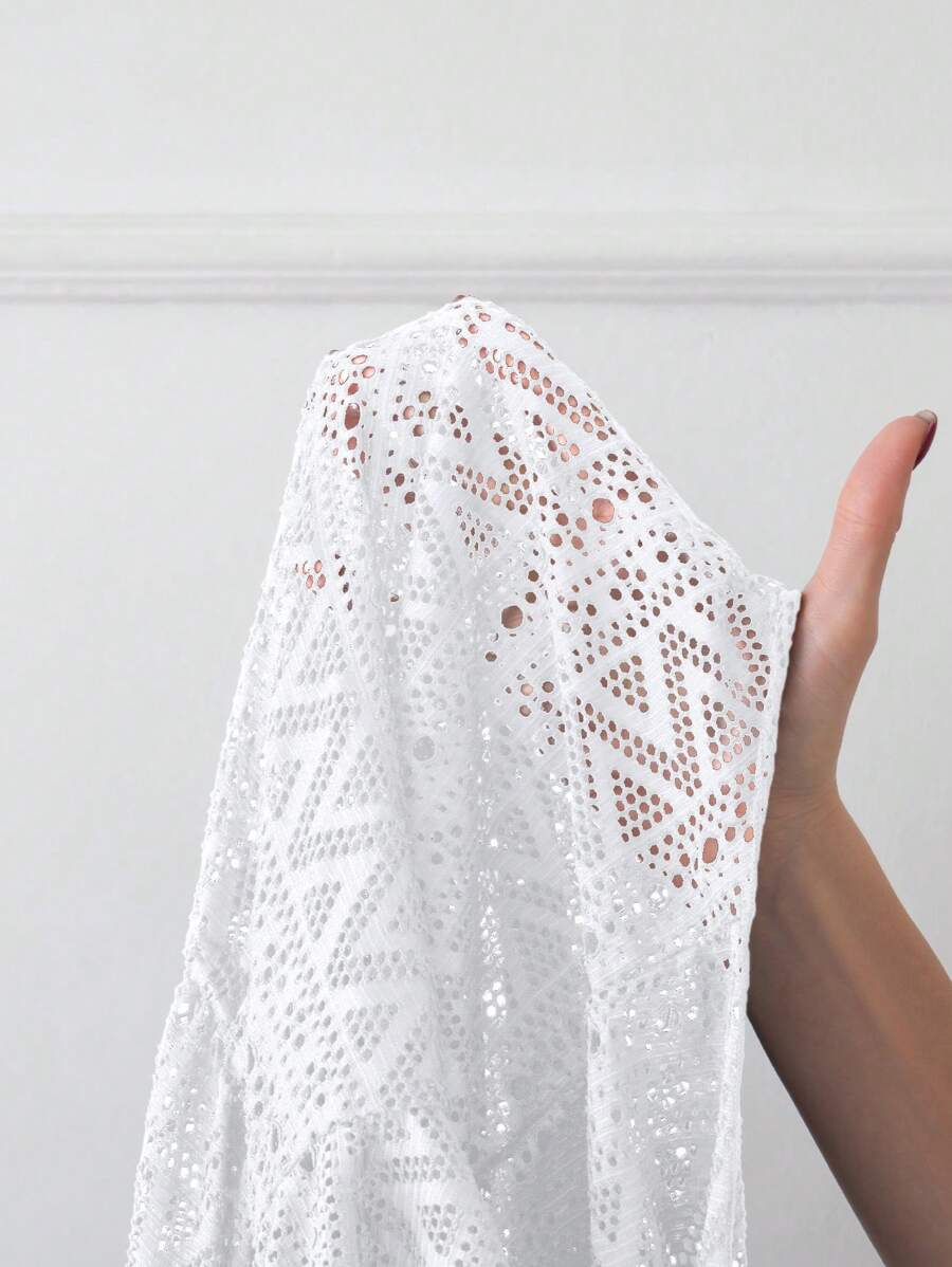 Vestido de playa para mujer con escote en v, manga corta, cintura calada y lazo