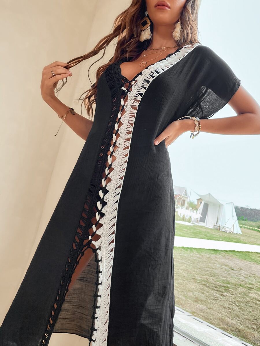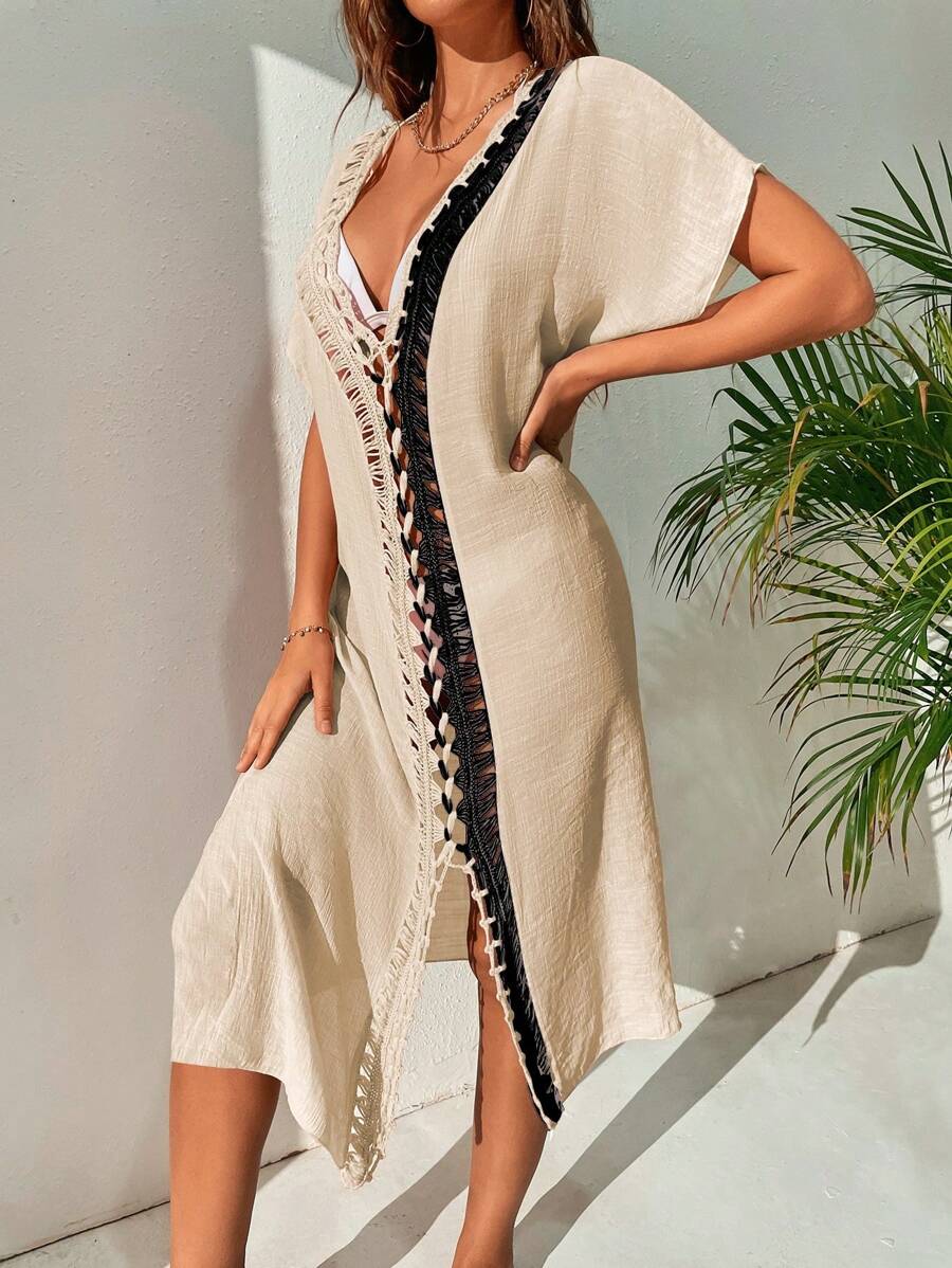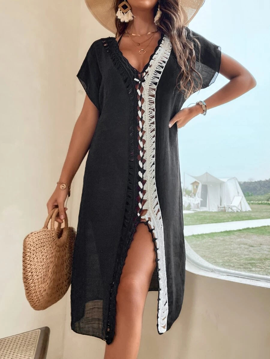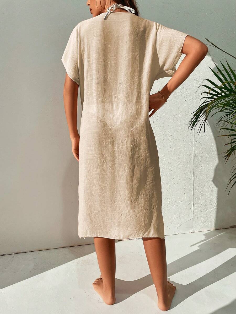 Vestido holgado de gasa con abertura lateral de color contrastante para mujer, ideal para vacaciones de verano