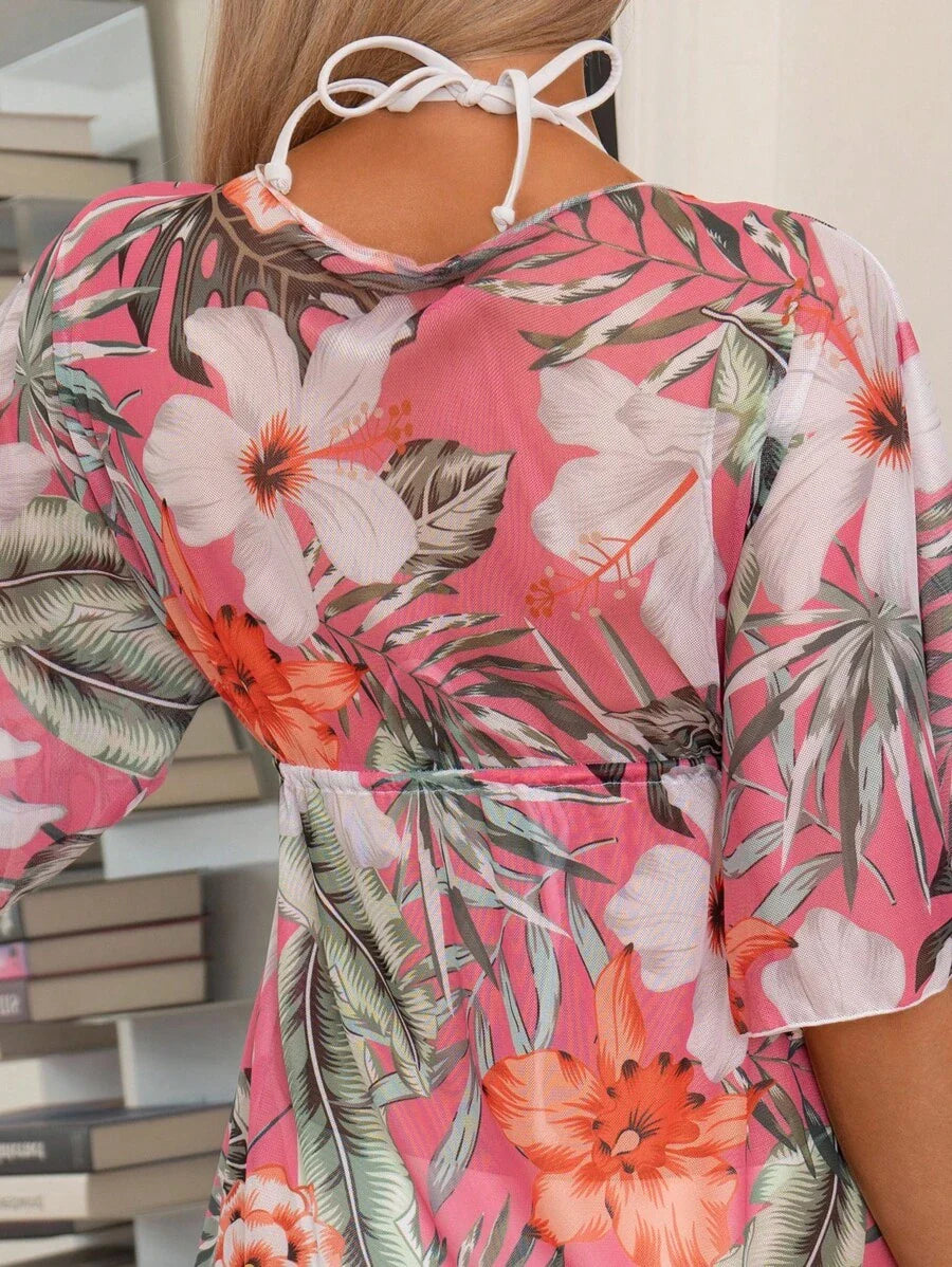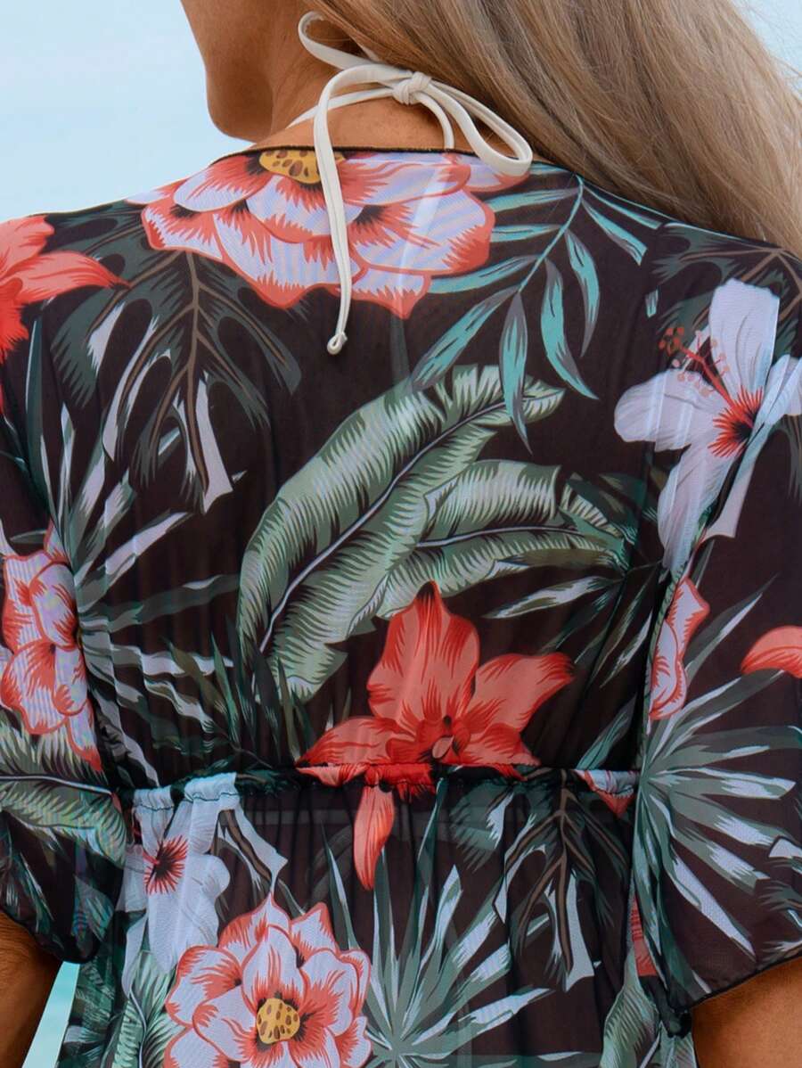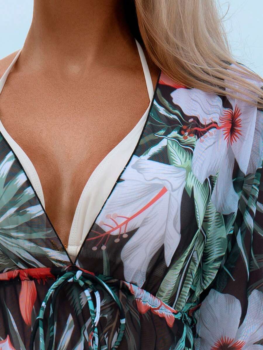 Lushoire ropa de playa con estampado floral, cuello en v profundo, baj – Muy Bonita
