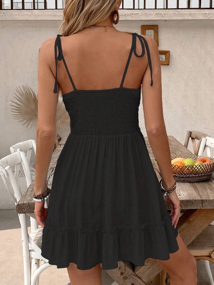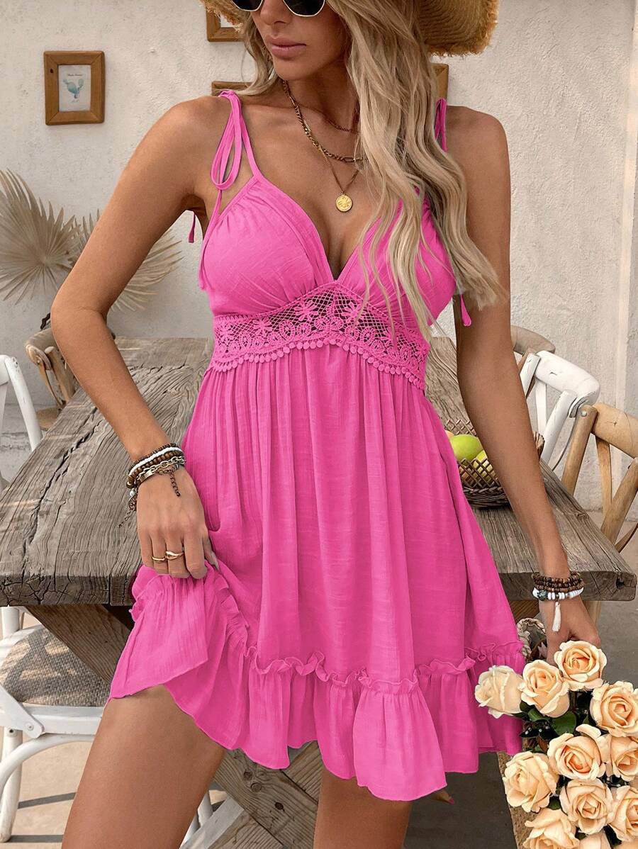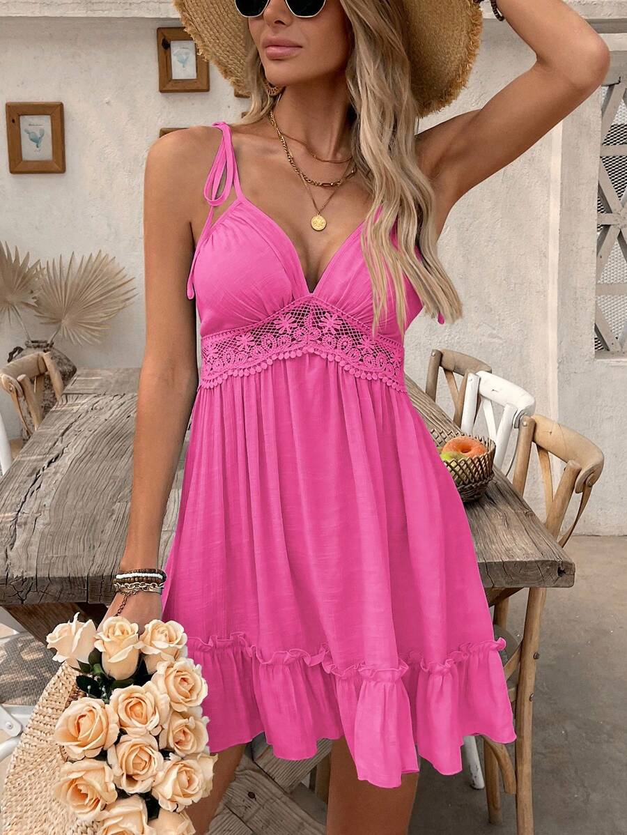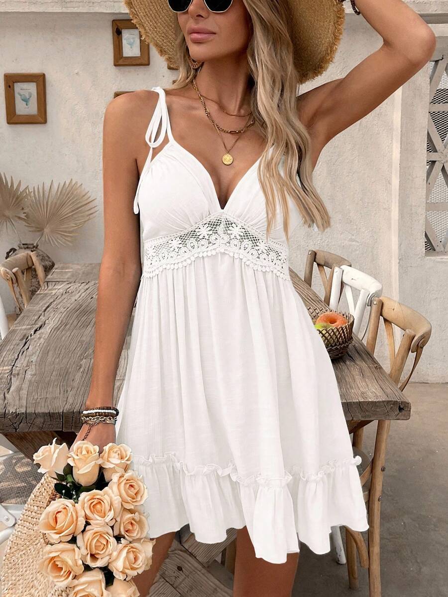 Detalles: Espalda al aire, Encaje en contraste, Bajo con volante
