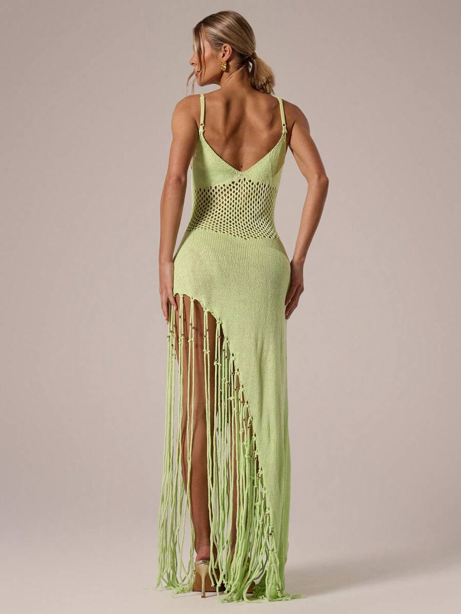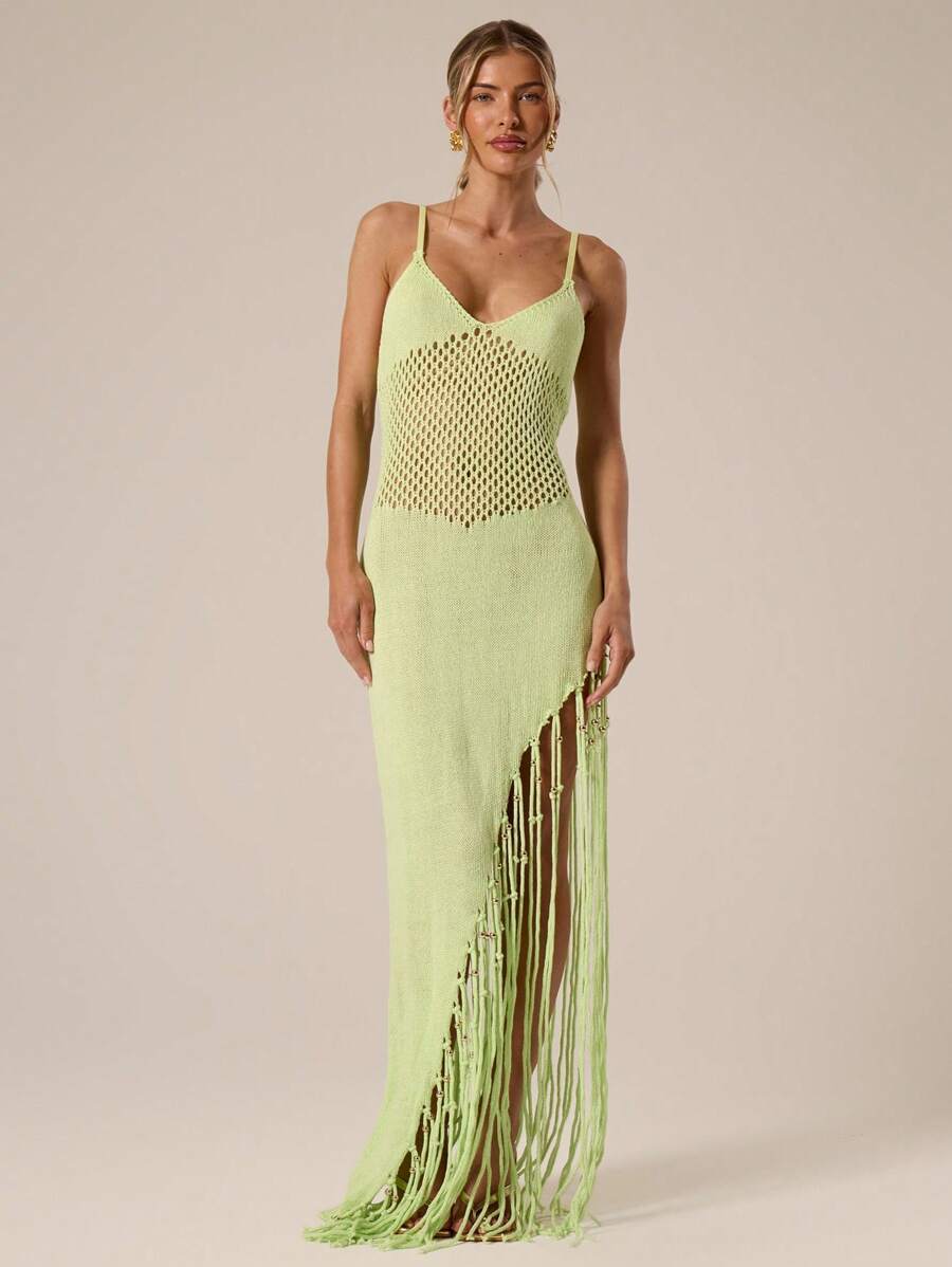 Vestido crochet de punto con detalle de flecos con cuentas, vestido aj – Muy Bonita