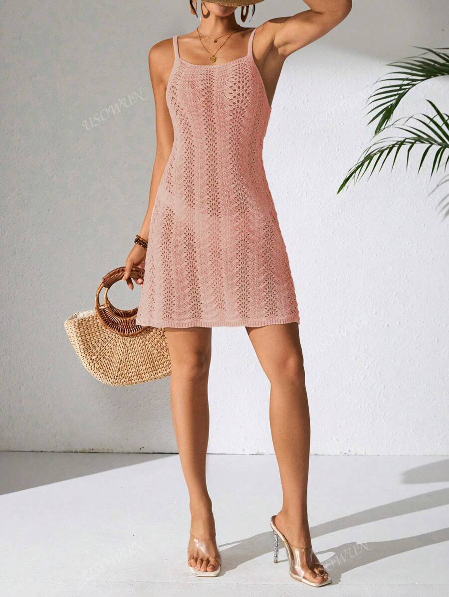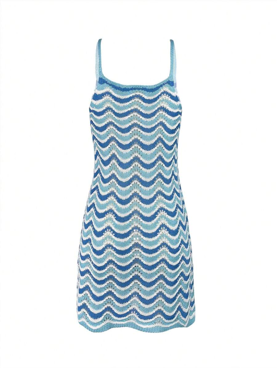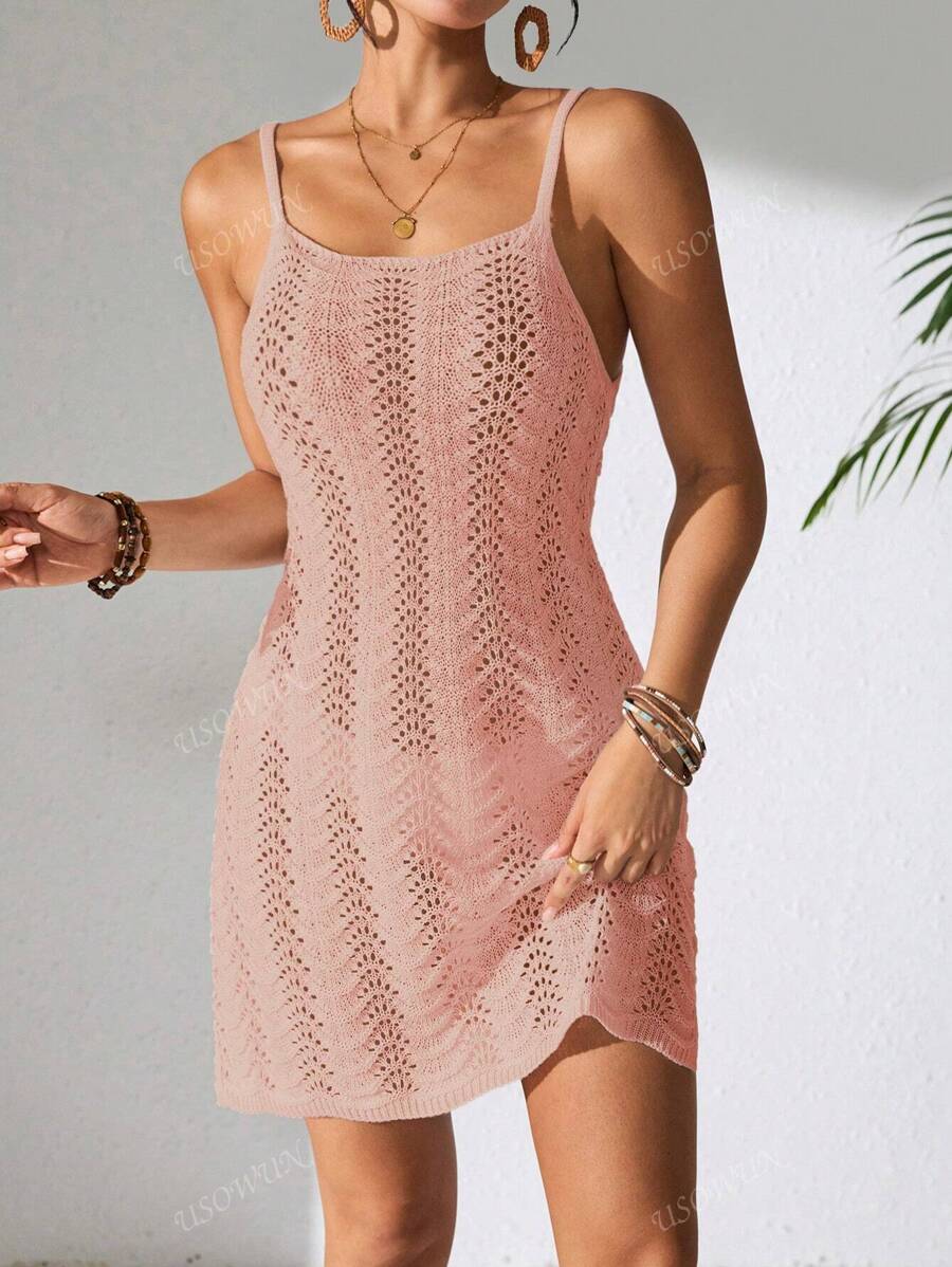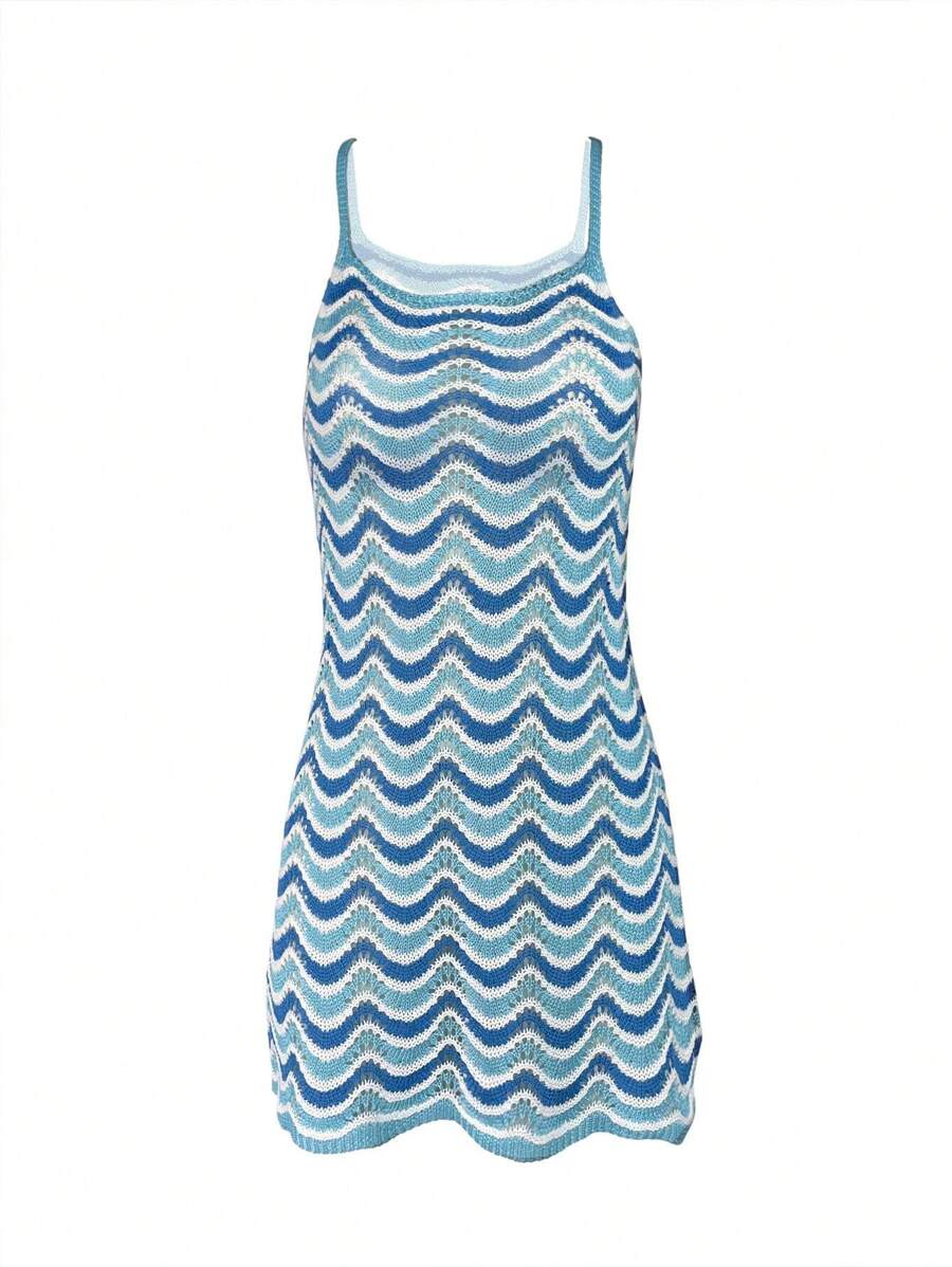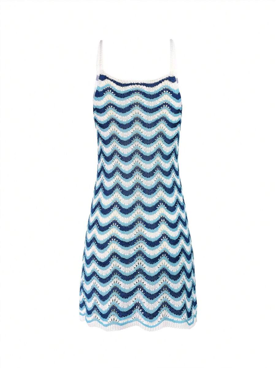 Vestido mini de mujer de verano bohemio con efecto degradado, transparente y calado, tipo camisola