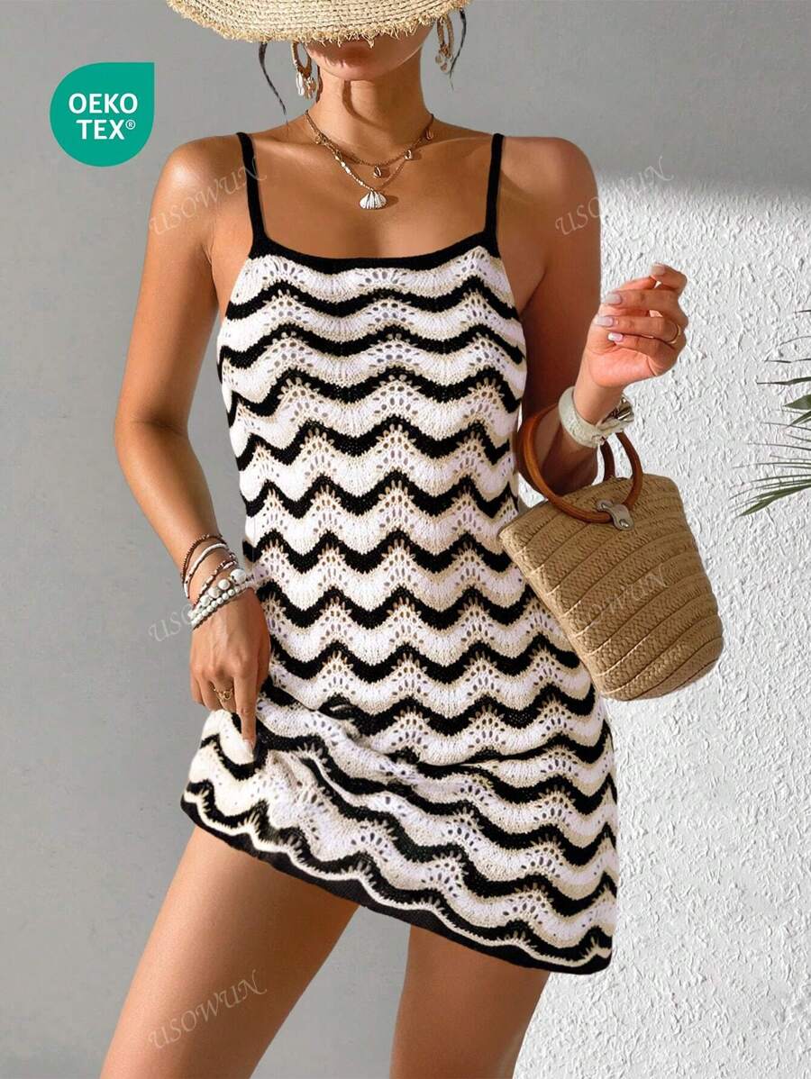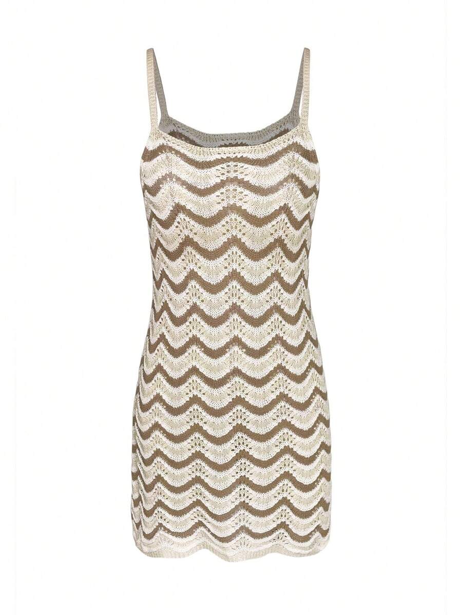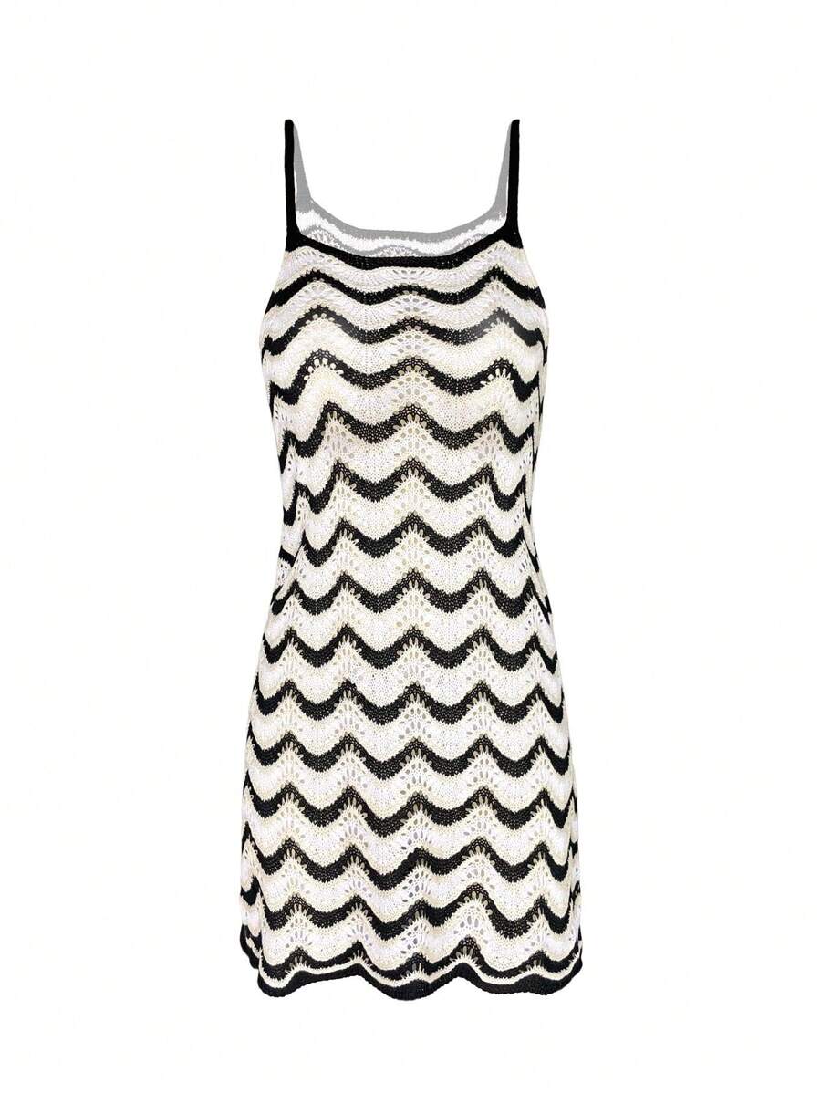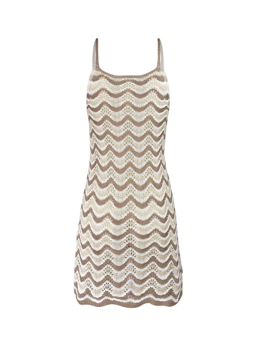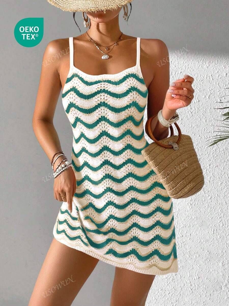 Vestido mini de mujer de verano bohemio con efecto degradado, transparente y calado, tipo camisola