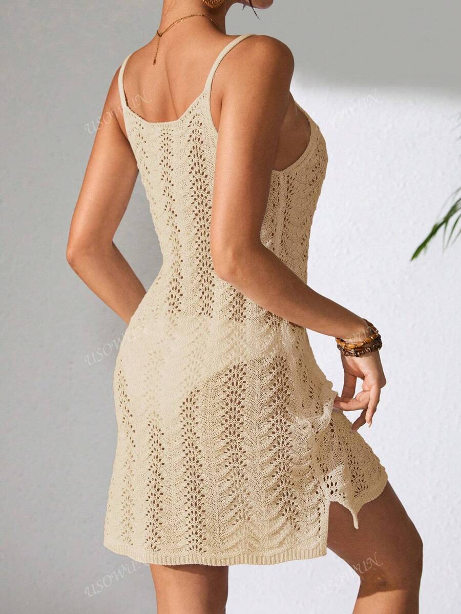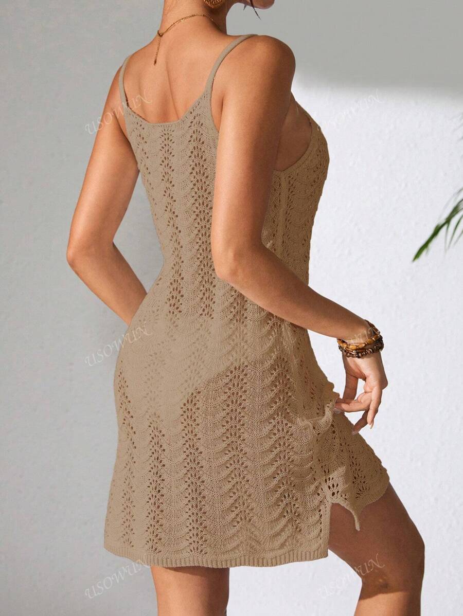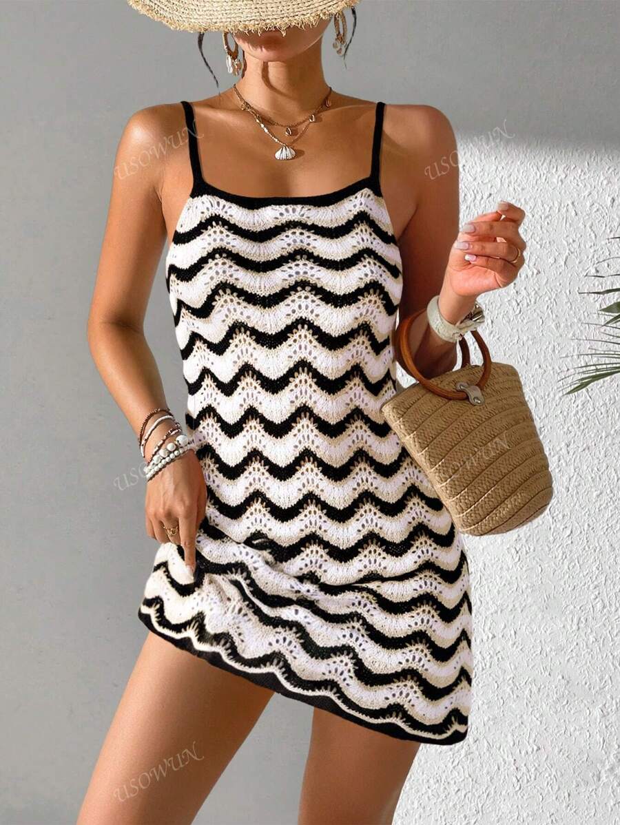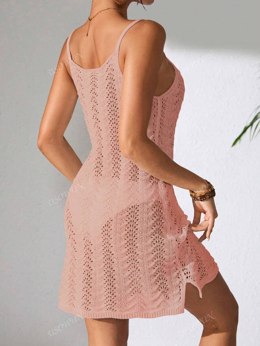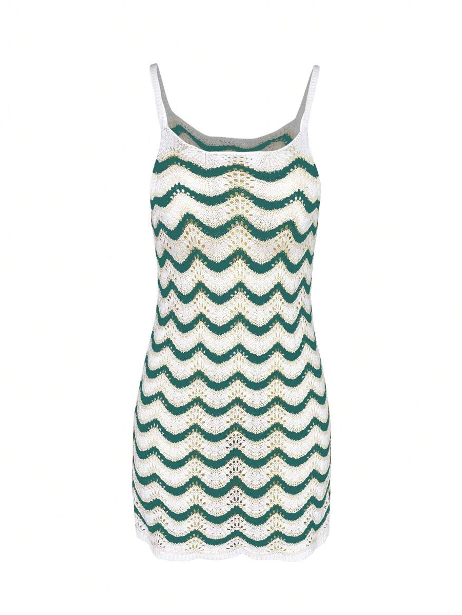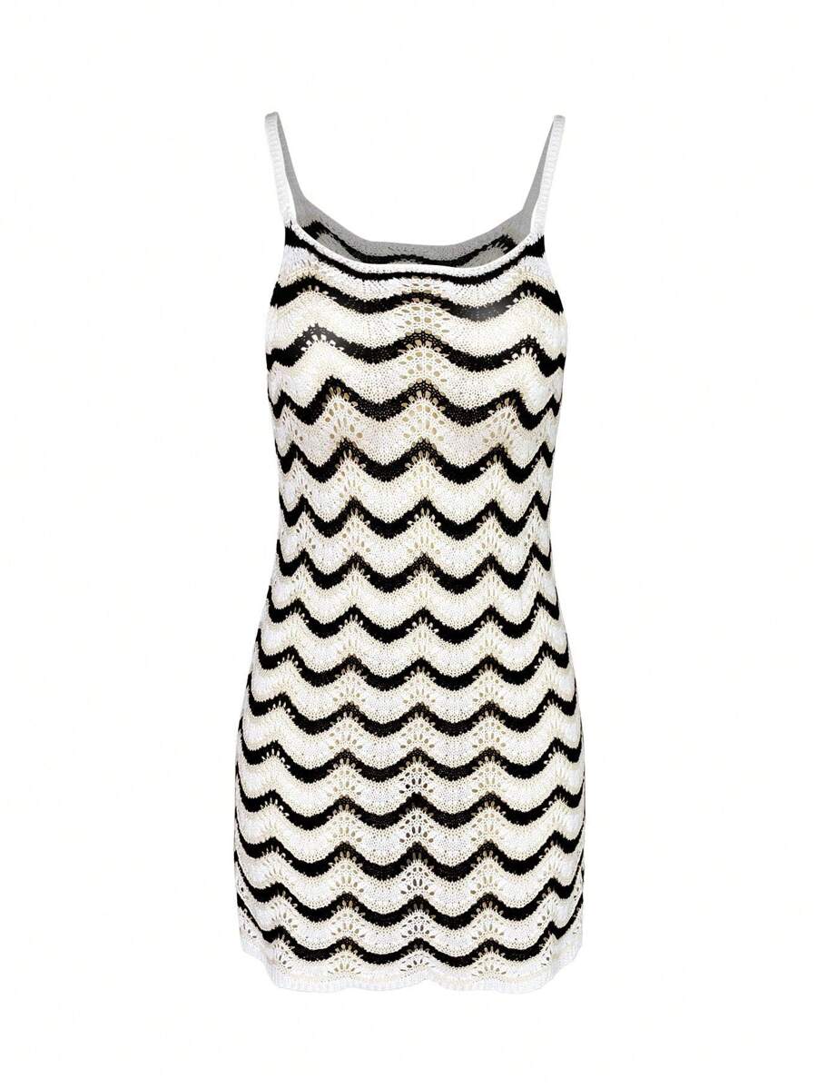 Vestido mini de mujer de verano bohemio con efecto degradado, transparente y calado, tipo camisola