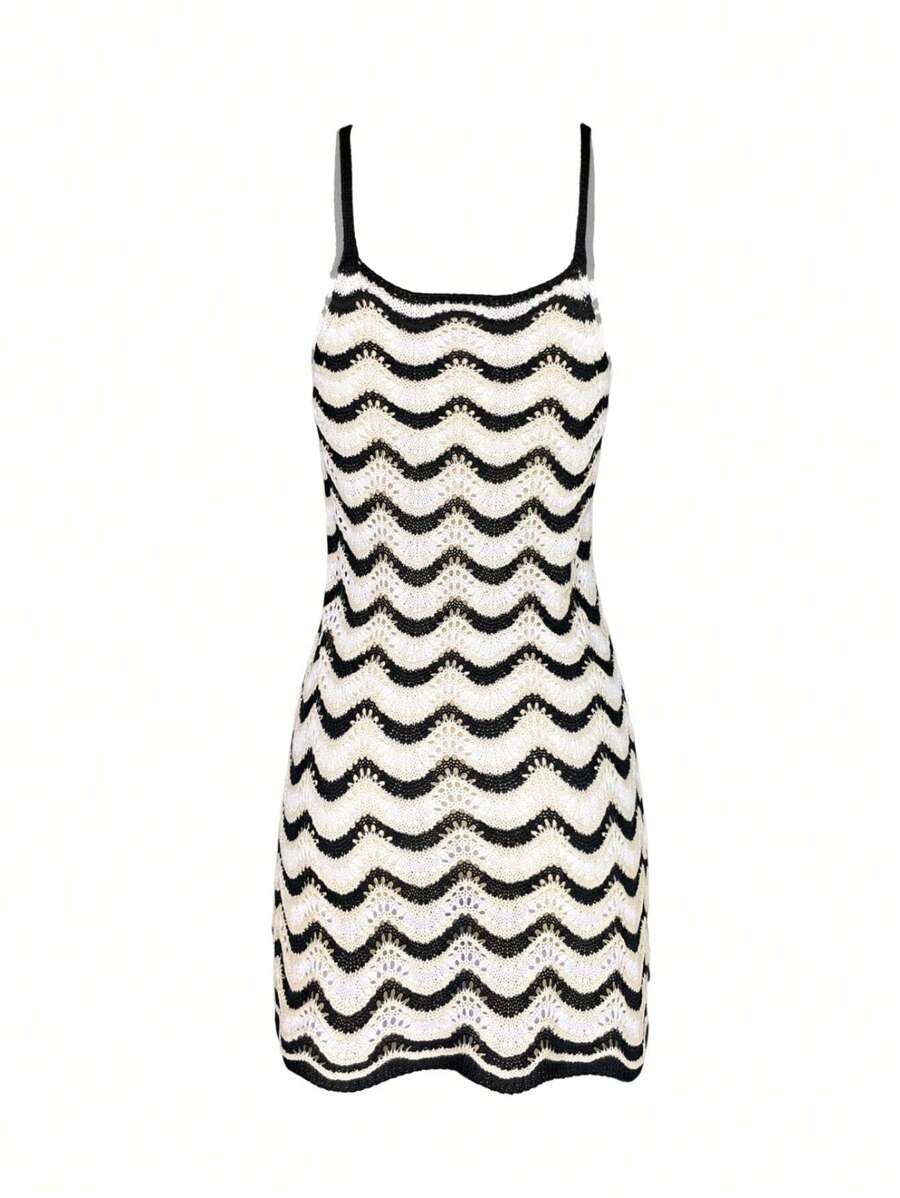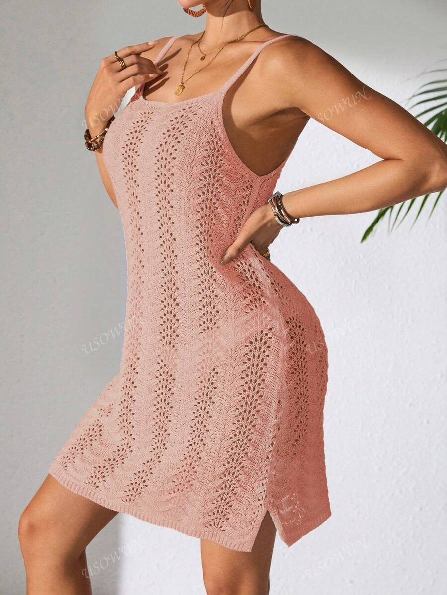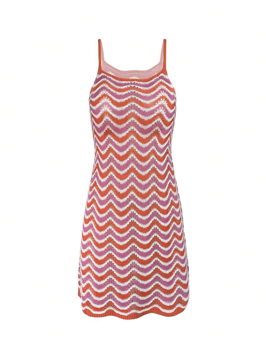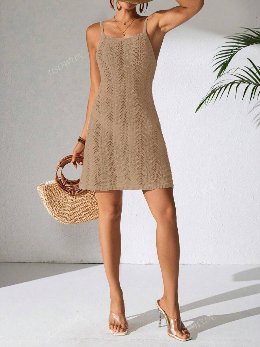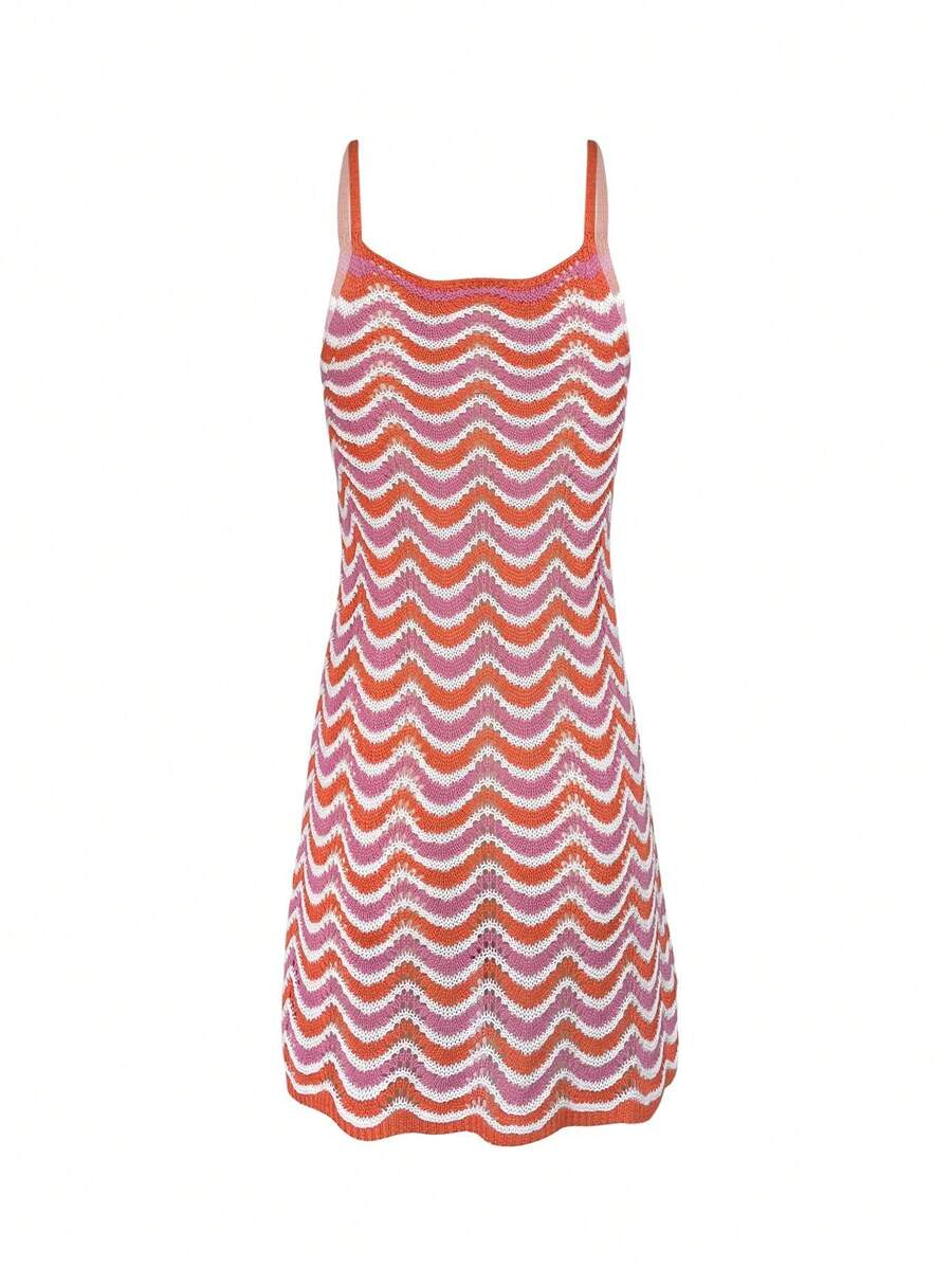 Vestido mini de mujer de verano bohemio con efecto degradado, transparente y calado, tipo camisola