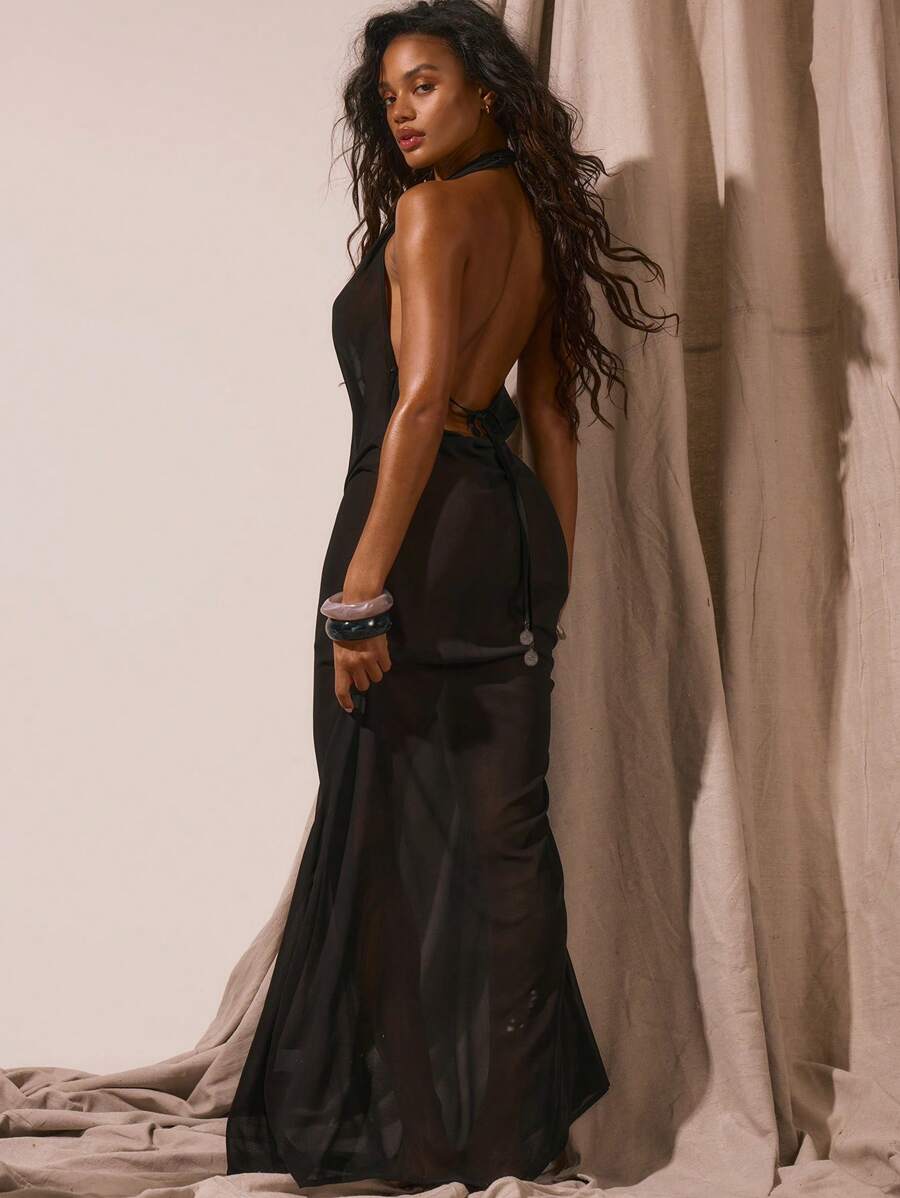 Detalles: Espalda al aire, Cruzado, Cremallera