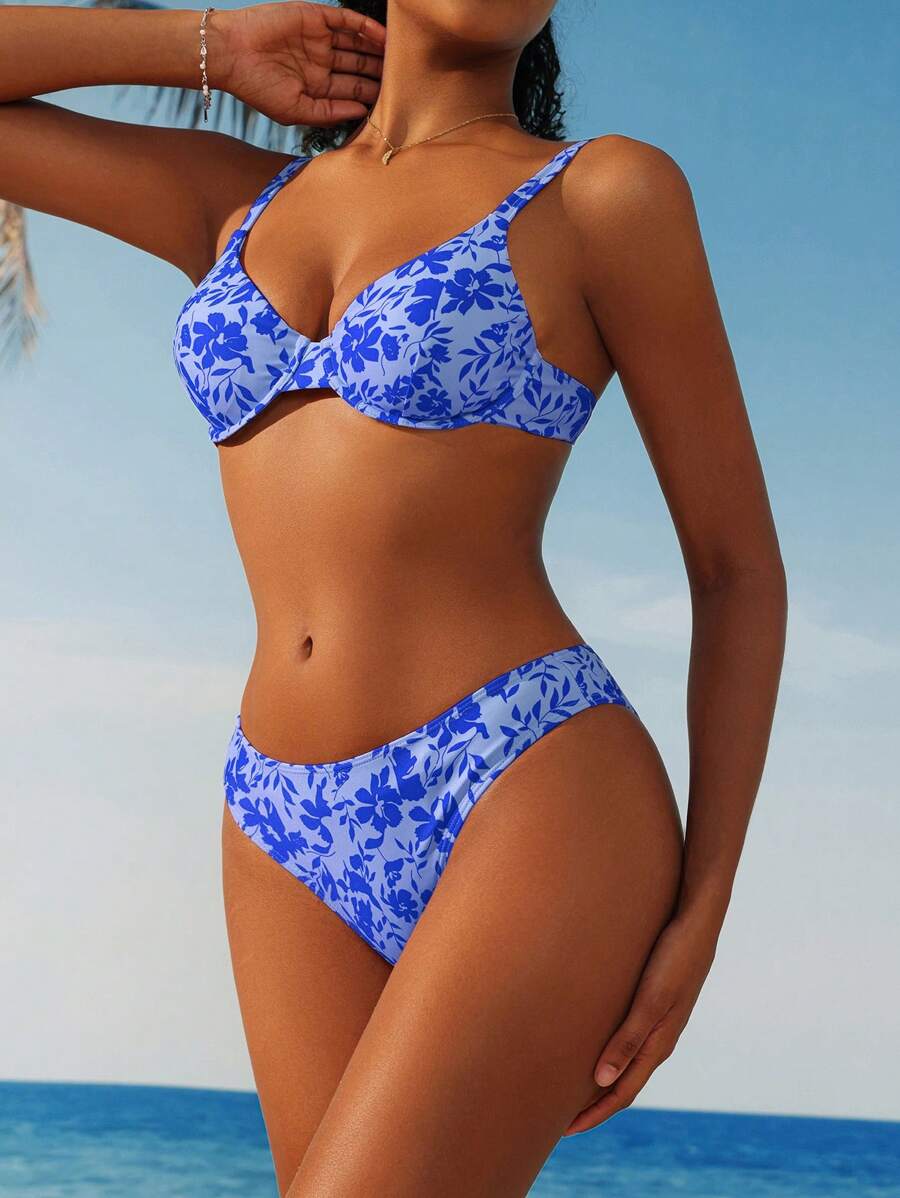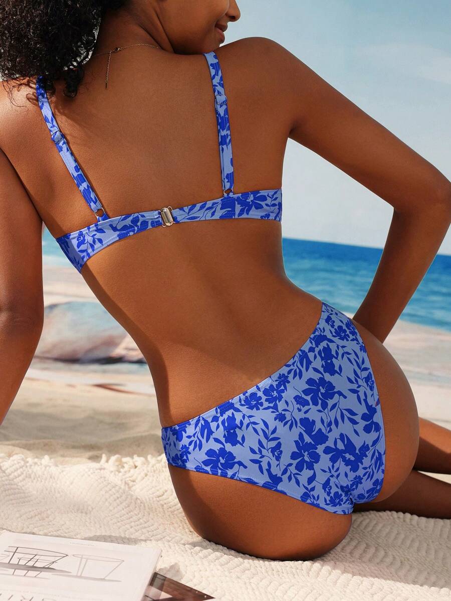 Conjunto de bikini de estampado floral con cuello en v, dos piezas, pl – Muy Bonita