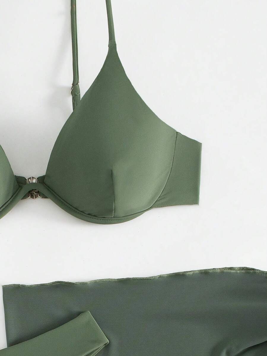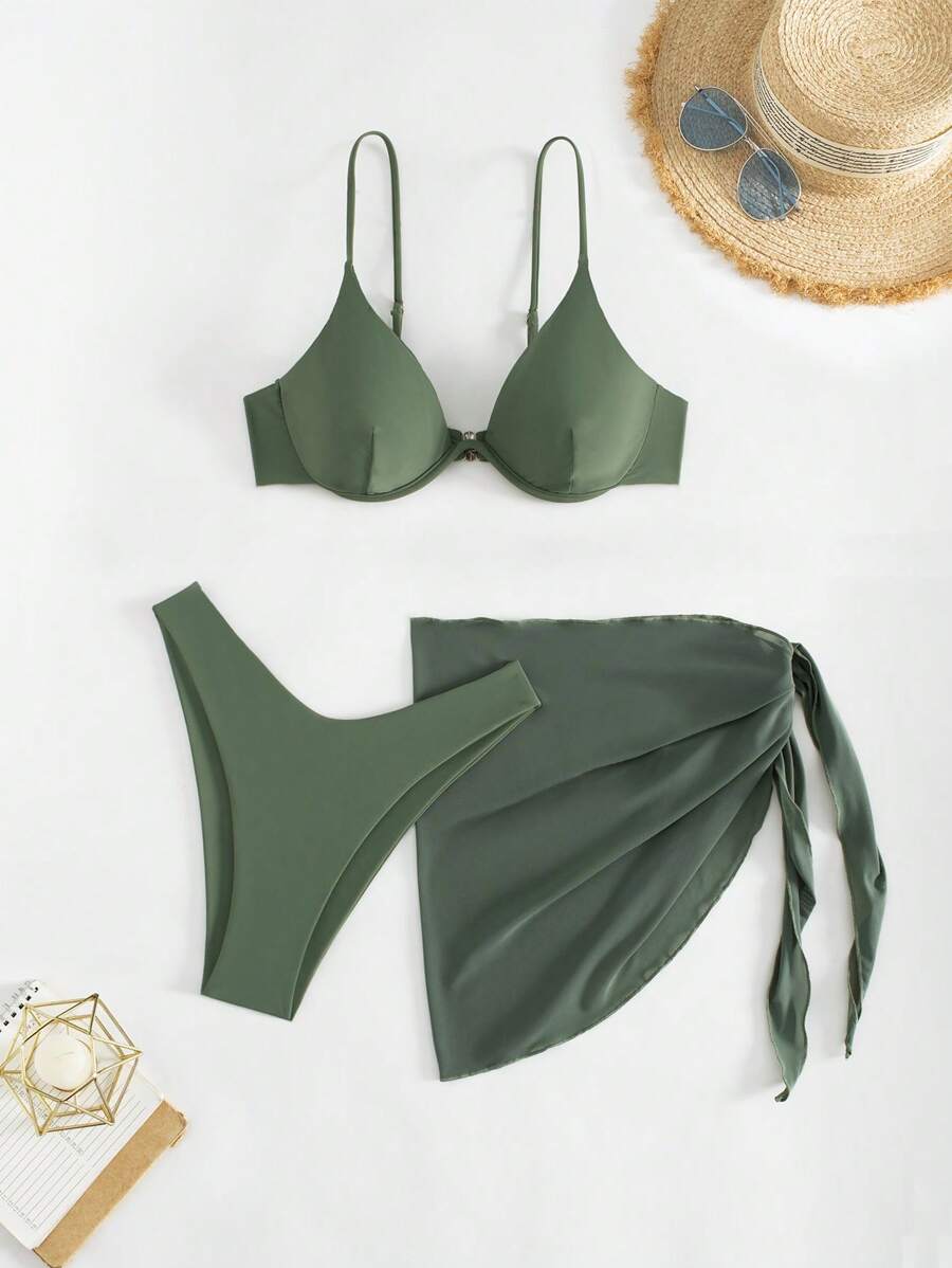 Conjunto de bikini de verano para mujer, 3 piezas (parte superior + bottom + sujetador), con soporte de acero
