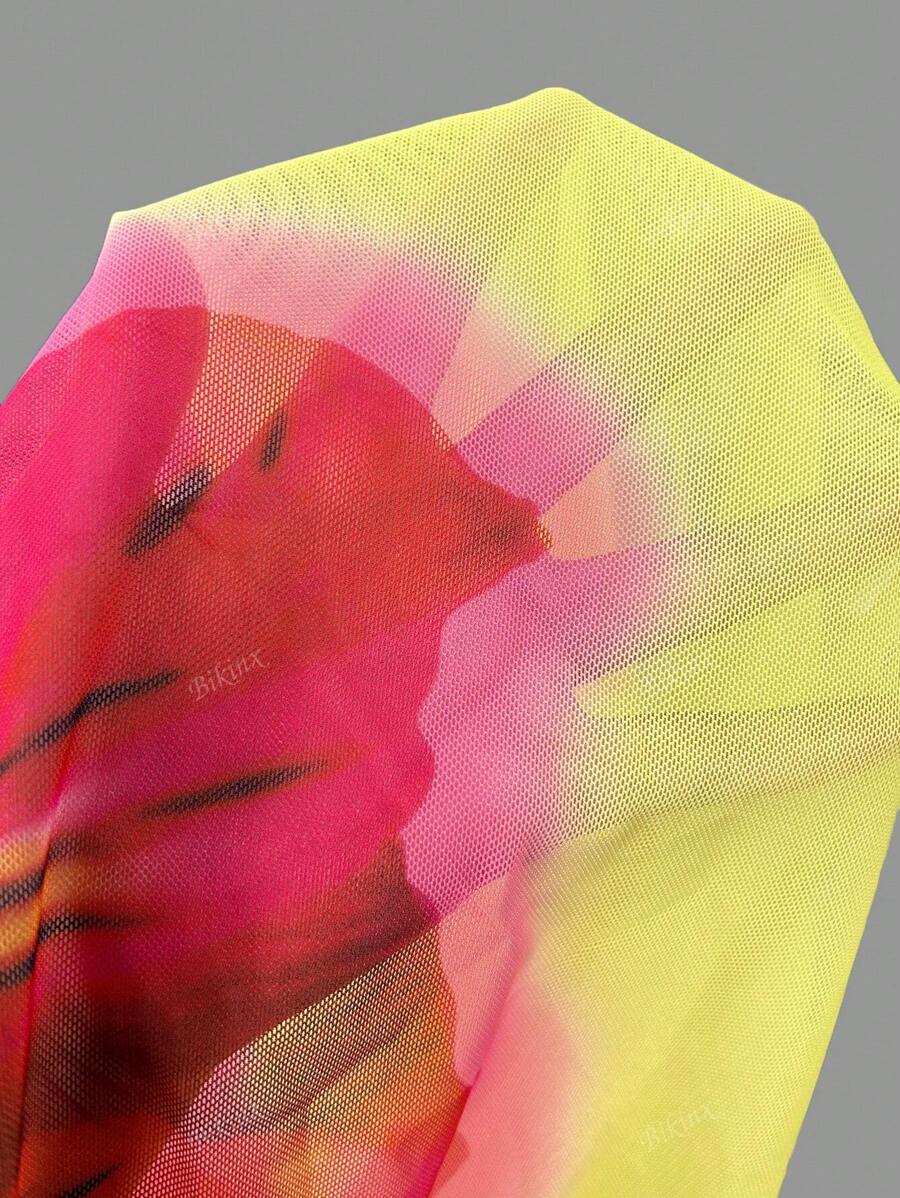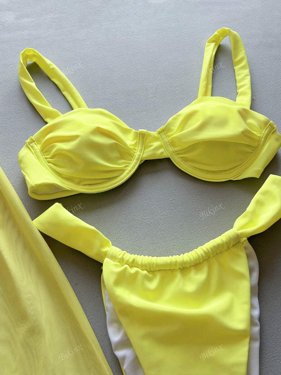 Bikinx conjunto de 3 piezas traje de bano para mujer y nina en color amarillo mantequilla con diseno de flores de hibisco, para dias de verano desde la piscina hasta la playa, biquini elegante basico con aros, decoracion floral, cubre y pareo como ropa de