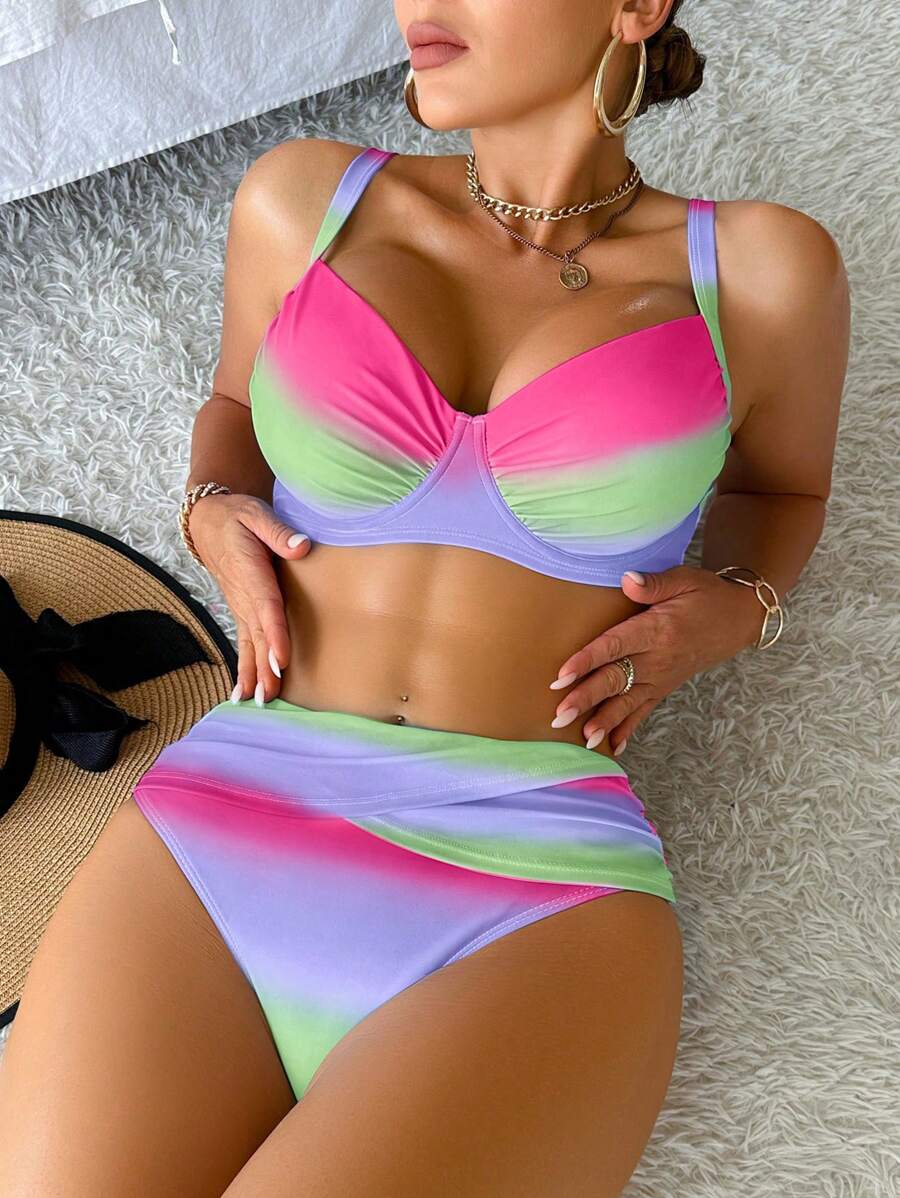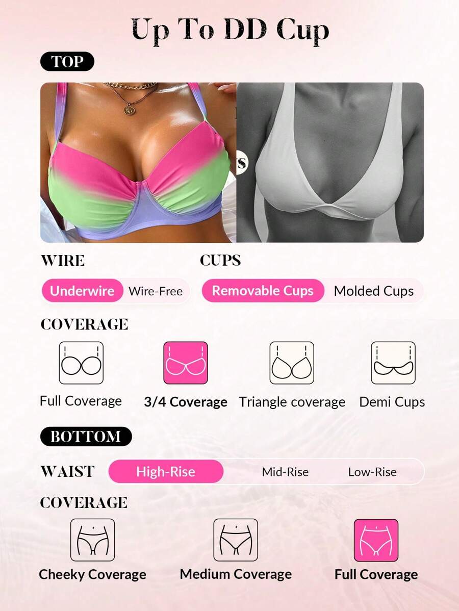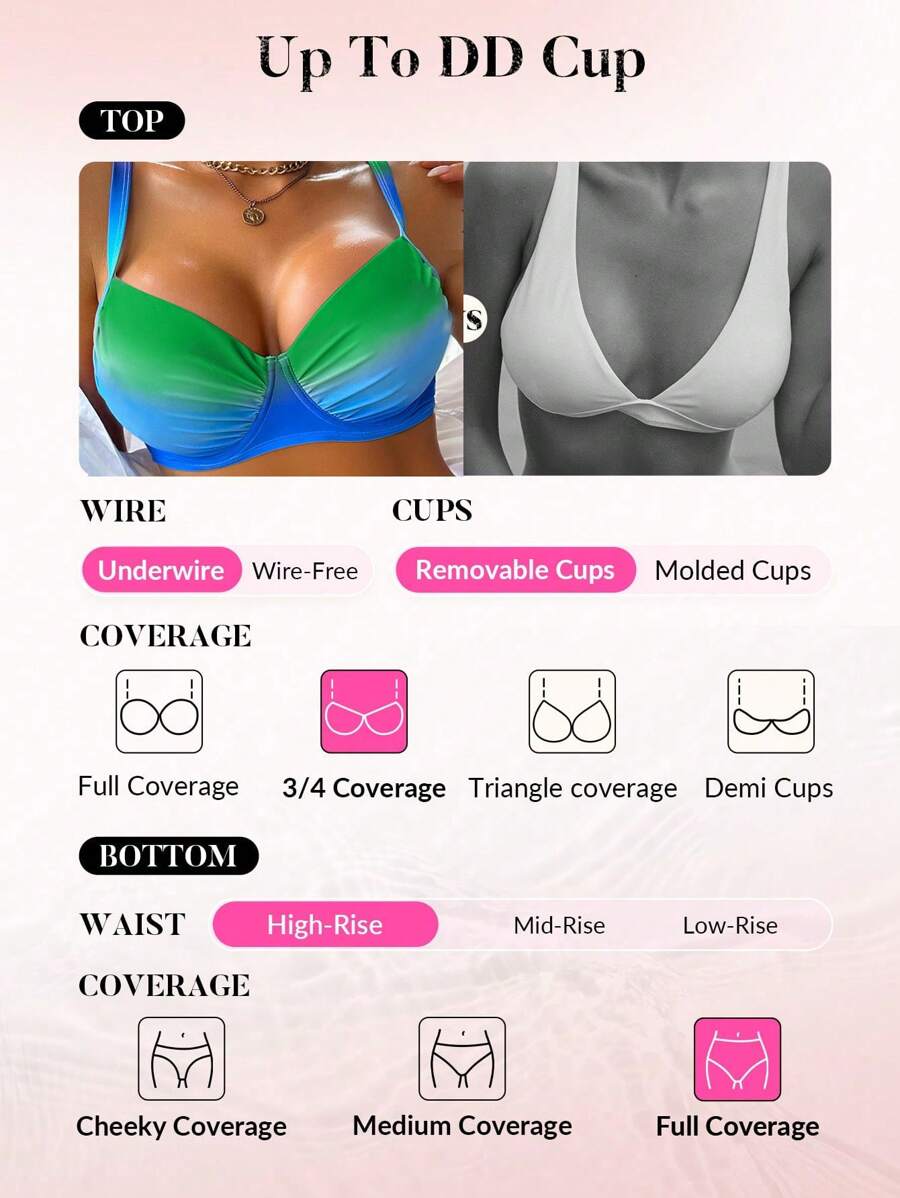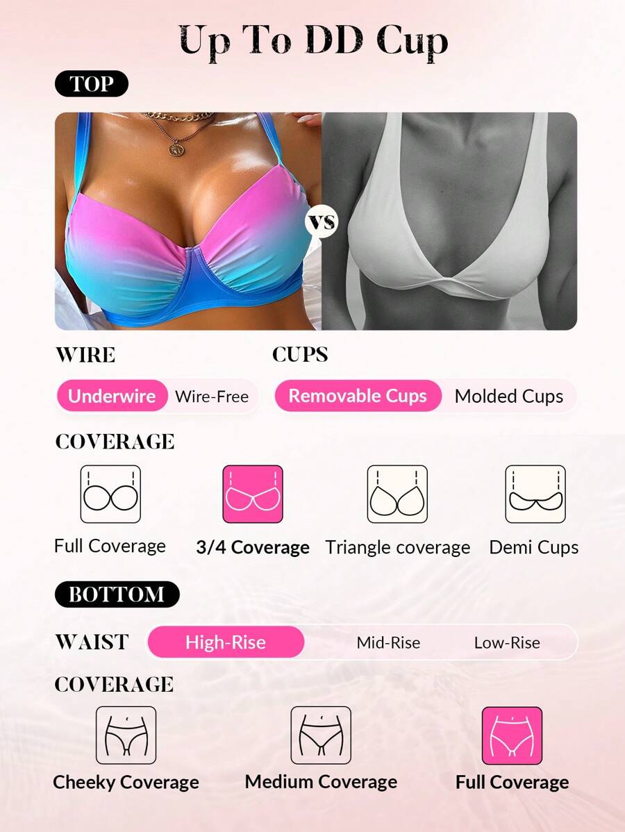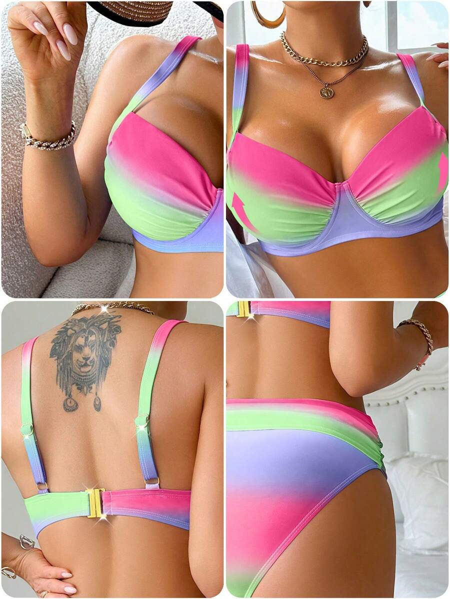 Dd+ conjunto de traje de bano tipo tankini con brasier con aros y plisados en degradado