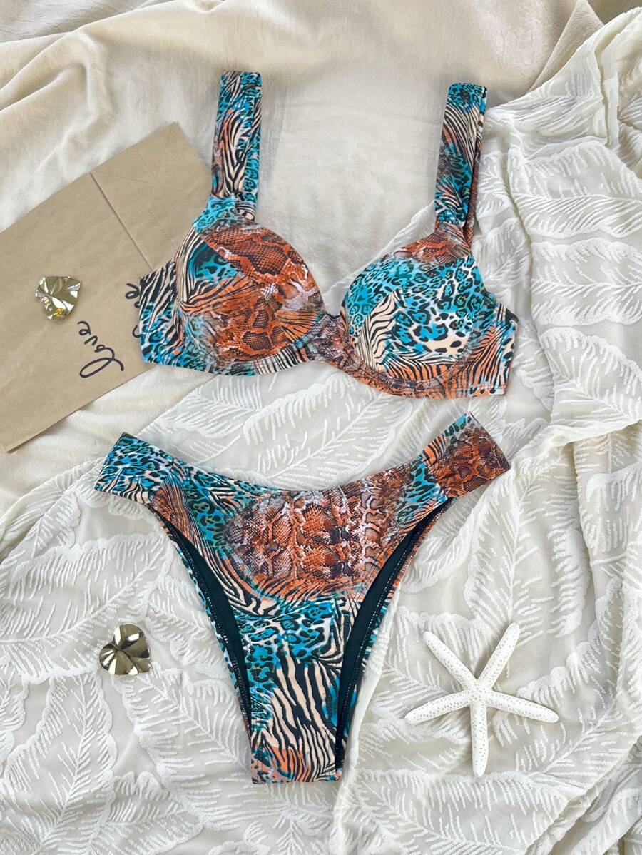 2 piezas conjunto de bikini con estampado de leopardo y push-up para m – Muy Bonita
