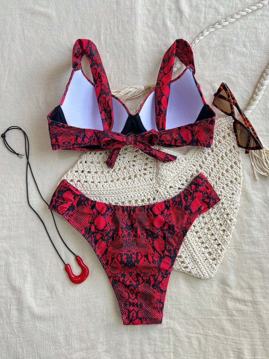 2 piezas conjunto de bikini con estampado de leopardo y push-up para mujer, conjunto de ropa de playa sexy para vacaciones de primavera
