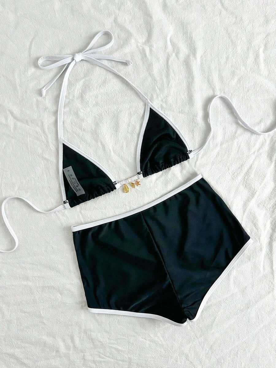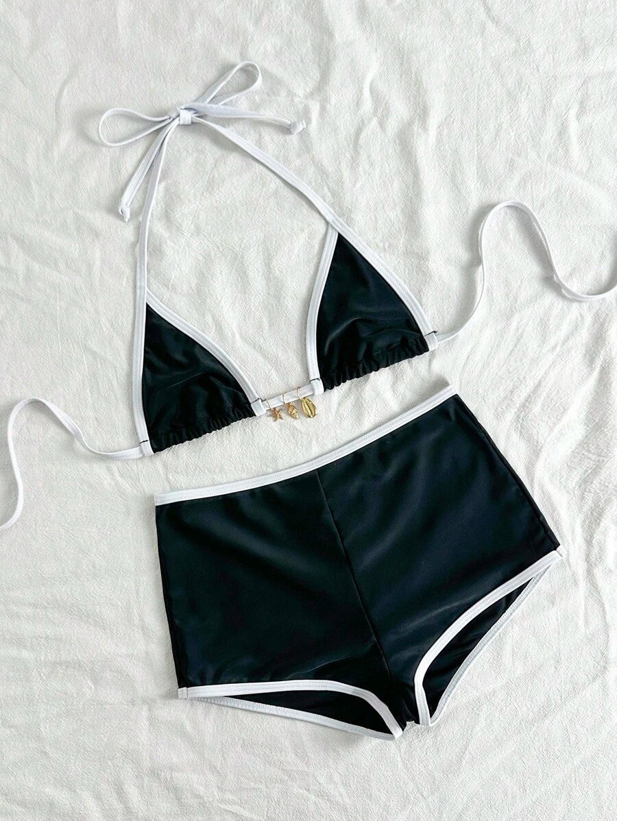 Detalles: Espalda al aire, Nudo, Ribete en contraste