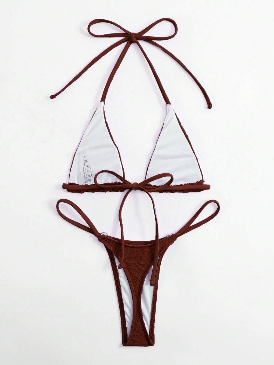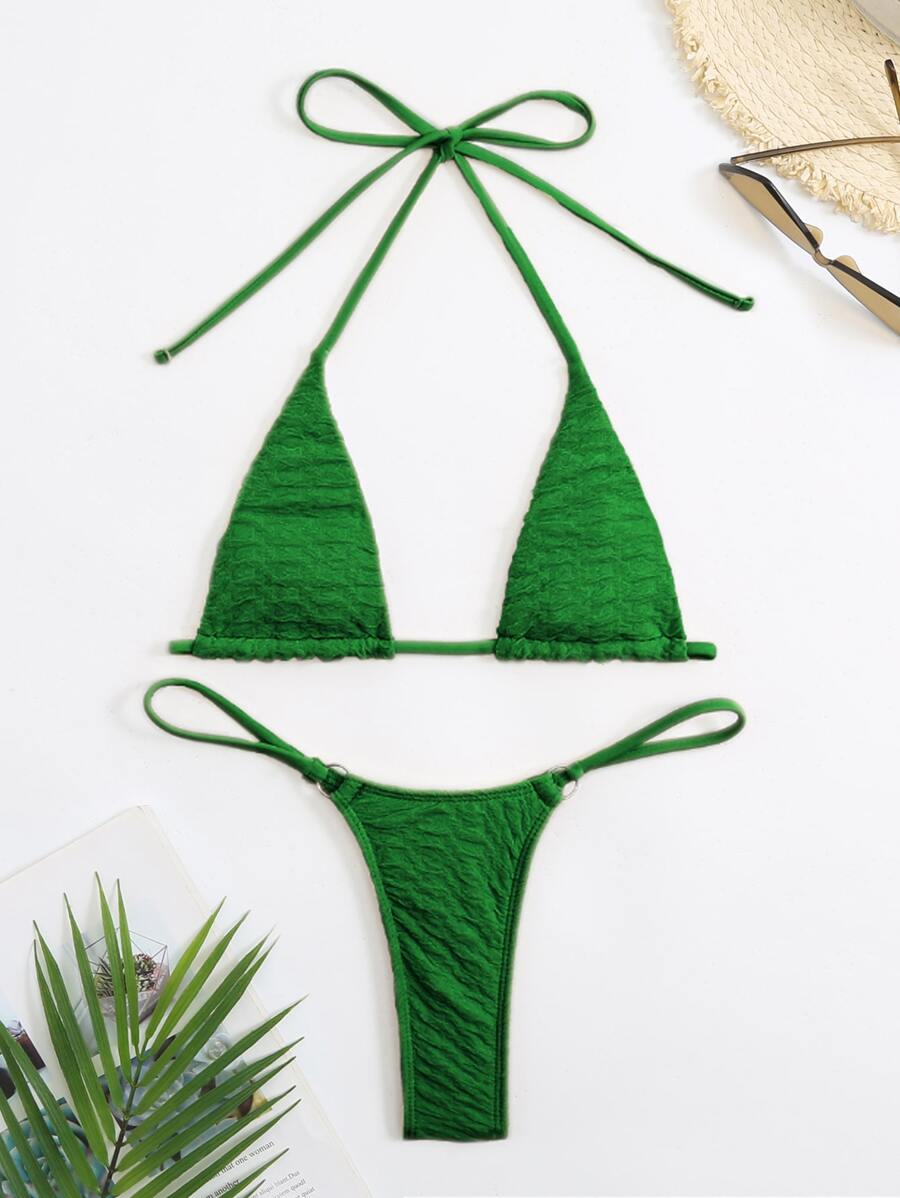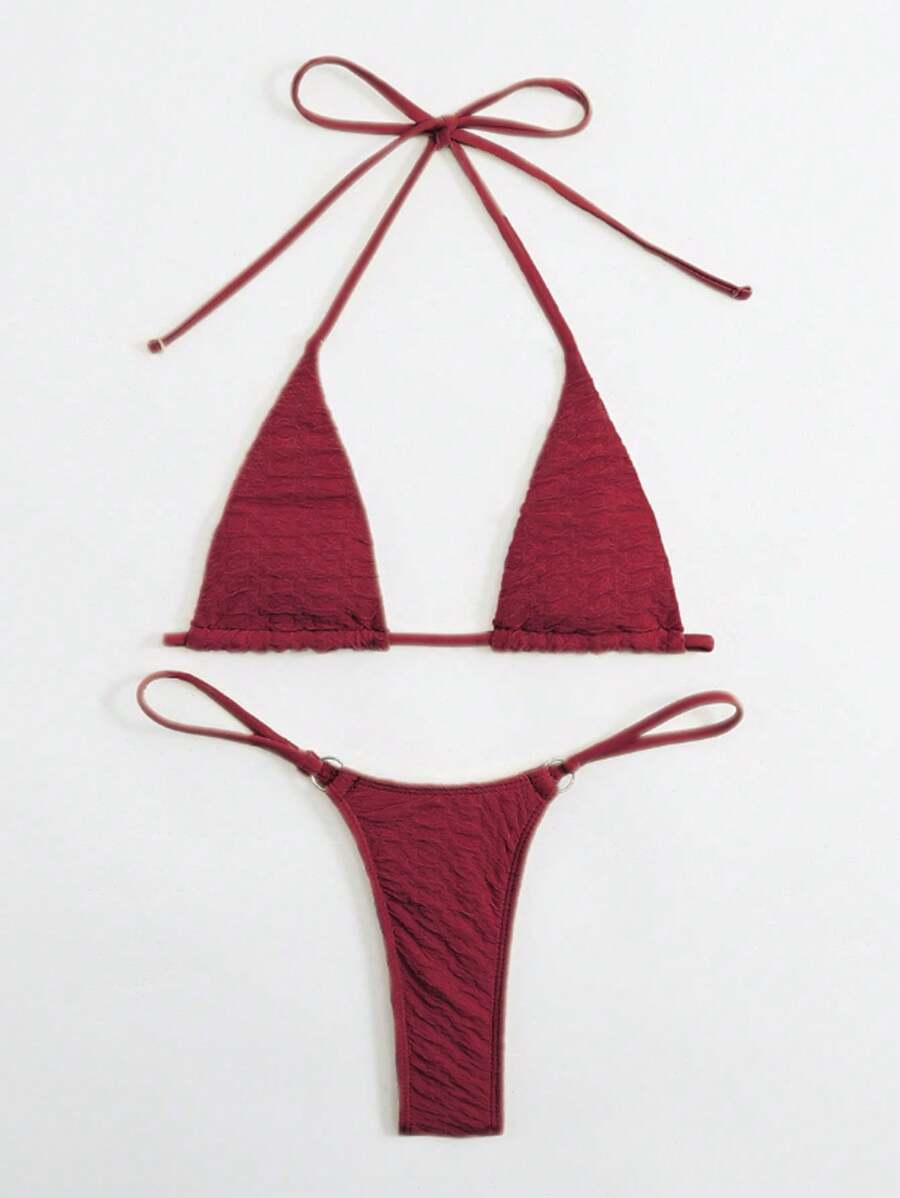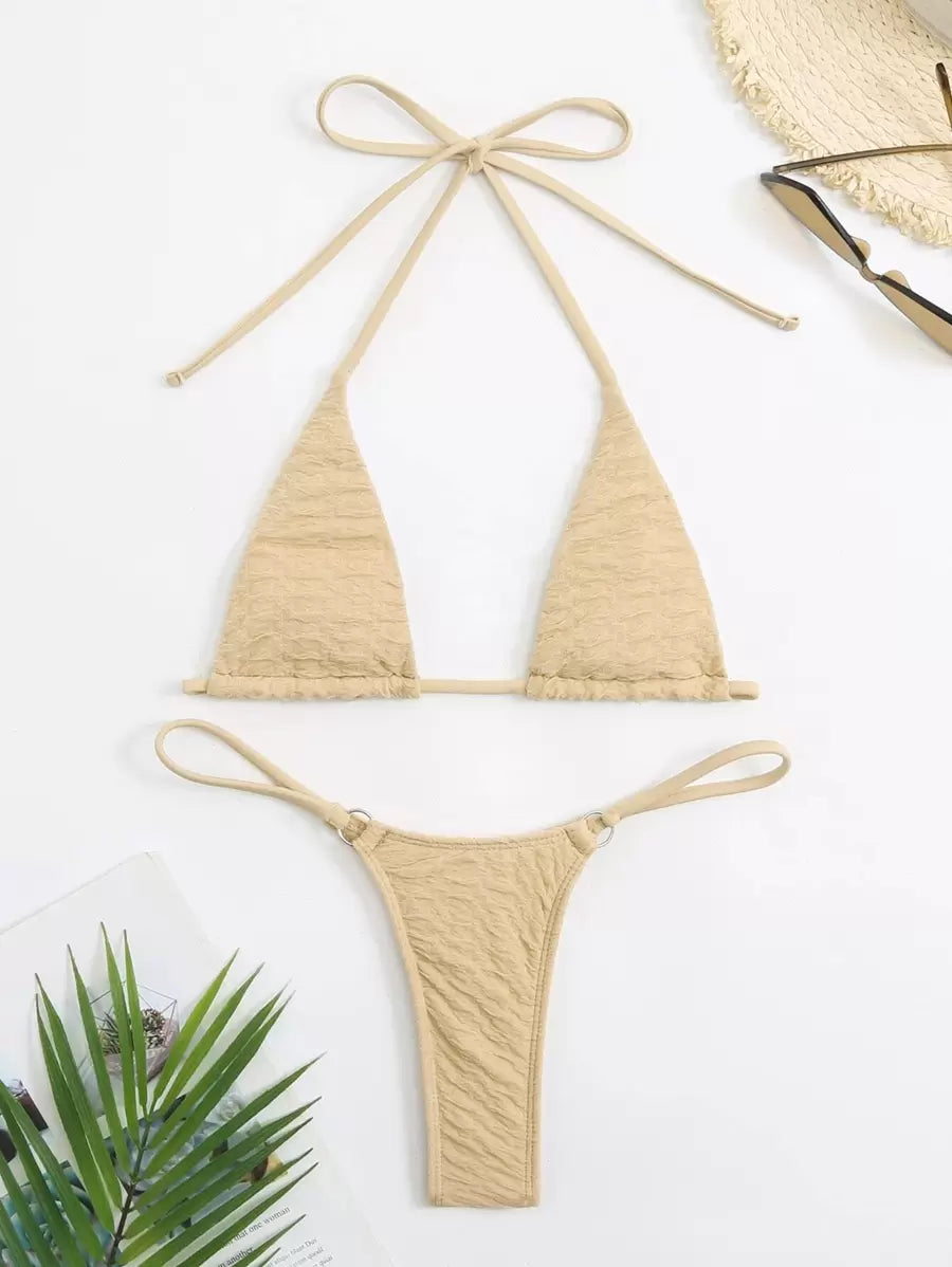 Conjunto de bikini de verano estilo halter con micro triangulo y tanga – Muy Bonita