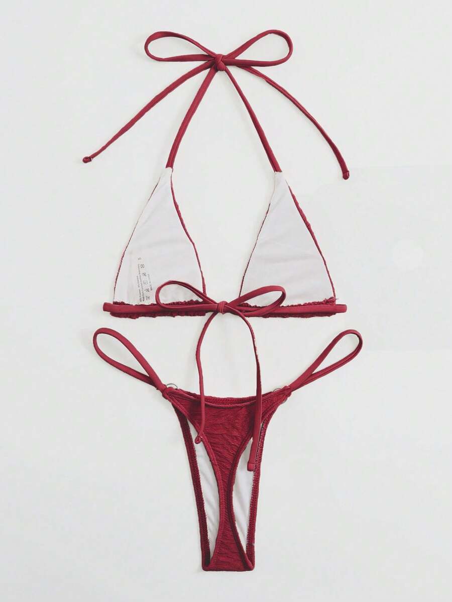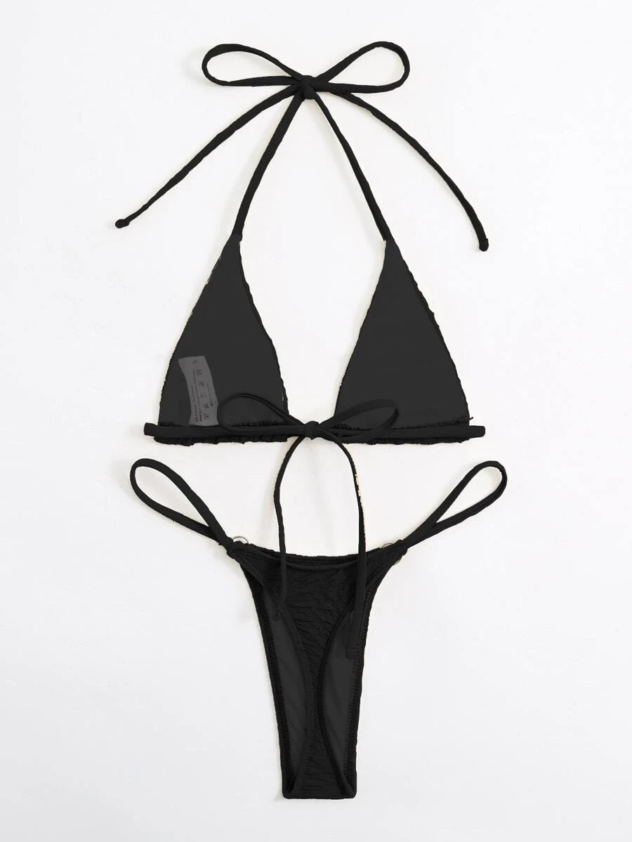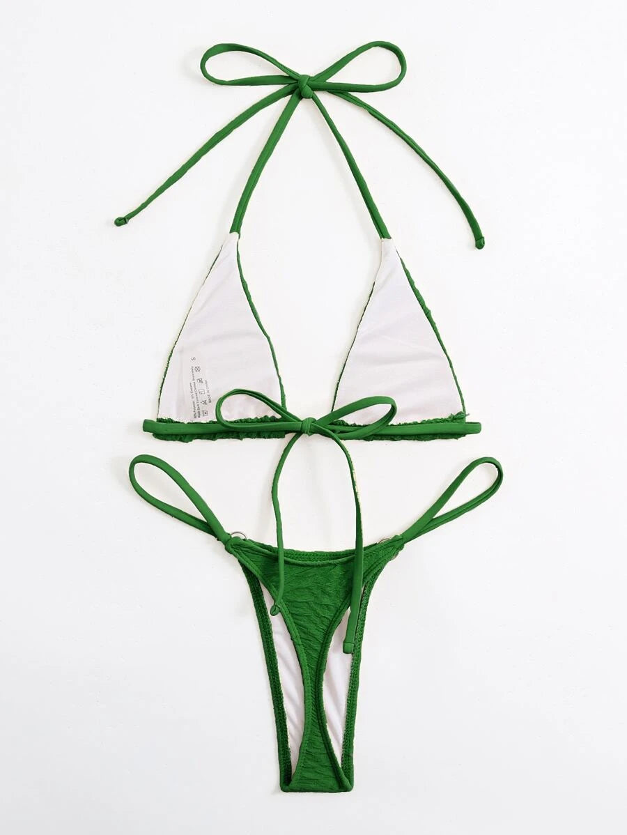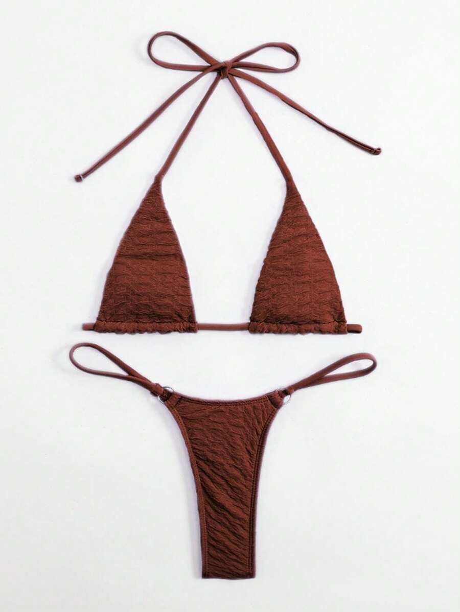 Conjunto de bikini de verano estilo halter con micro triangulo y tanga – Muy Bonita