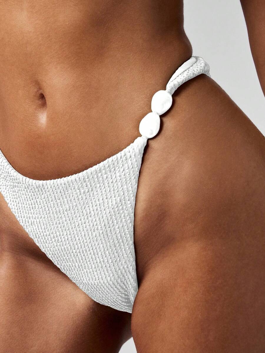 Conjunto de bikini triangular con textura acanalada, estilo brasileno de alta cobertura, vestido de bano de detalles con cuentas y piedras para usar en la playa, piscina y fiestas de resort en verano