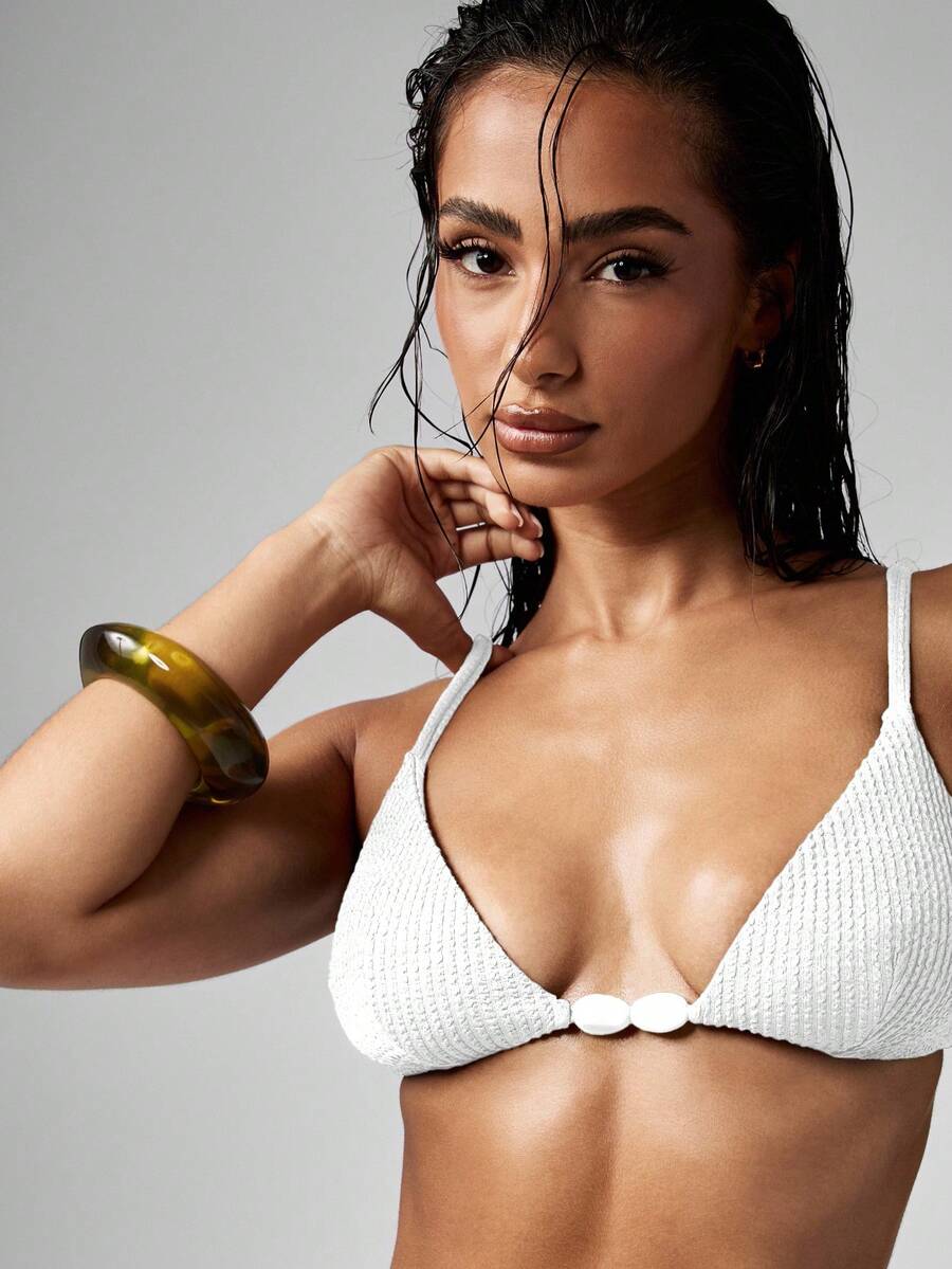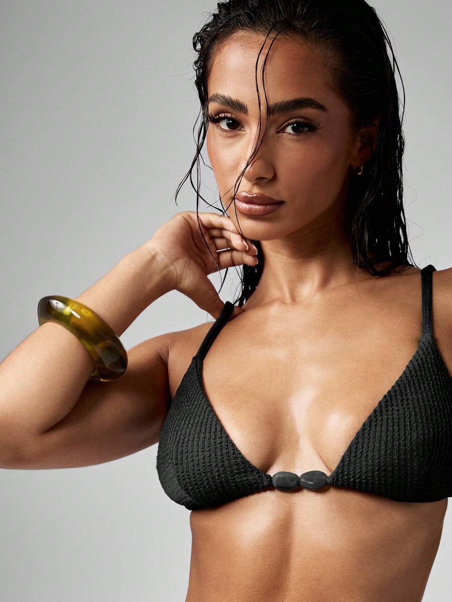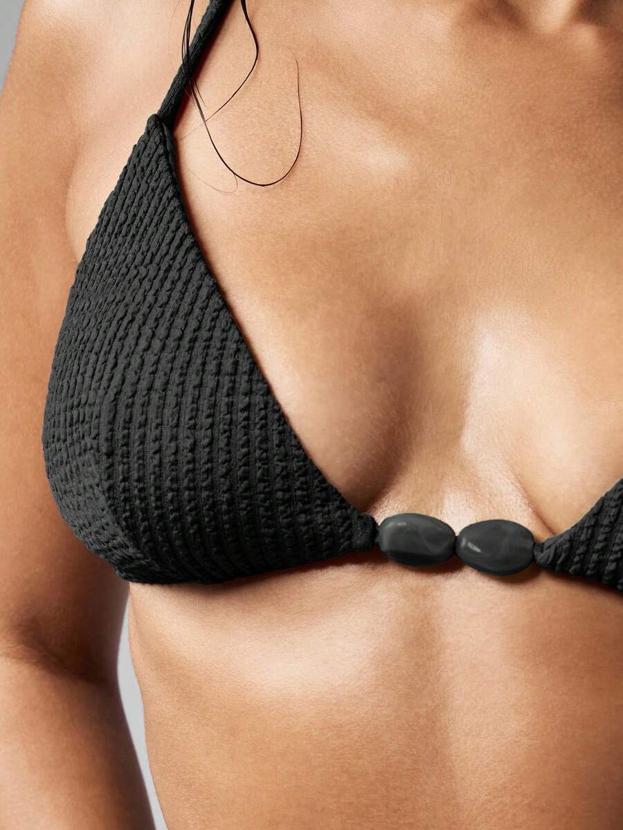 Conjunto de bikini triangular con textura acanalada, estilo brasileno – Muy Bonita