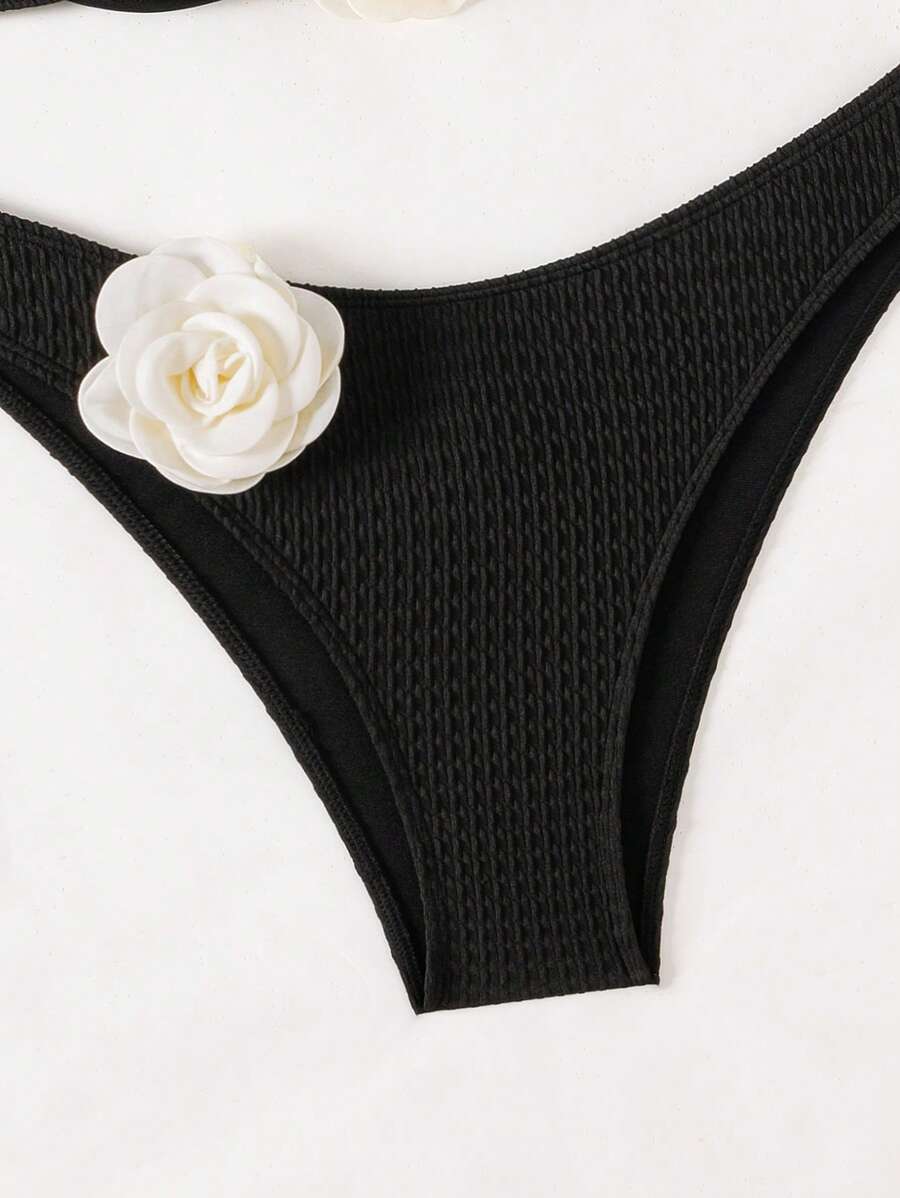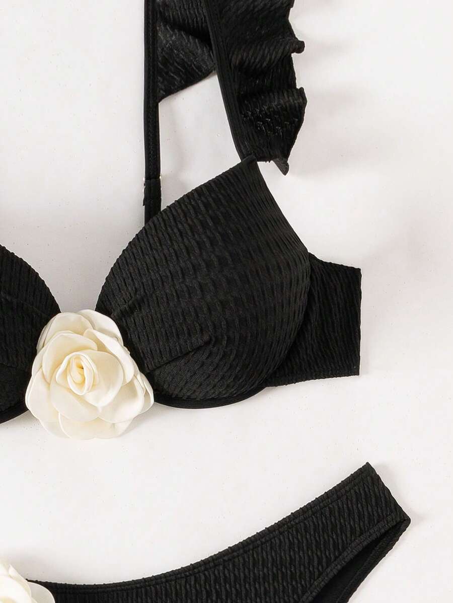 Conjunto de bikini de playa de verano para mujer con decoracion de flores en 3d y sensual escote halter