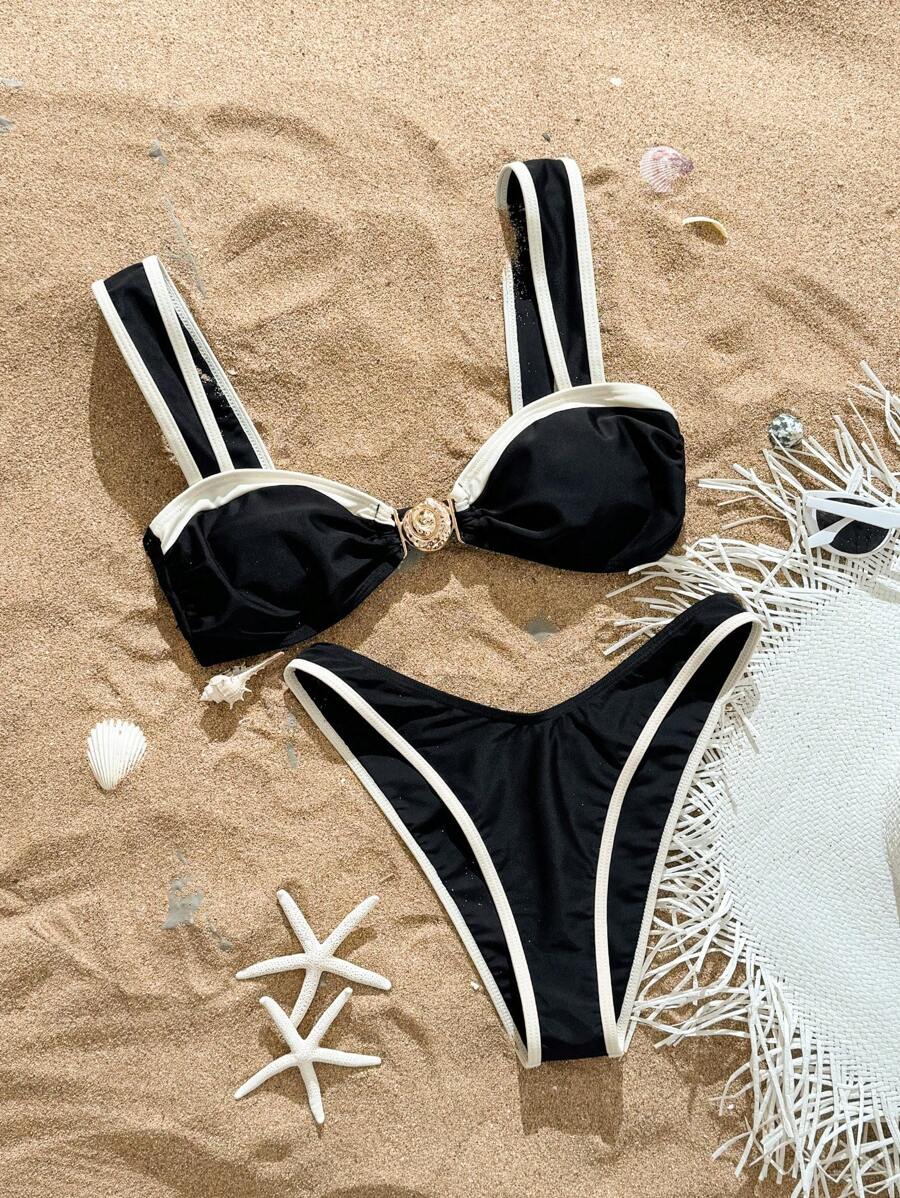 Set de 2 piezas de bikini con corte alto y split de color liso, mejor – Muy Bonita