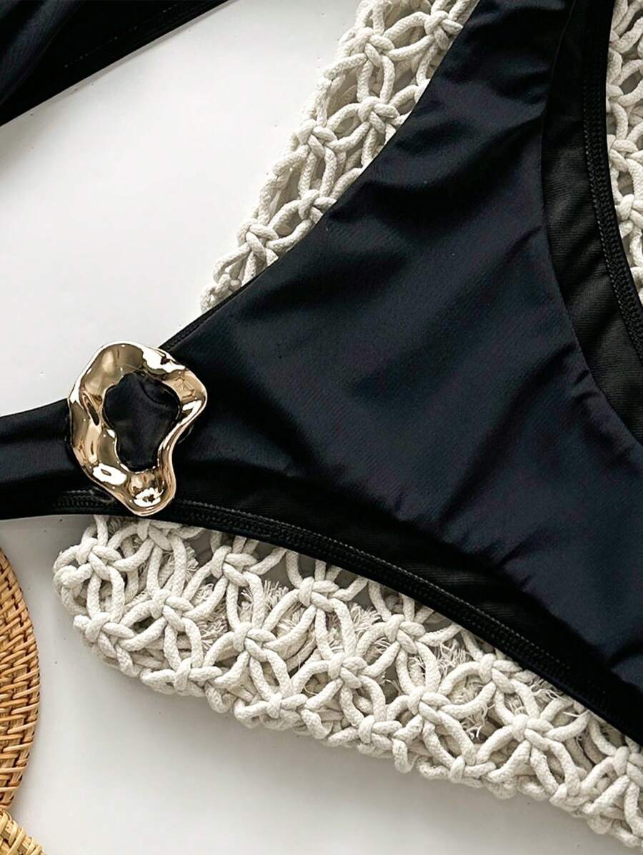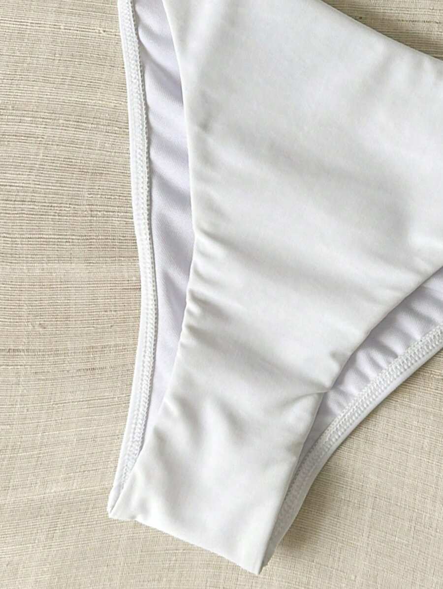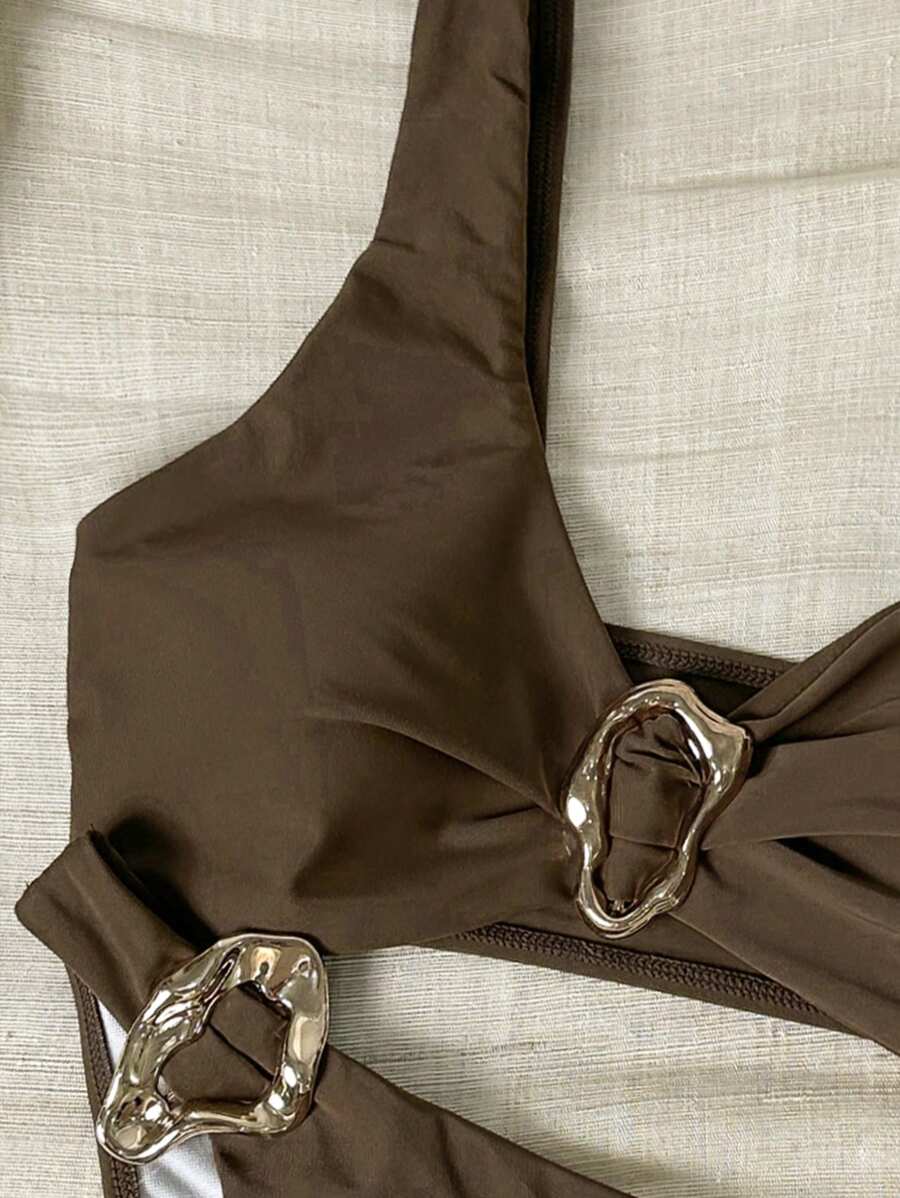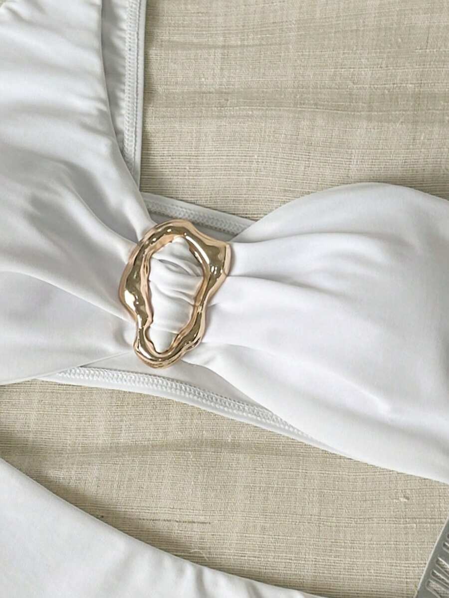 Bikini de 2 piezas de color blanco solido con acentos metalicos, sexy para mujer, ideal para vacaciones de primavera y playa de verano