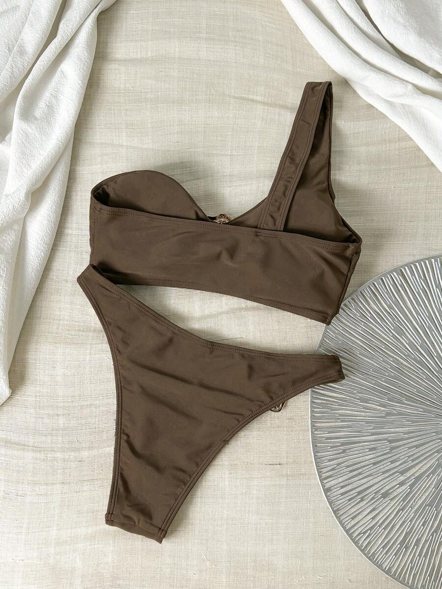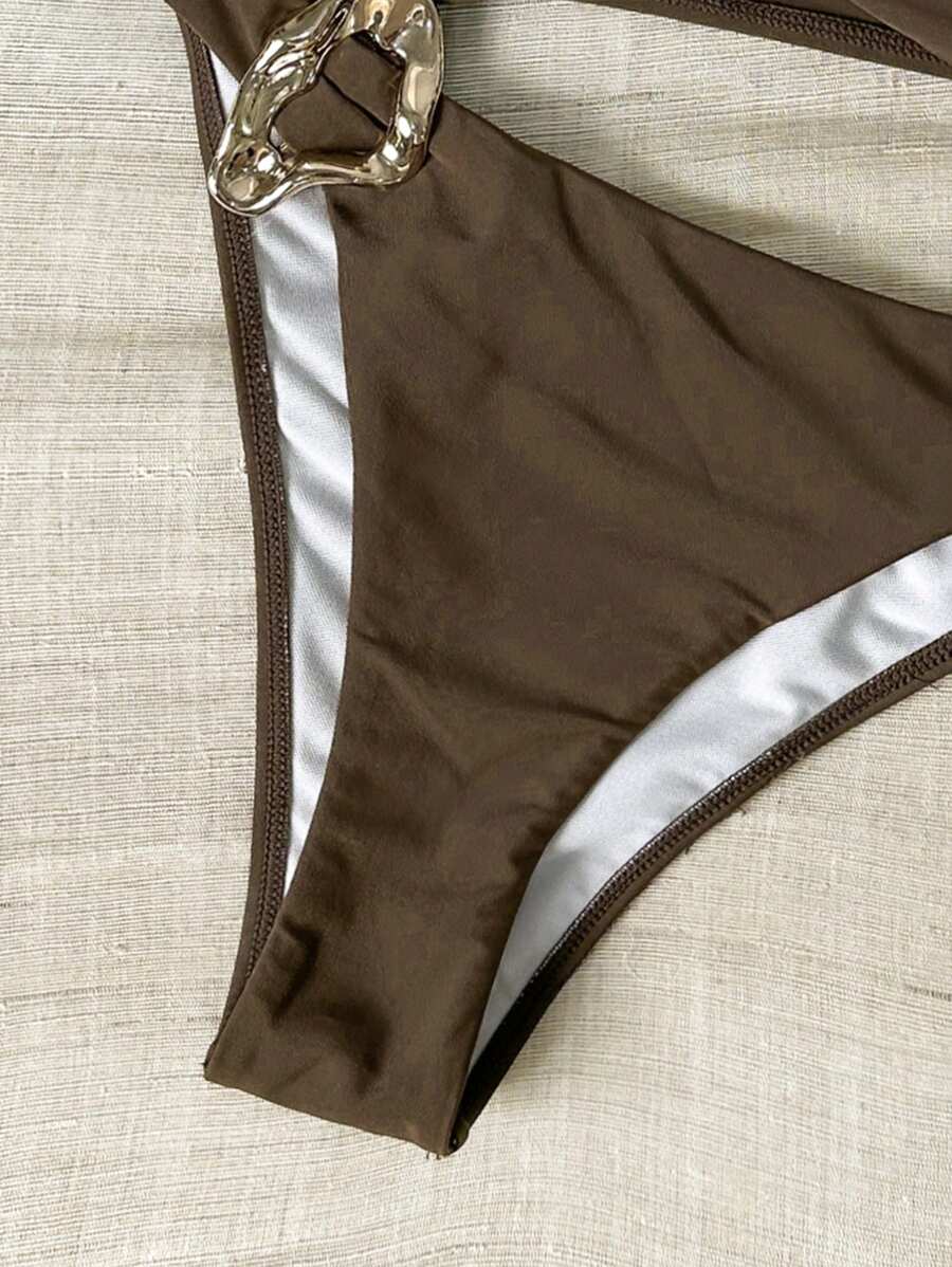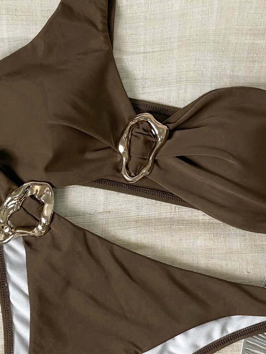 Bikini de 2 piezas de color blanco solido con acentos metalicos, sexy – Muy Bonita