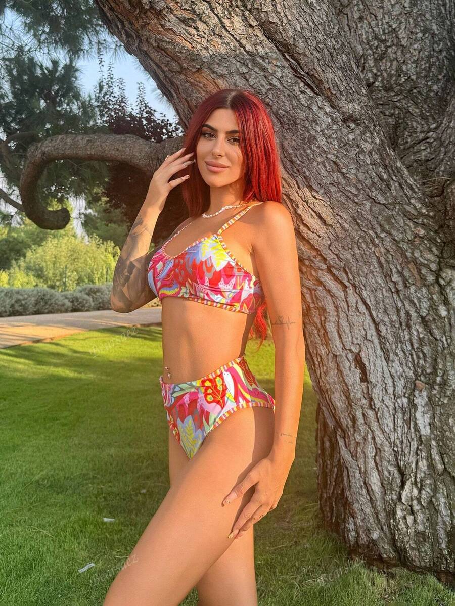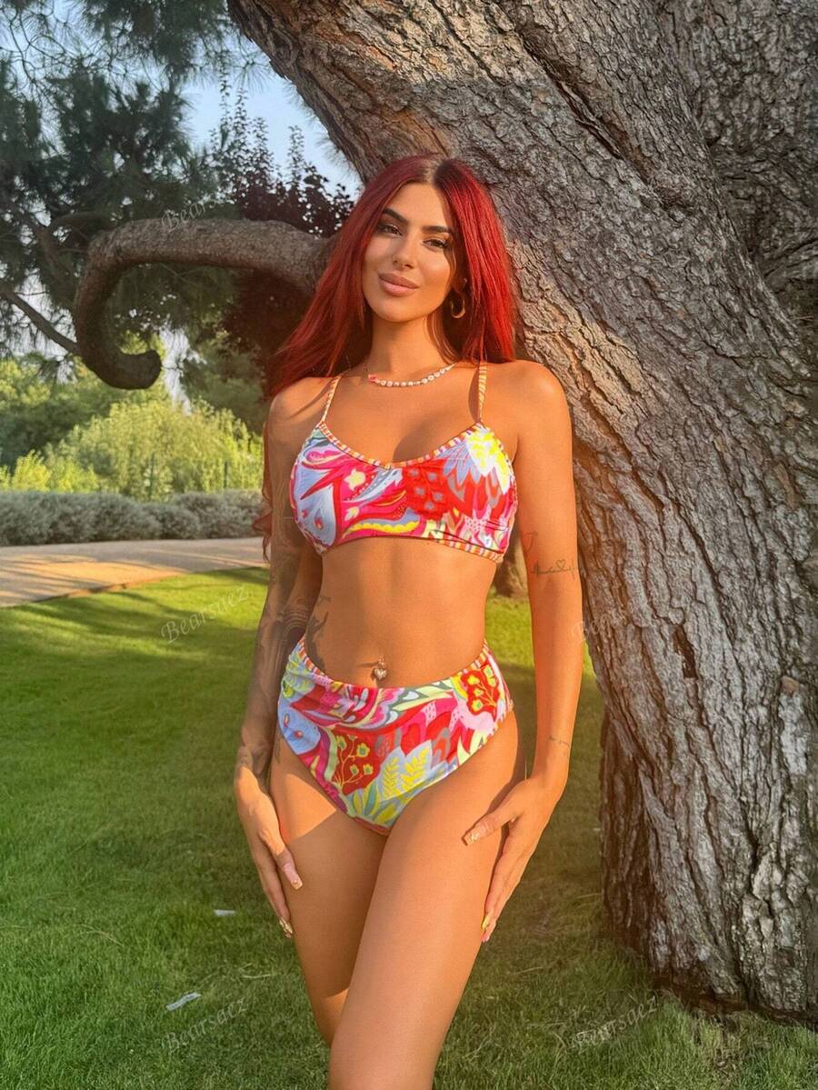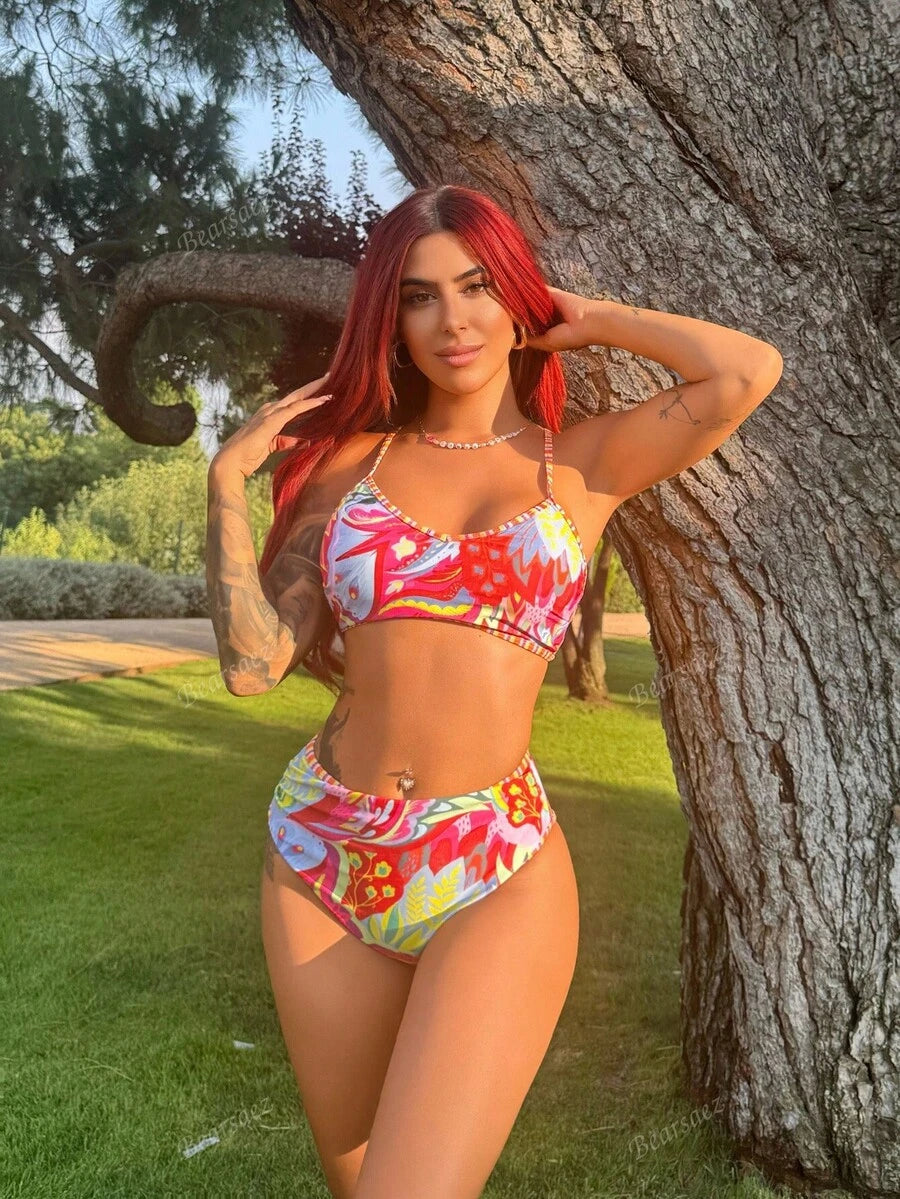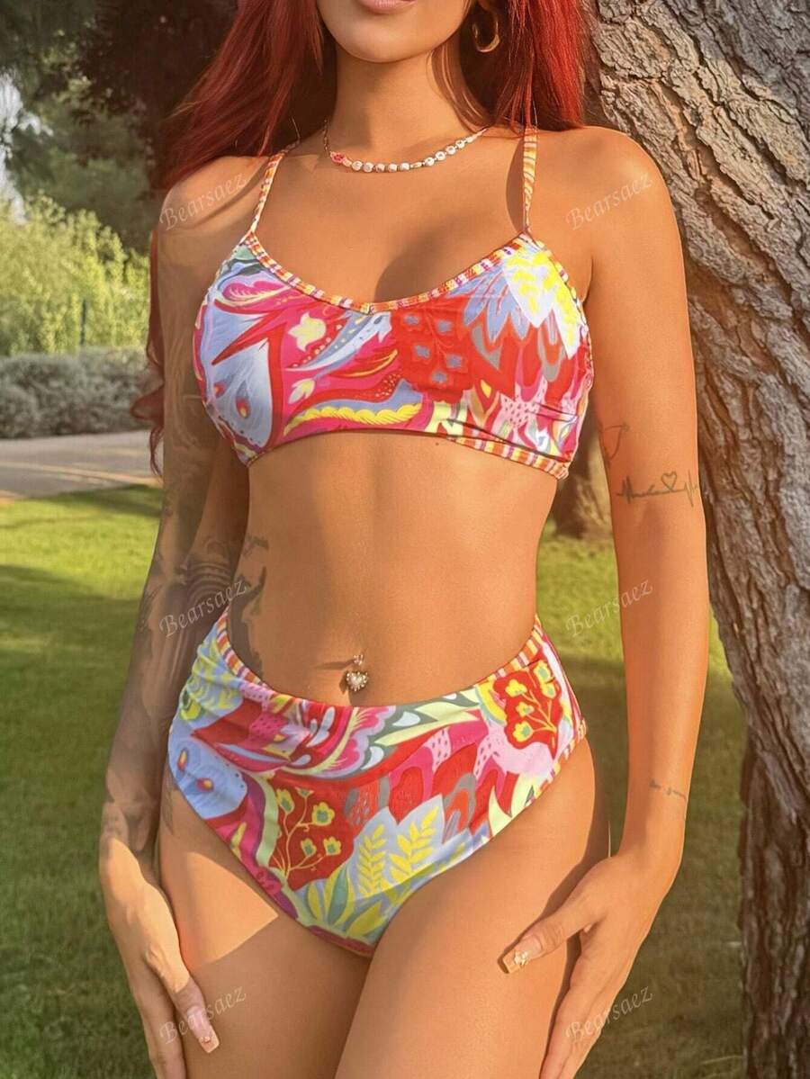 Bearsaez conjunto de 2 prendas de vestir de playa para mujer, parte superior tipo top con tirantes y bottom de bikini de cintura alta de colores aleatorios
