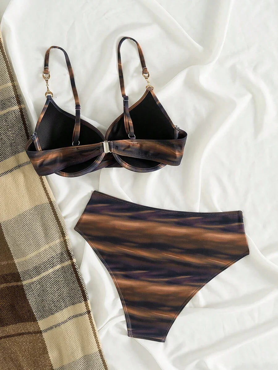 Conjunto de 2 piezas de bikini vintage con top sin tirantes con decoracion de alambre y estampado floral para mujer, ideal para vacaciones de primavera y playas de verano