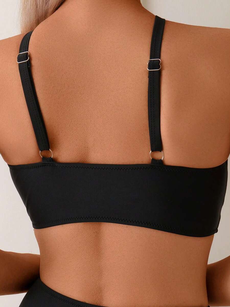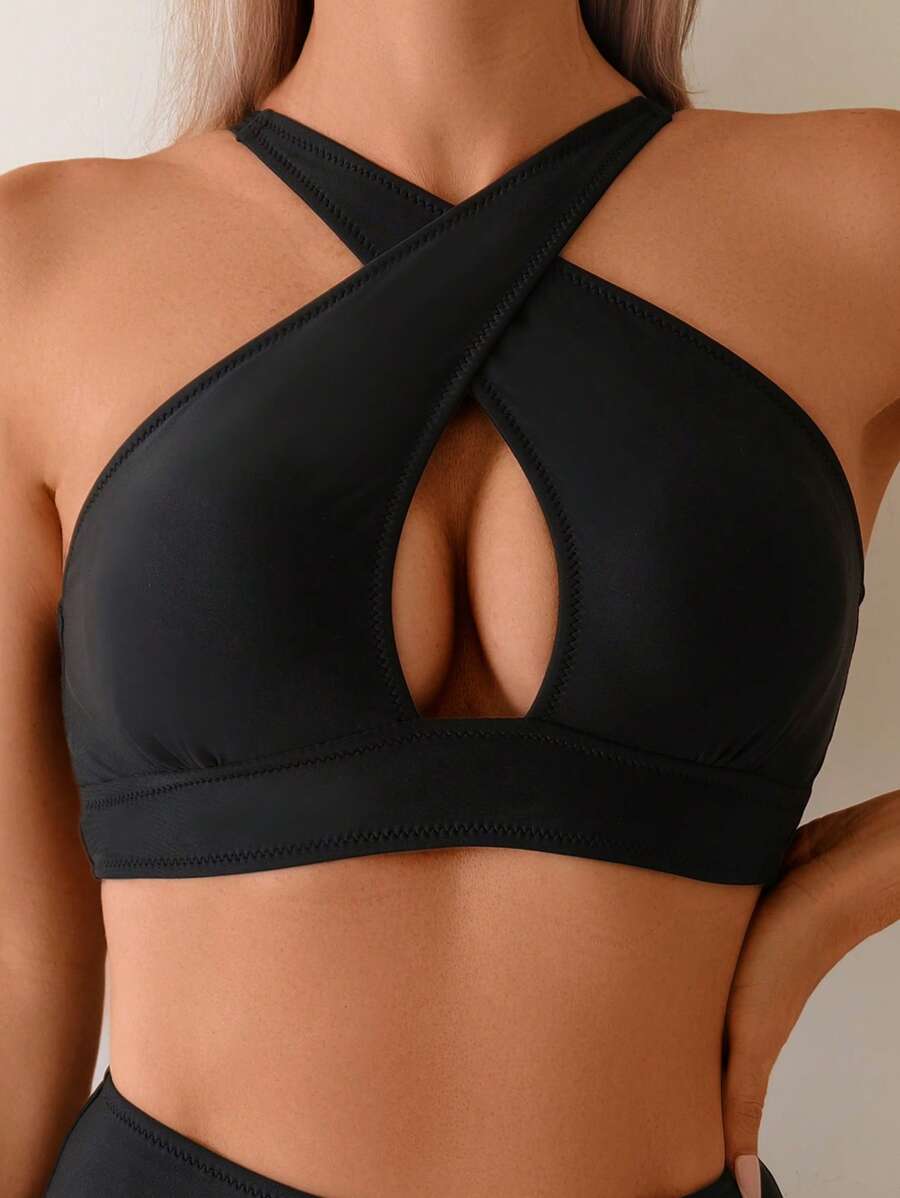 Conjunto de bikini de 2 piezas con top cruzado con recortes en el fren – Muy Bonita