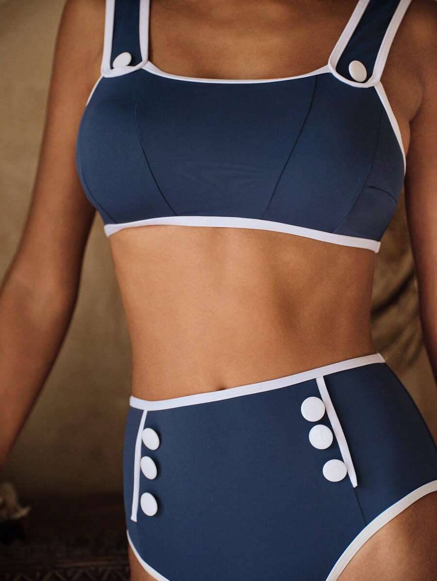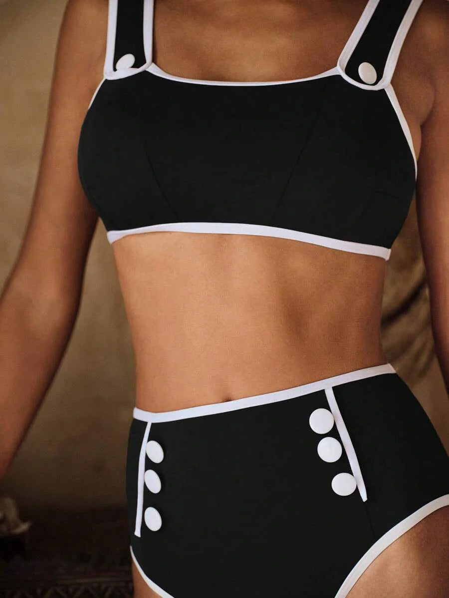 Conjunto de traje de bano de mujer con adorno de contraste para vacaci – Muy Bonita