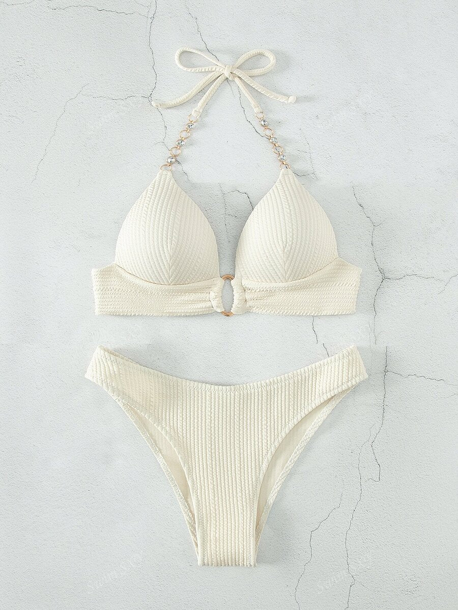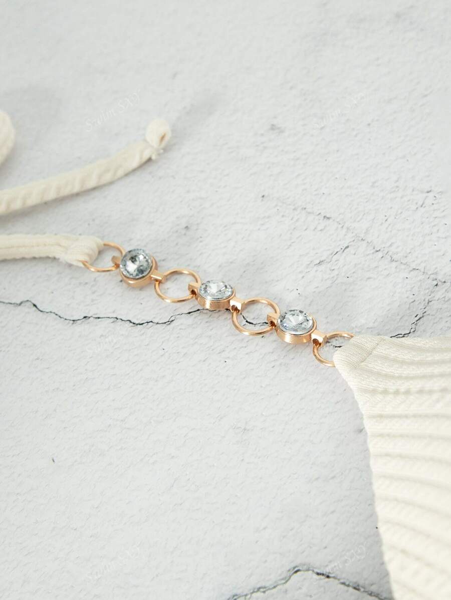 Detalles: Espalda al aire, Cruzado, Diamante de imitacion, Anilla, Cordon de espalda