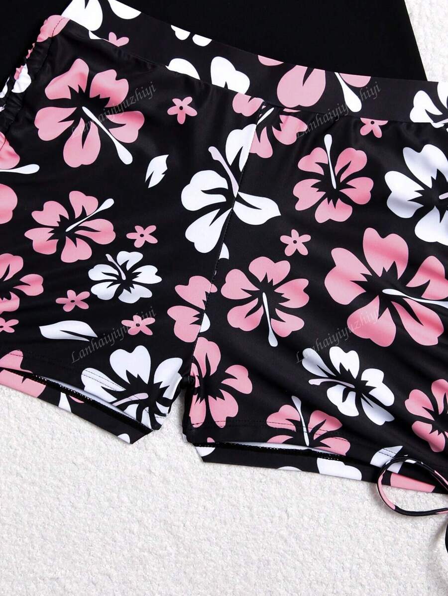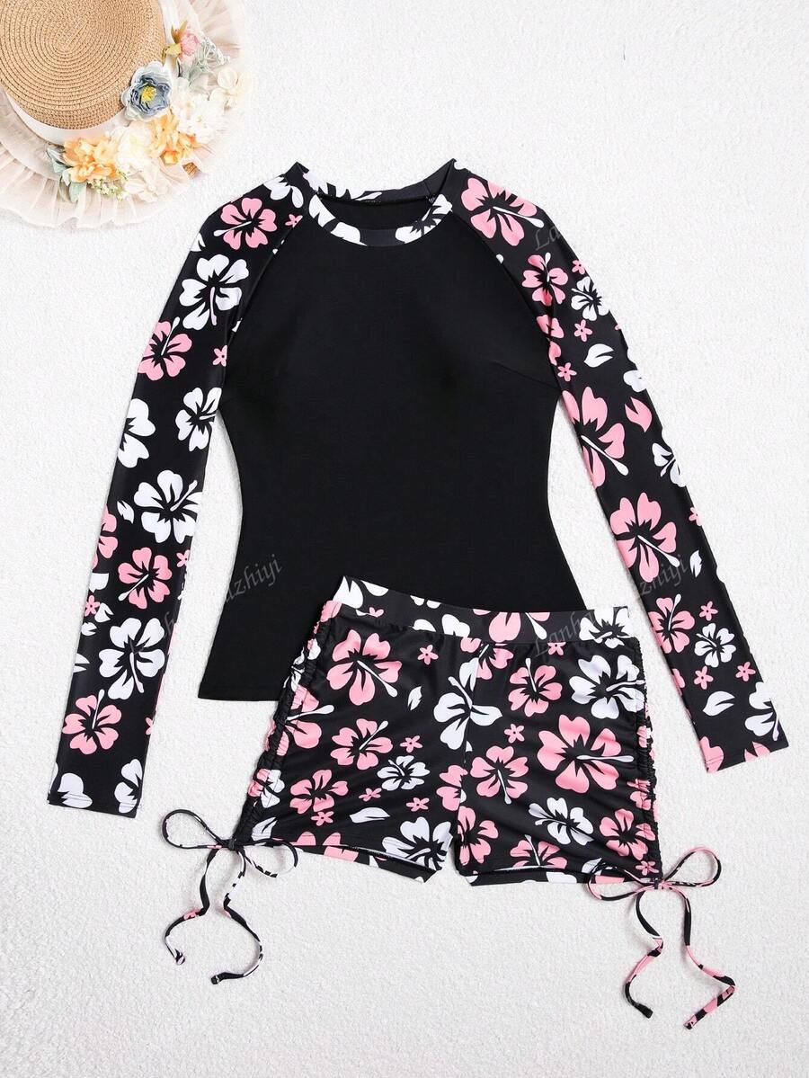 Conjunto de 2 piezas nuevo traje de bano tipo tankini de manga larga con estampado floral y shorts, para vacaciones de verano en la playa