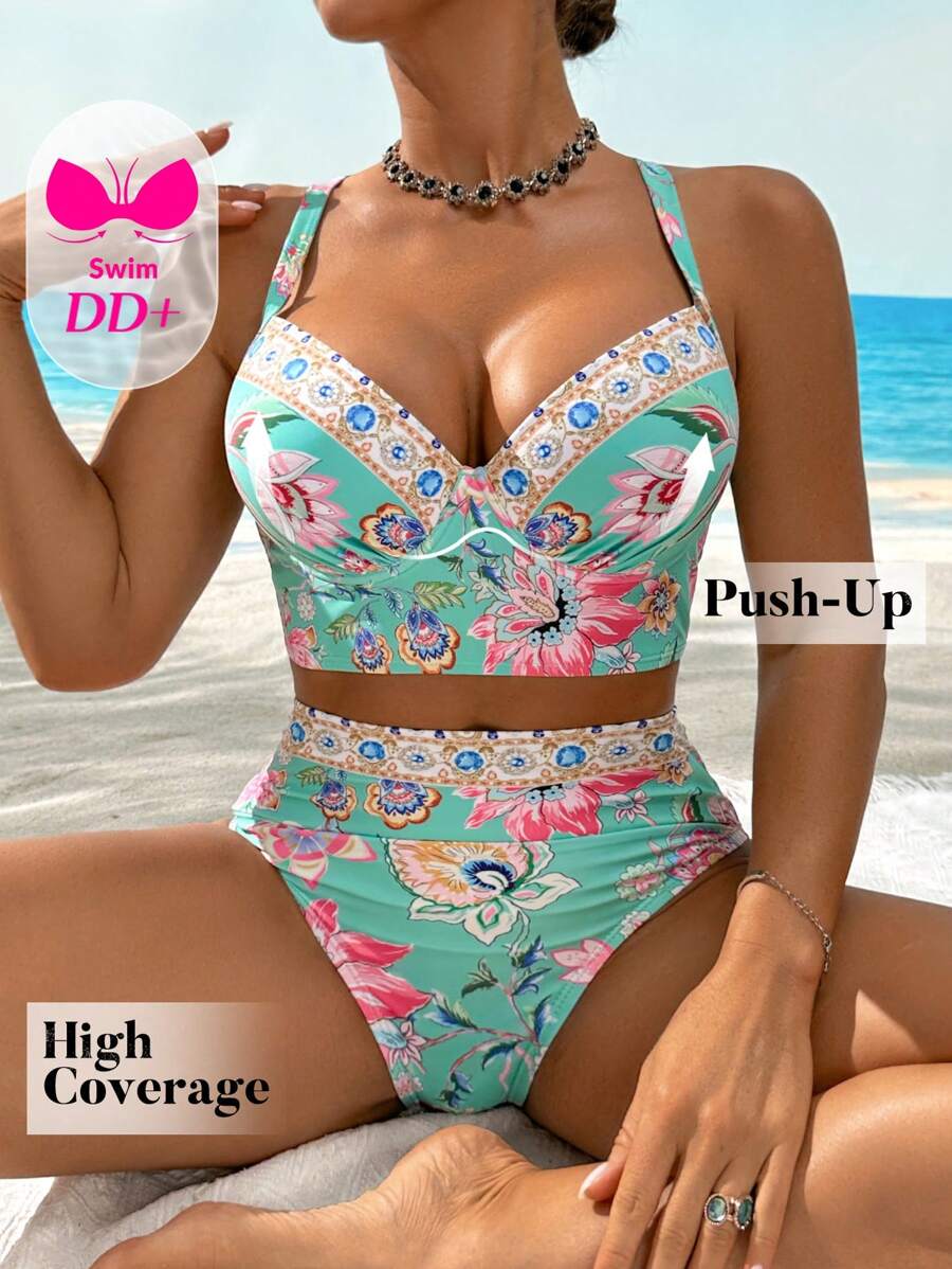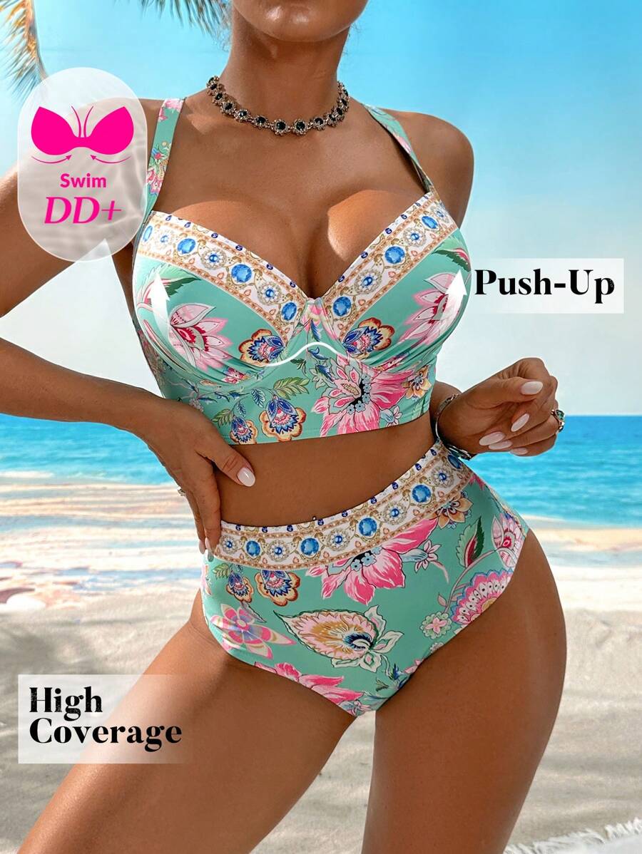 Dd+ conjunto de bikini con estampado floral sexy para mujer, ideal para la playa en verano