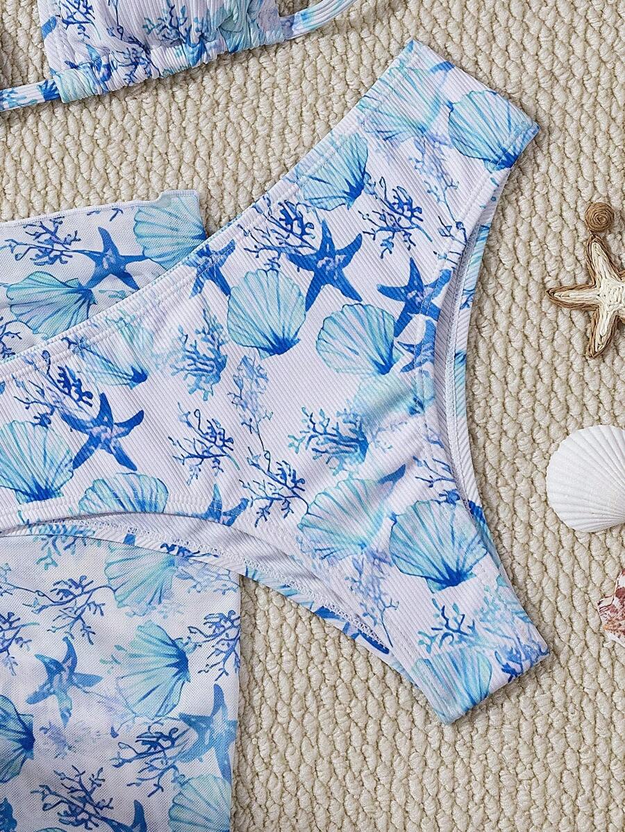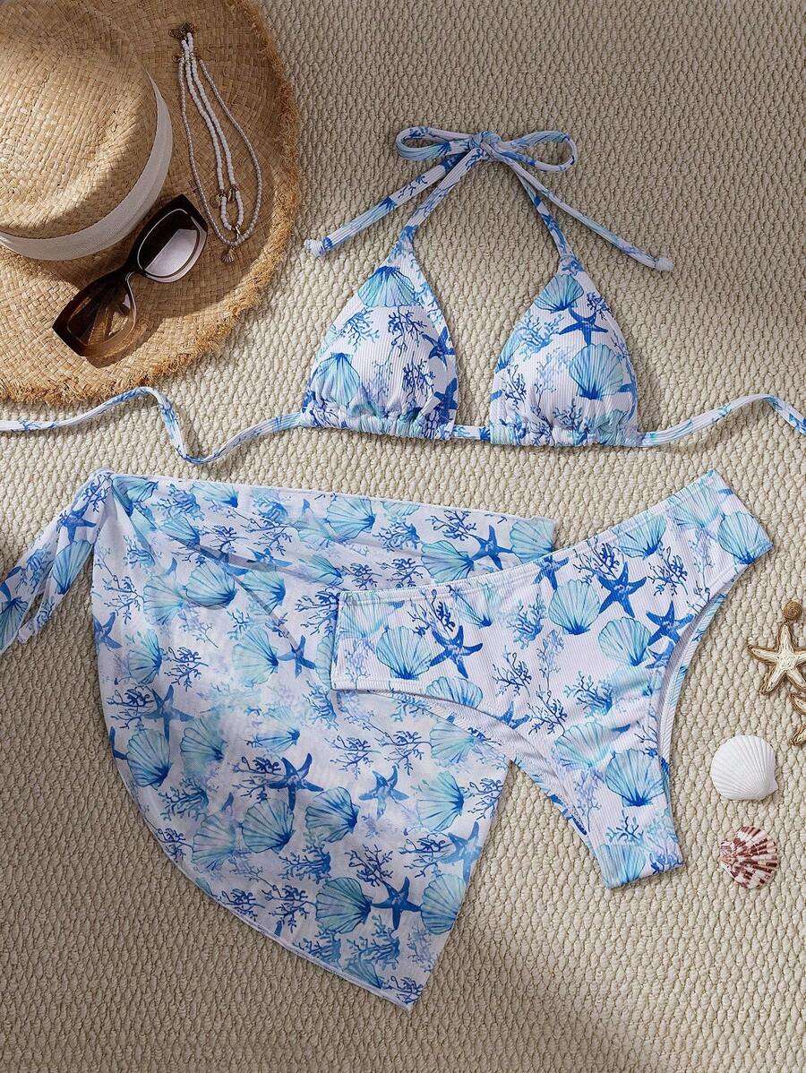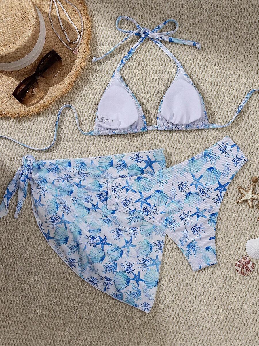 Conjunto de 3 piezas de bikini sexy con diseno de criaturas oceanicas – Muy Bonita