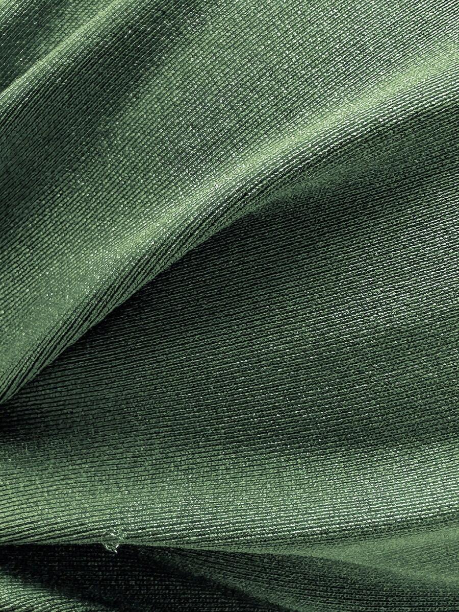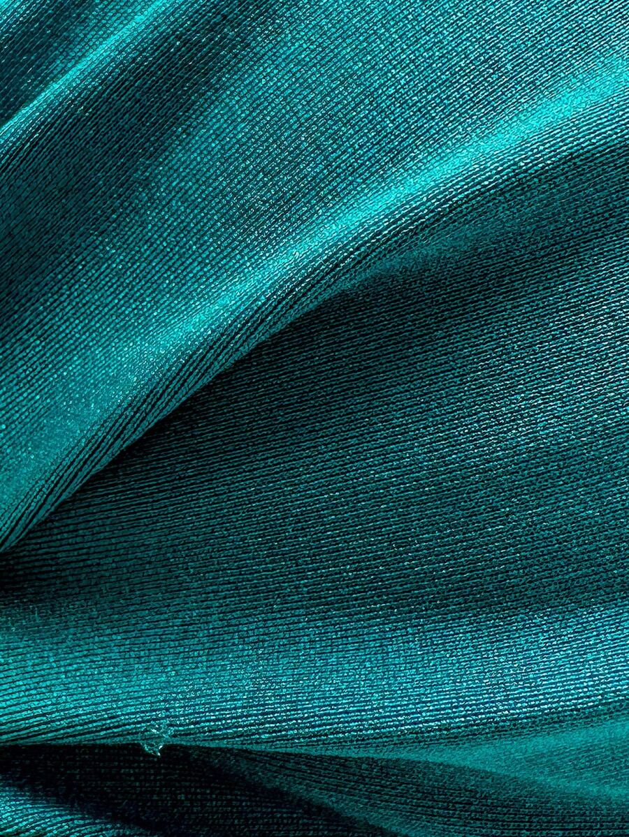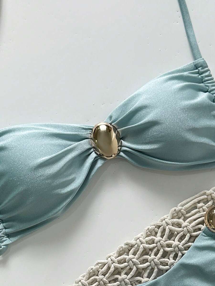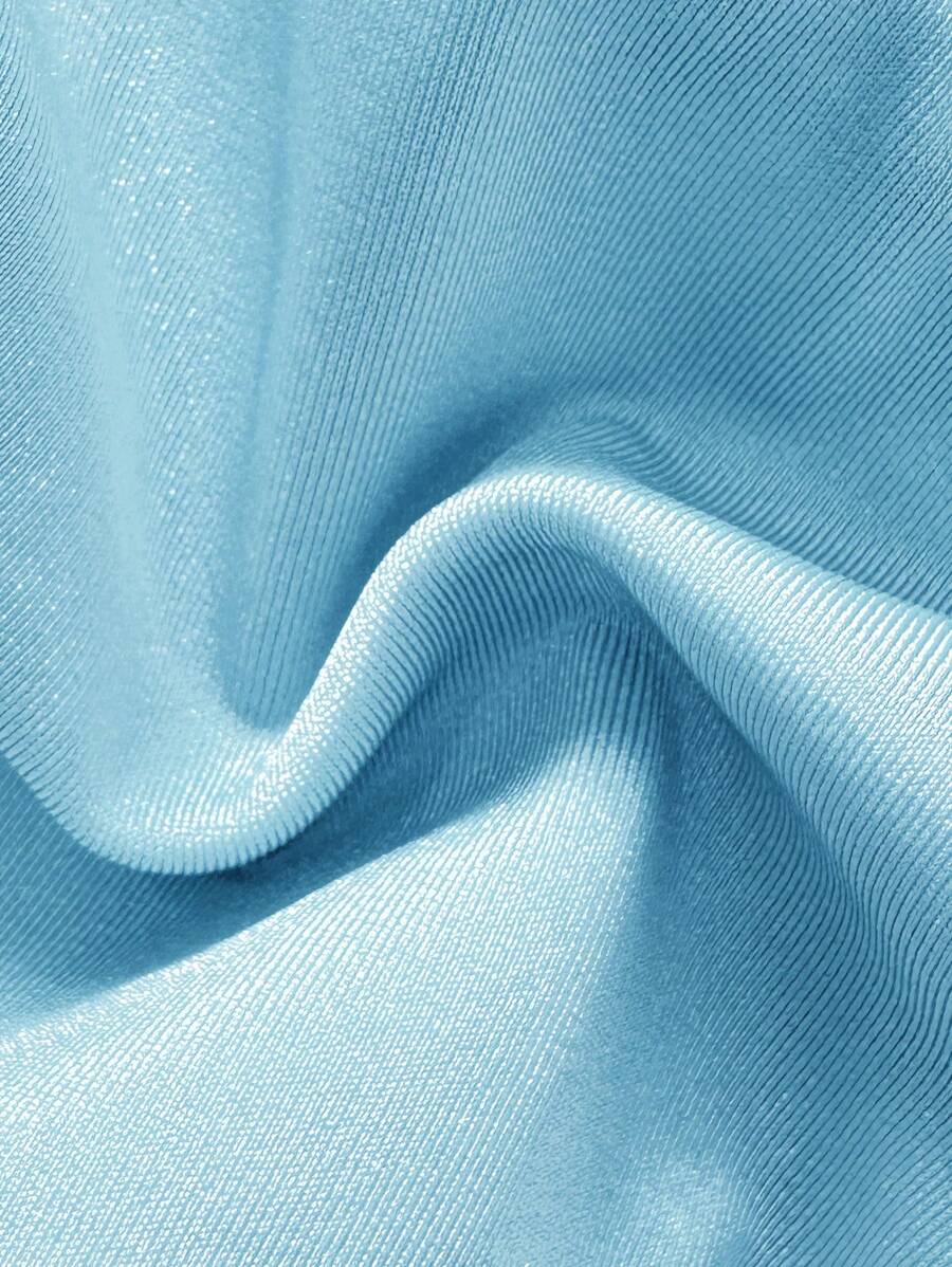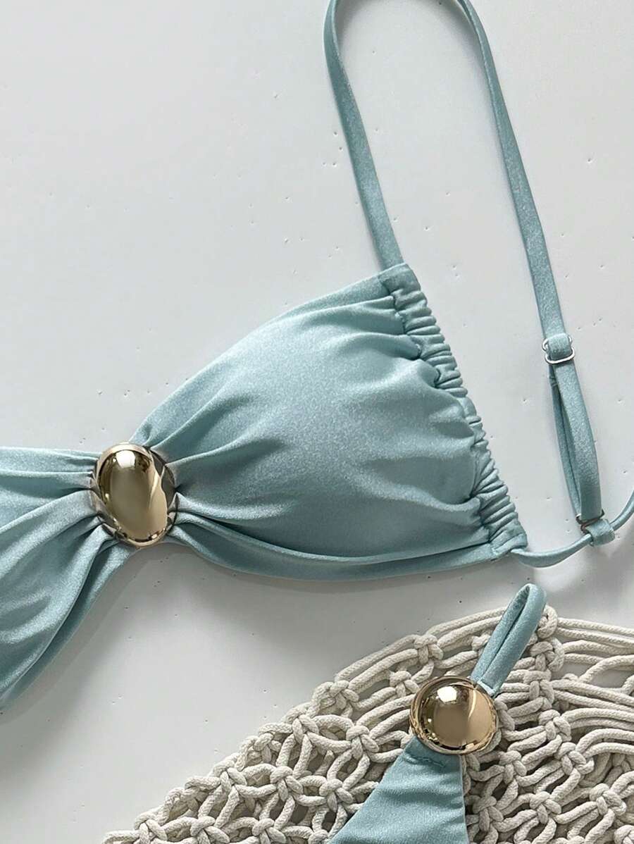 2 piezas conjunto de traje de bano de verano para vacaciones en la playa con top de tirantes finos de unicolor metalico y tanga tipo bikini para mujer