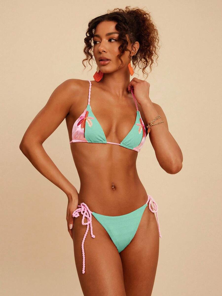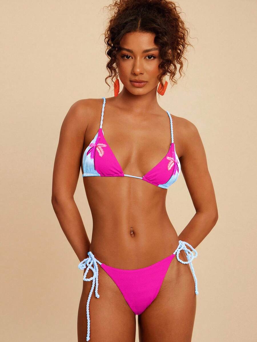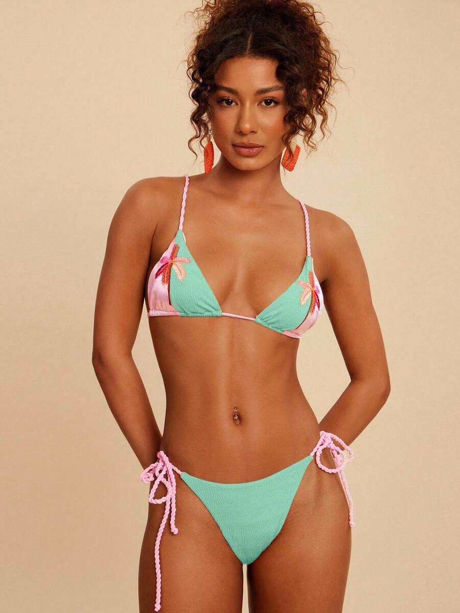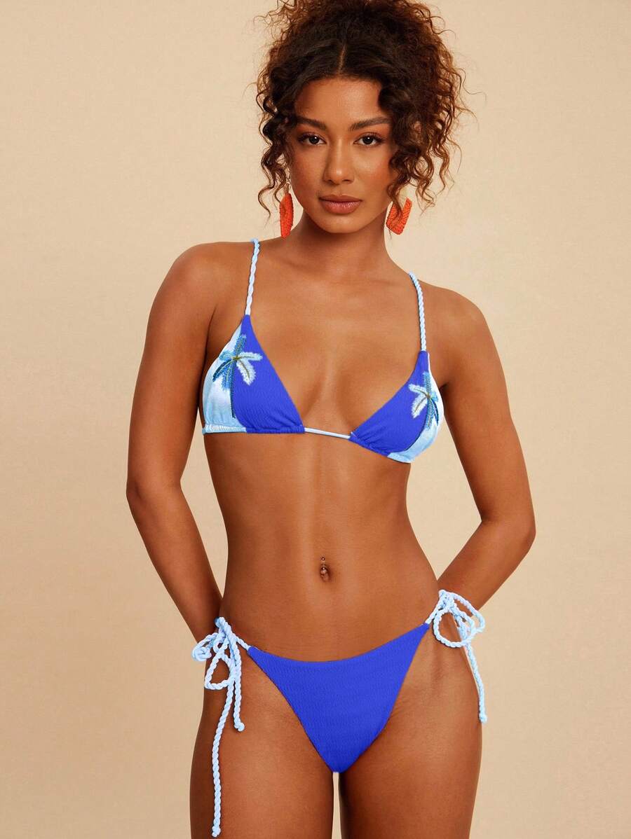 Travachic conjunto de bikini sexy estampado con palmeras para mujer, a – Muy Bonita