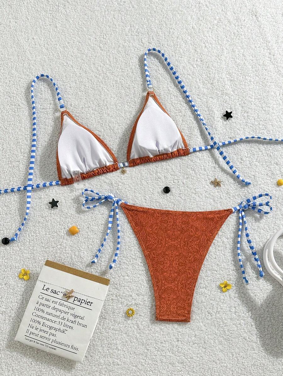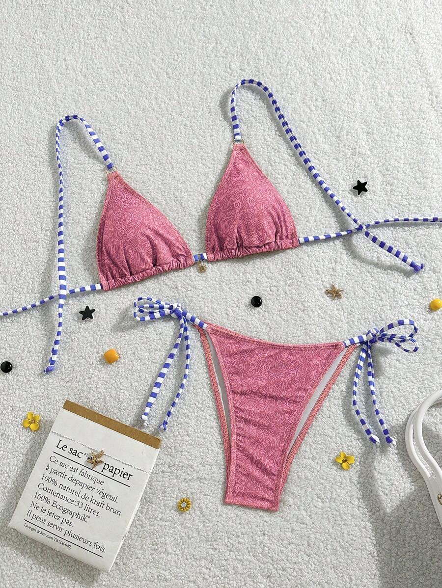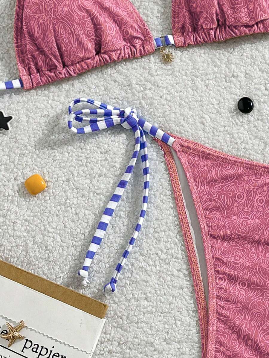 Conjunto de bikini con tirantes para mujer, casual, deportivo y de playa, con estampado