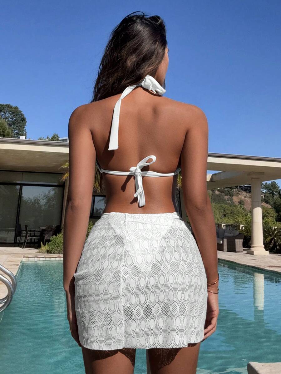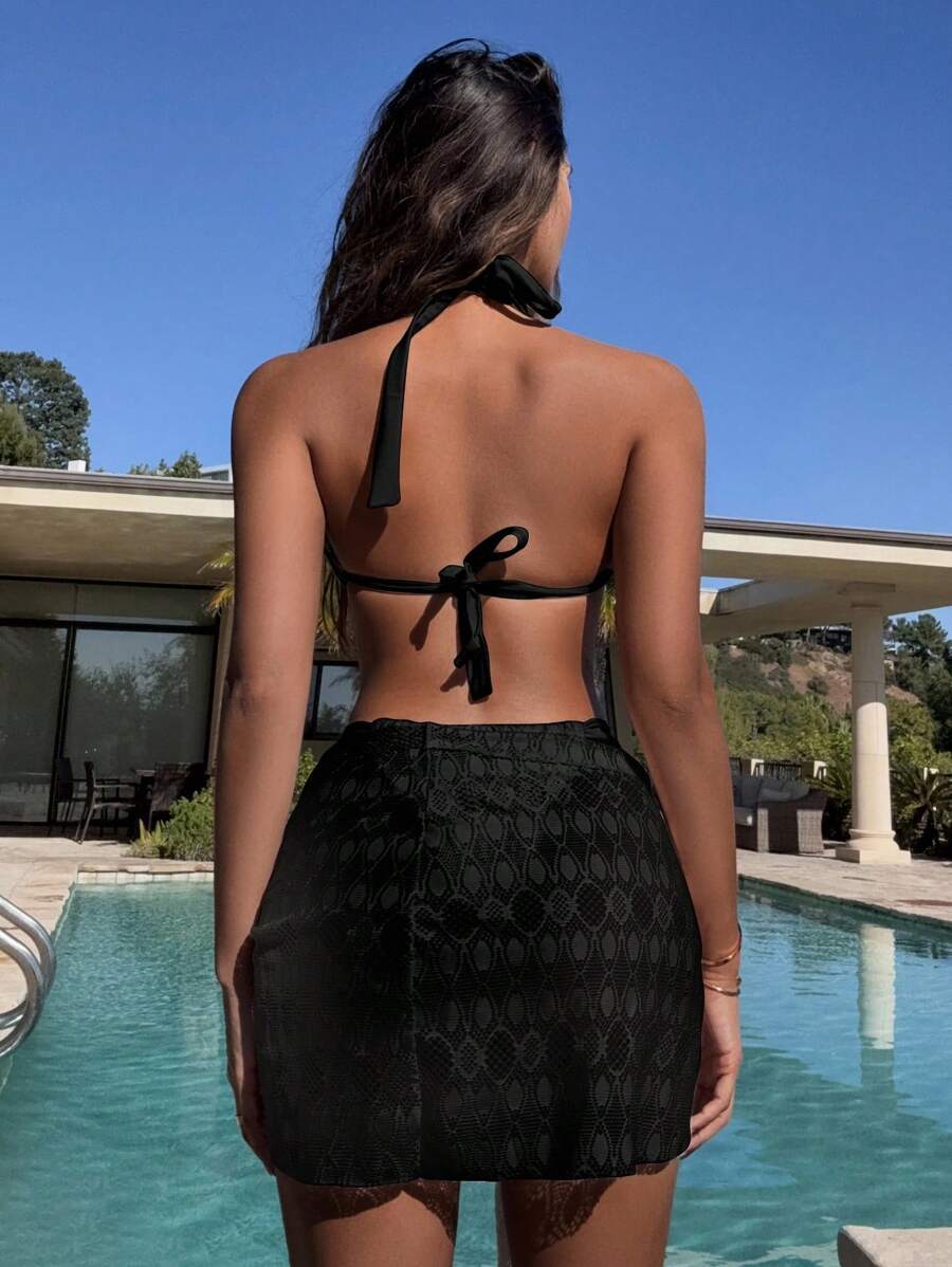 Conjunto de 3 piezas de bikini elegante y retro con decoracion de estr – Muy Bonita
