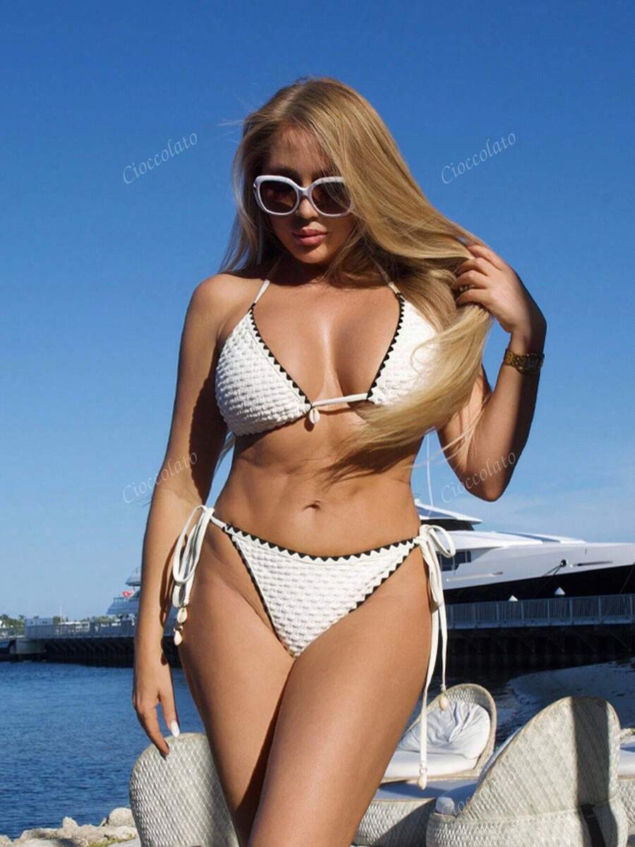 Cioccolato conjunto de traje de bano de verano para mujeres con cuello halter, brasier de moda y braguita de bikini con lazos laterales, bikini separado