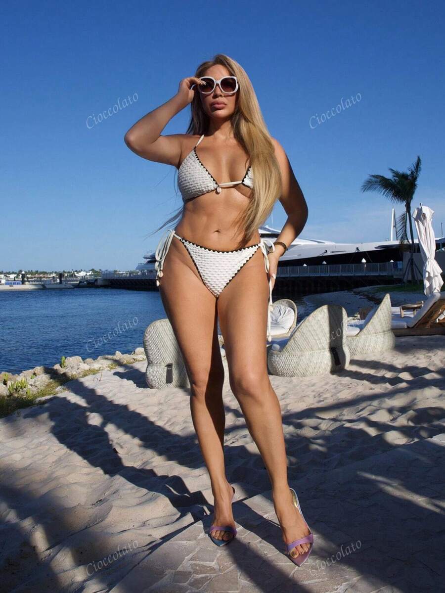 Cioccolato conjunto de traje de bano de verano para mujeres con cuello – Muy Bonita