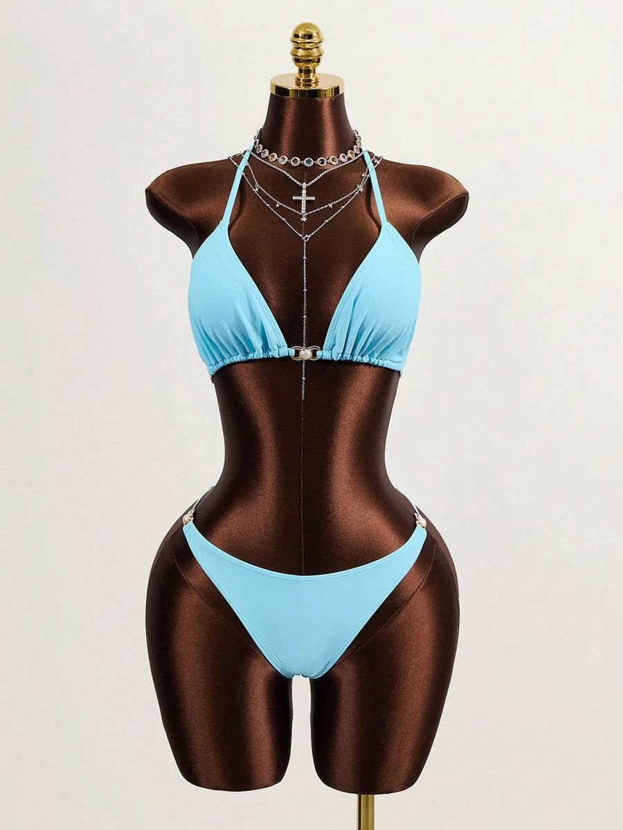 Conjunto de bikini sexy para mujeres con cuello halter y traje de bano – Muy Bonita