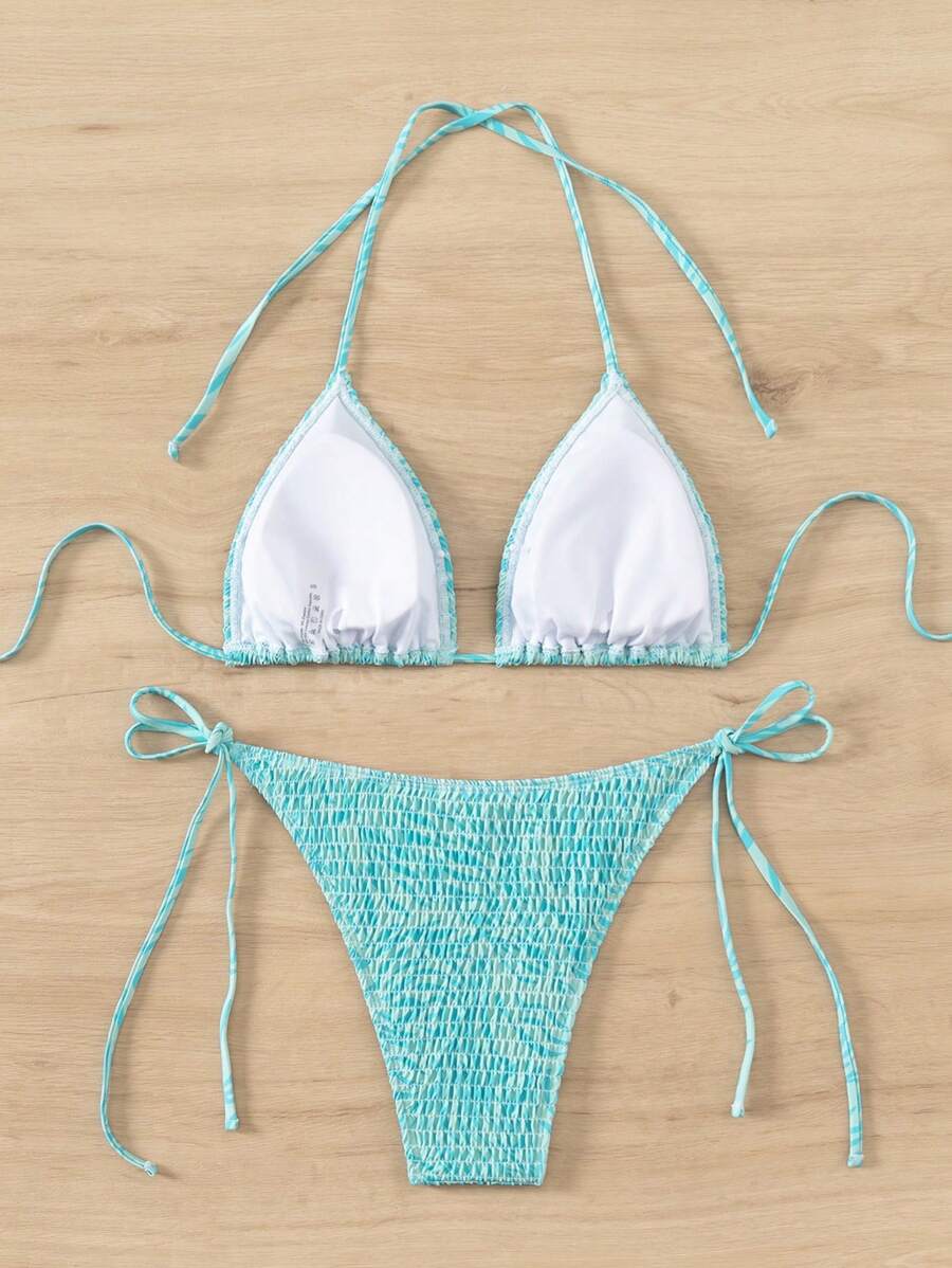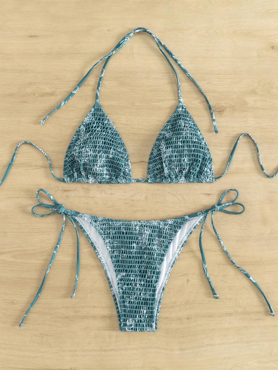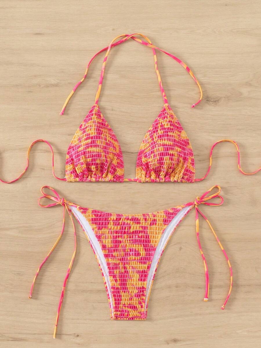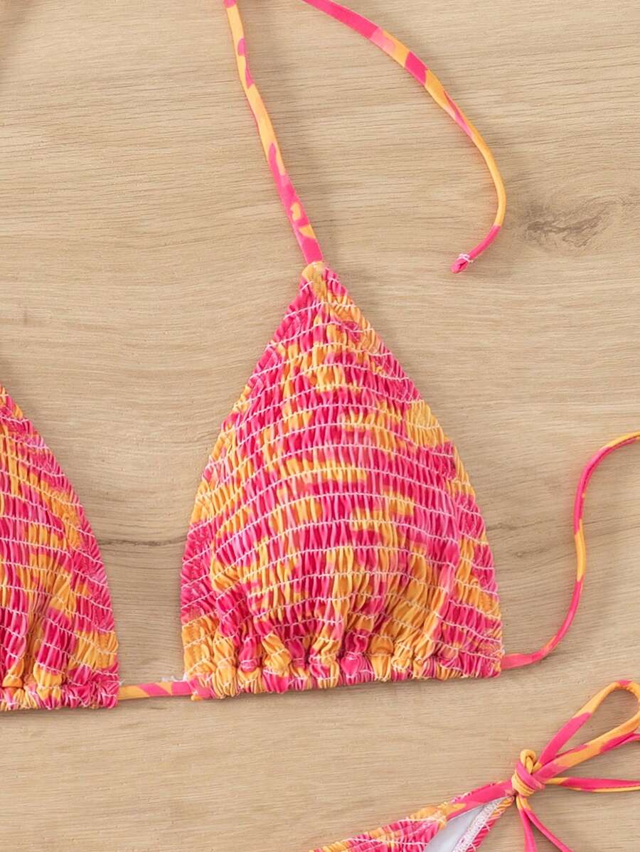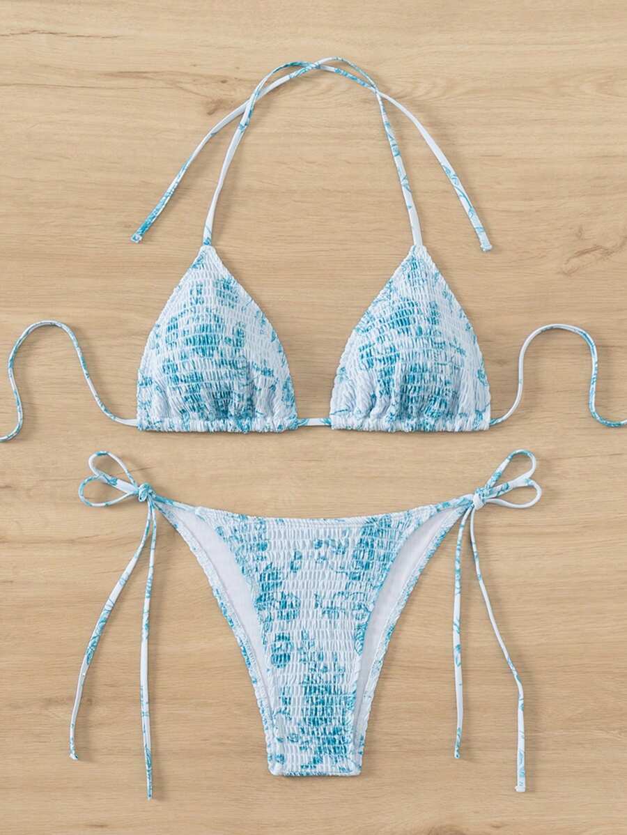 Conjunto de bikini de dos piezas para mujer con diseno tie-dye y cuell – Muy Bonita