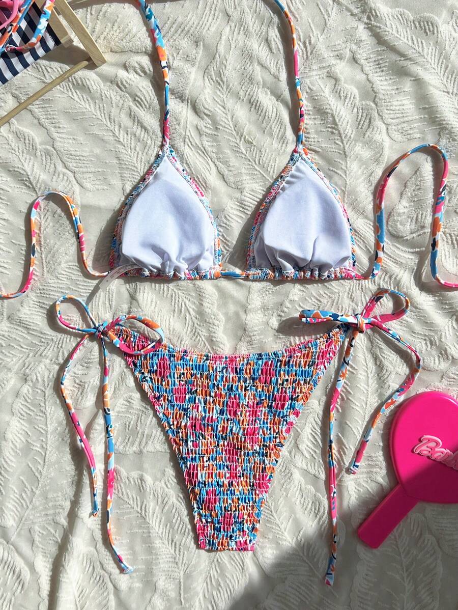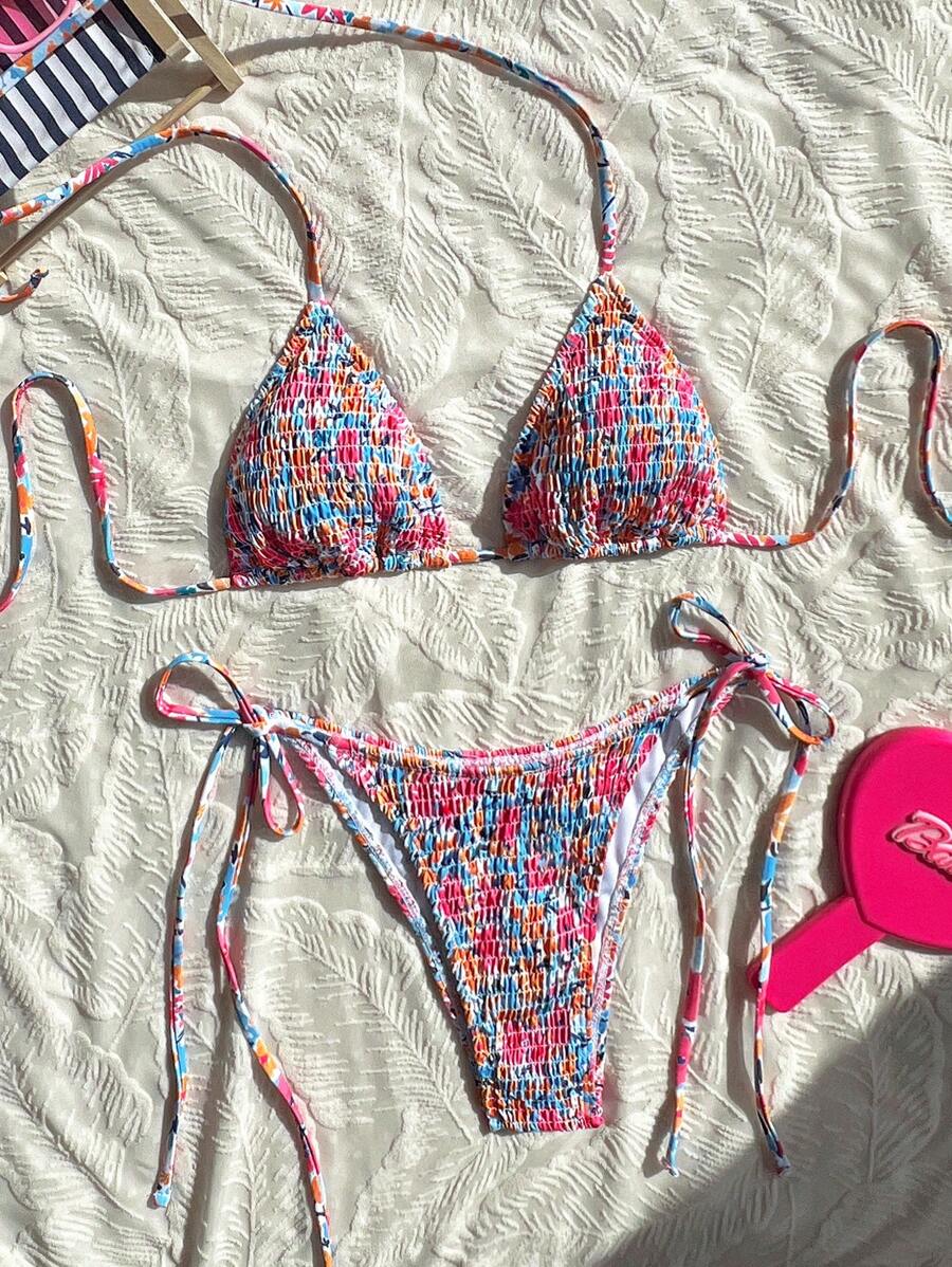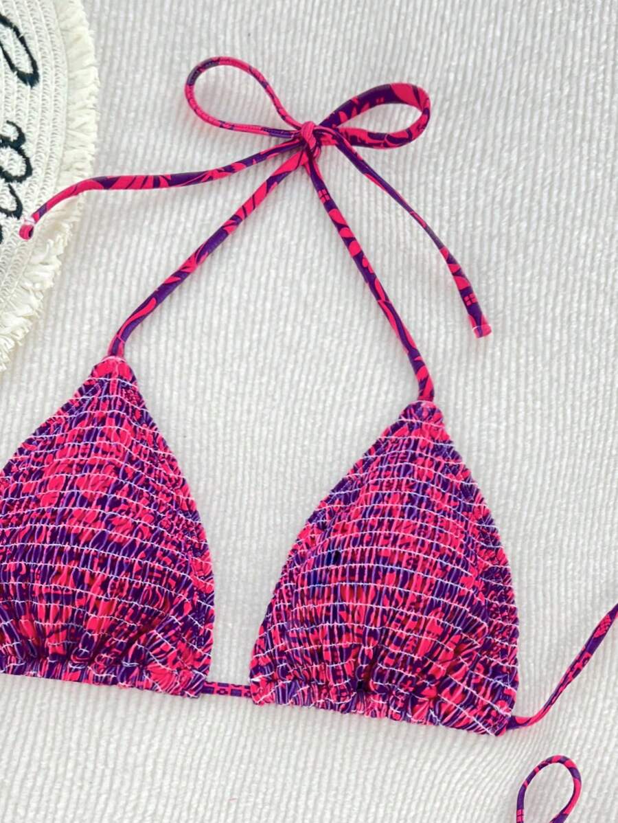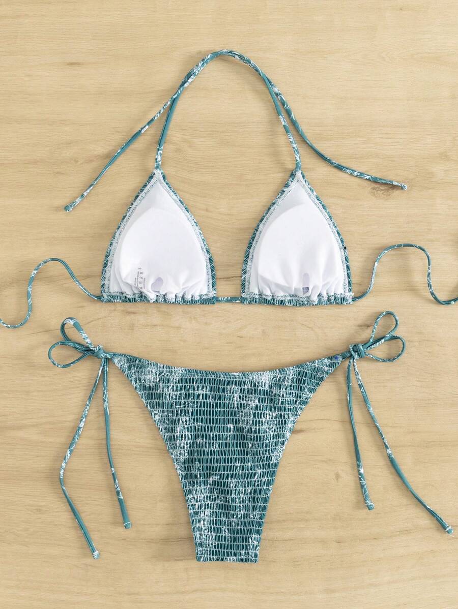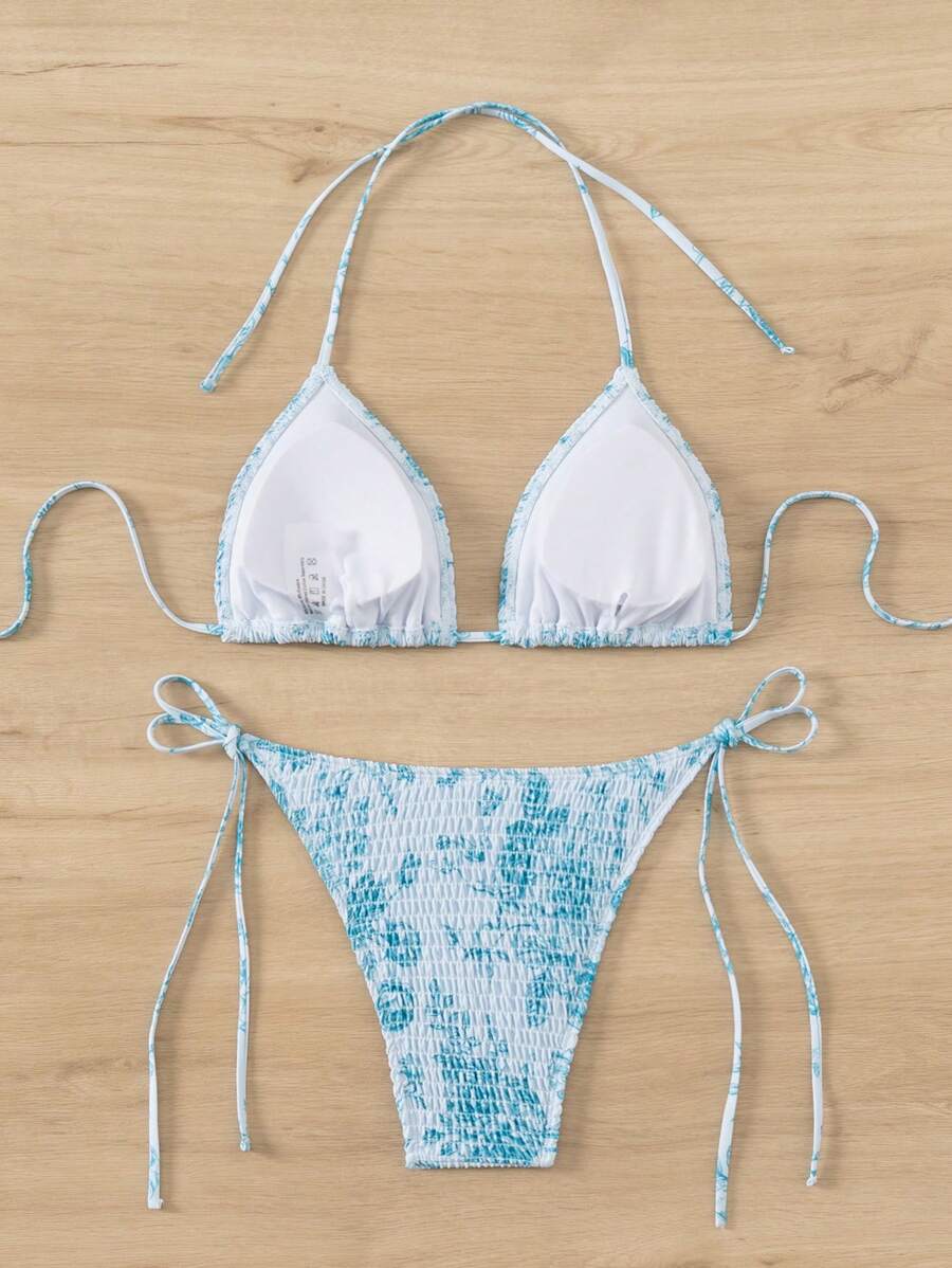 Conjunto de bikini de dos piezas para mujer con diseno tie-dye y cuell – Muy Bonita