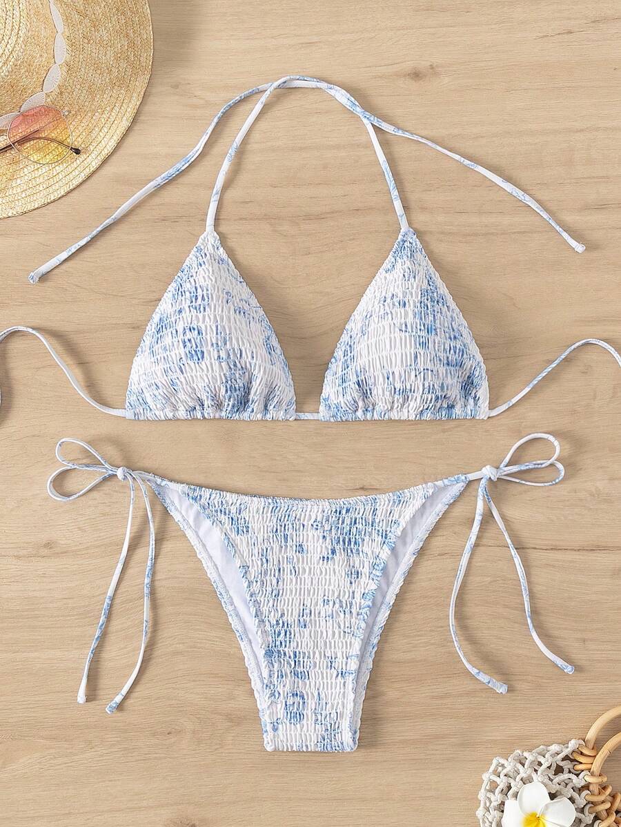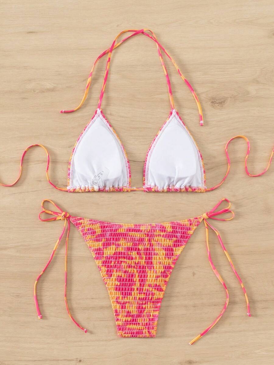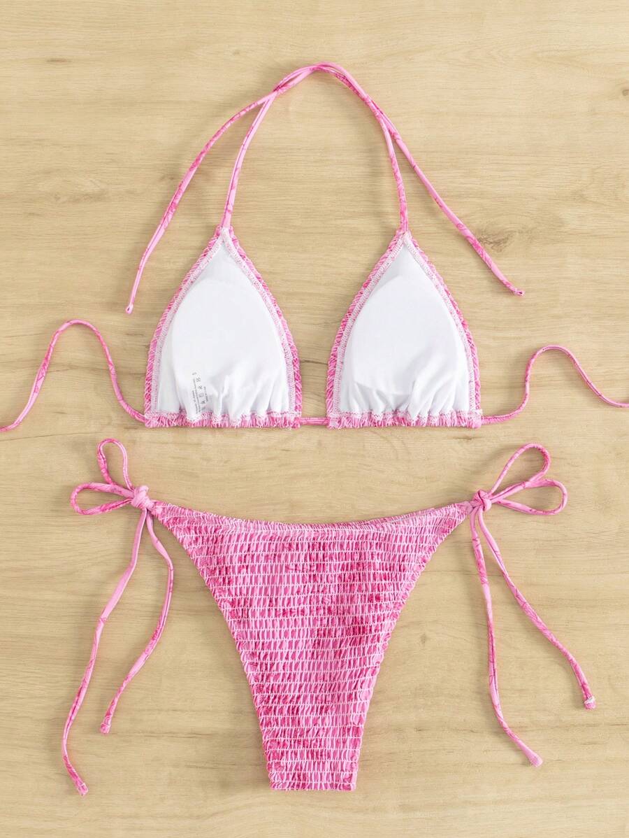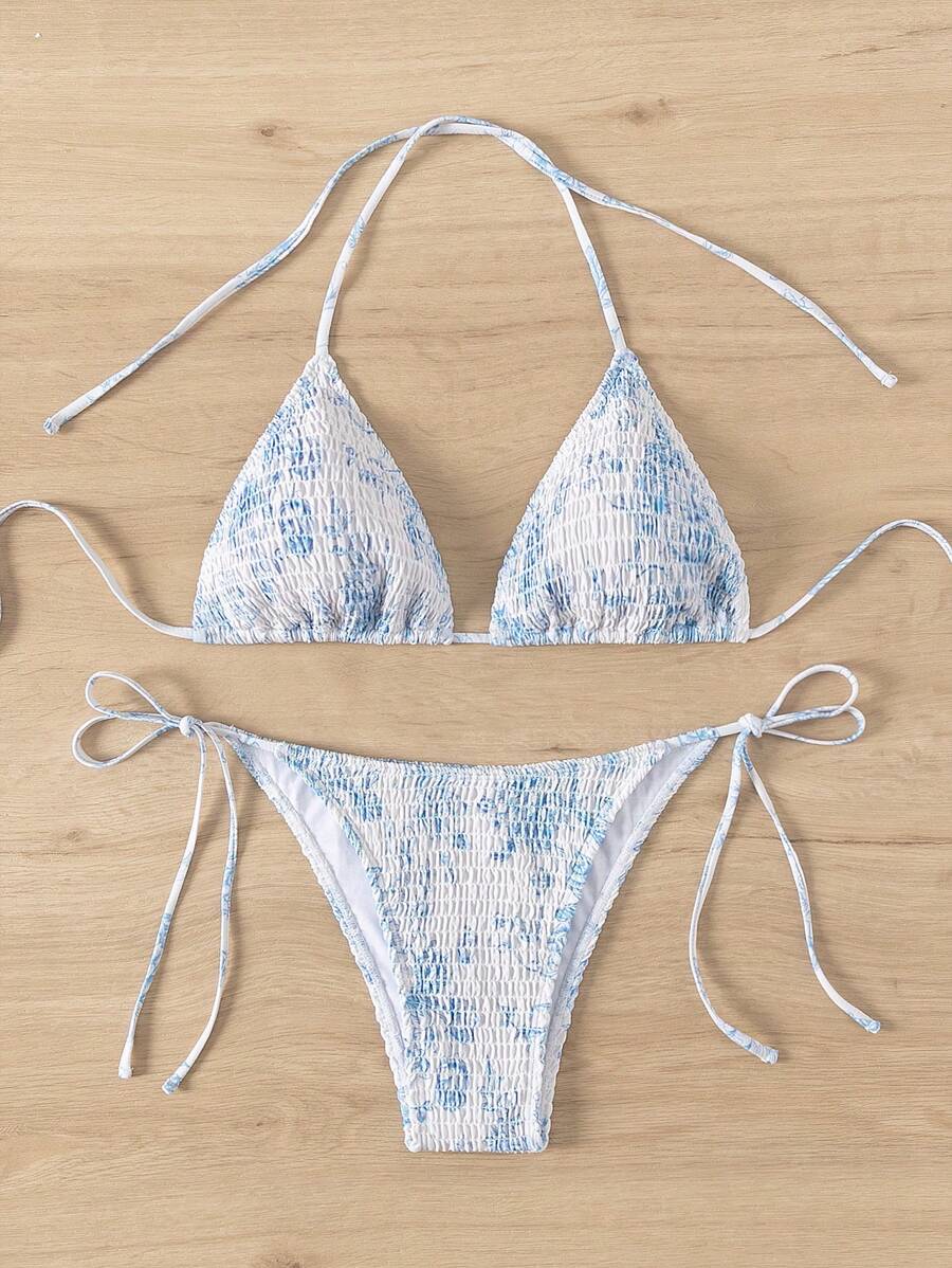 Conjunto de bikini de dos piezas para mujer con diseno tie-dye y cuell – Muy Bonita