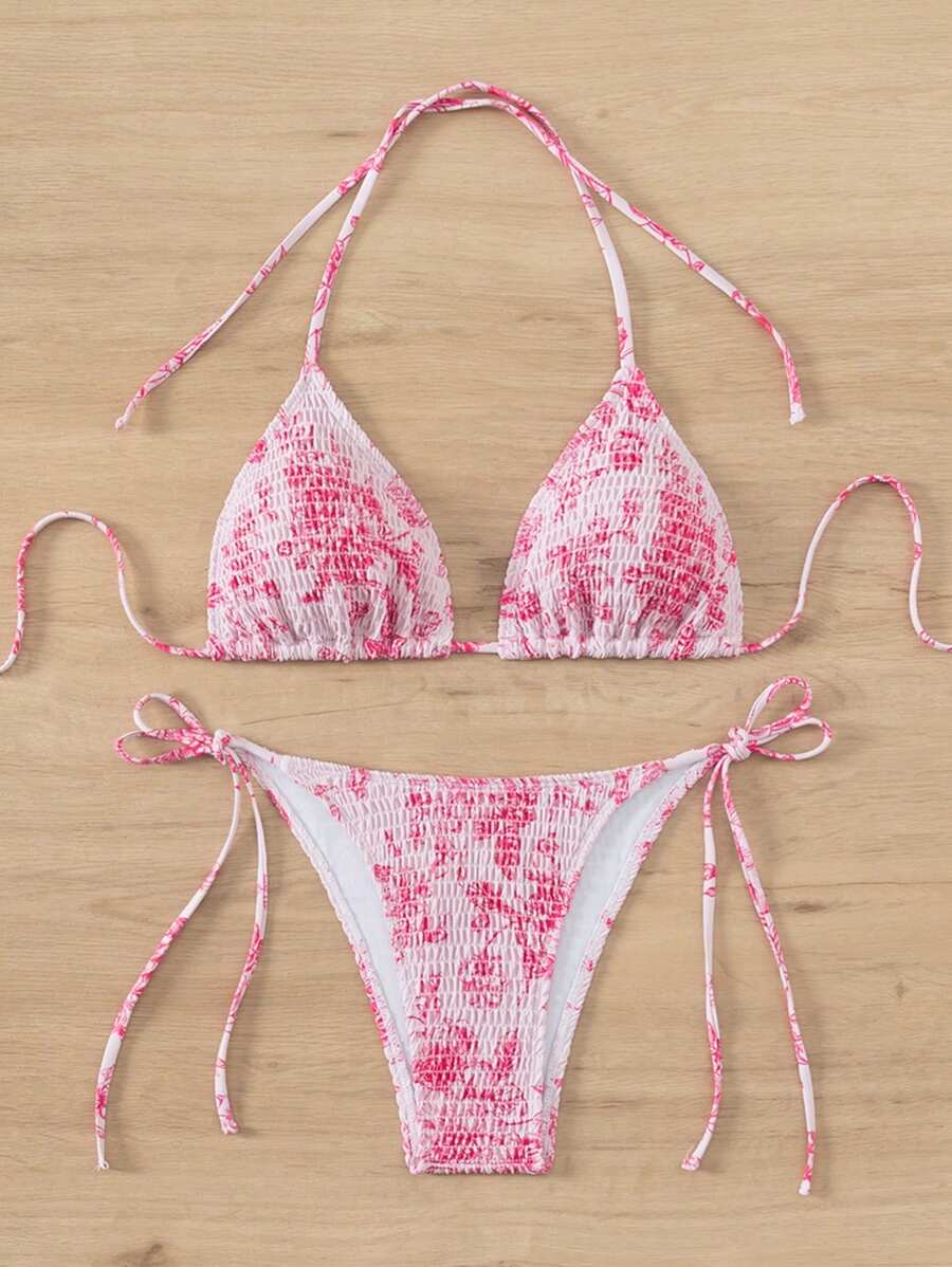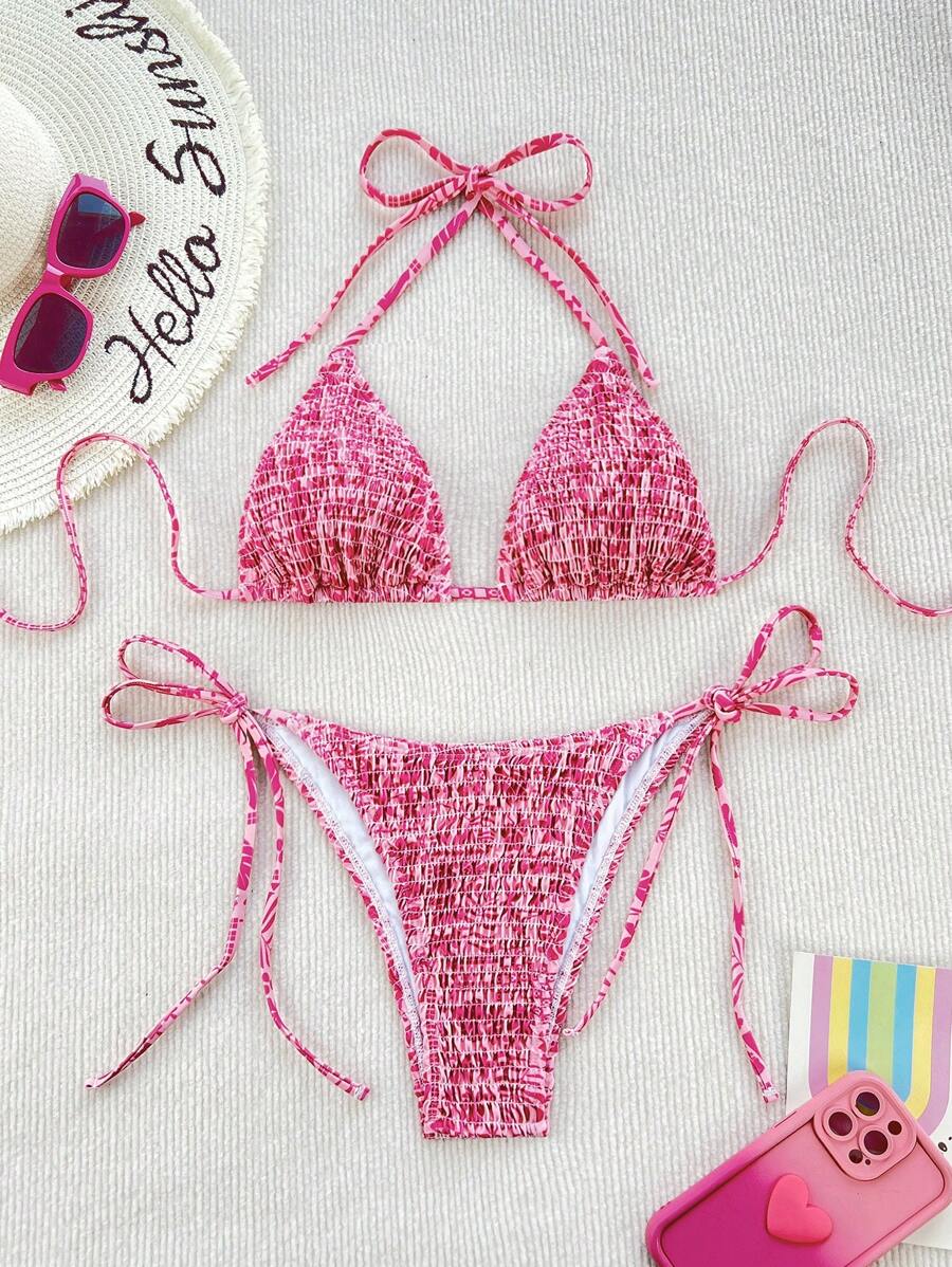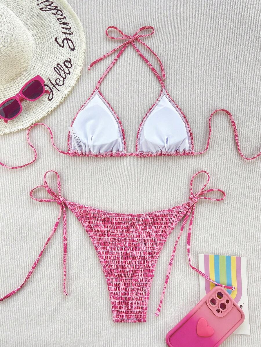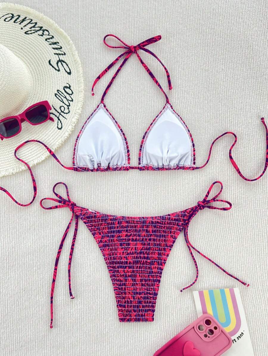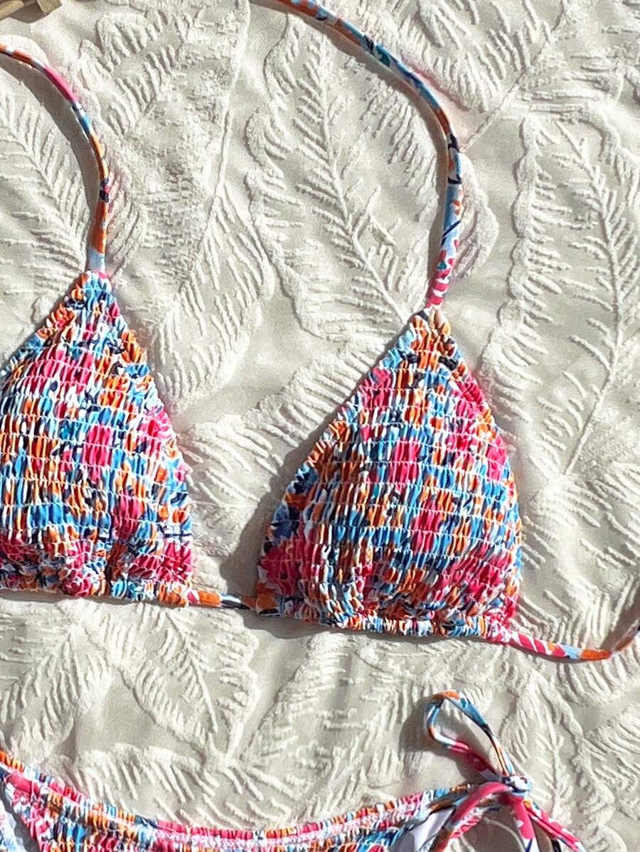 Conjunto de bikini de dos piezas para mujer con diseno tie-dye y cuell – Muy Bonita