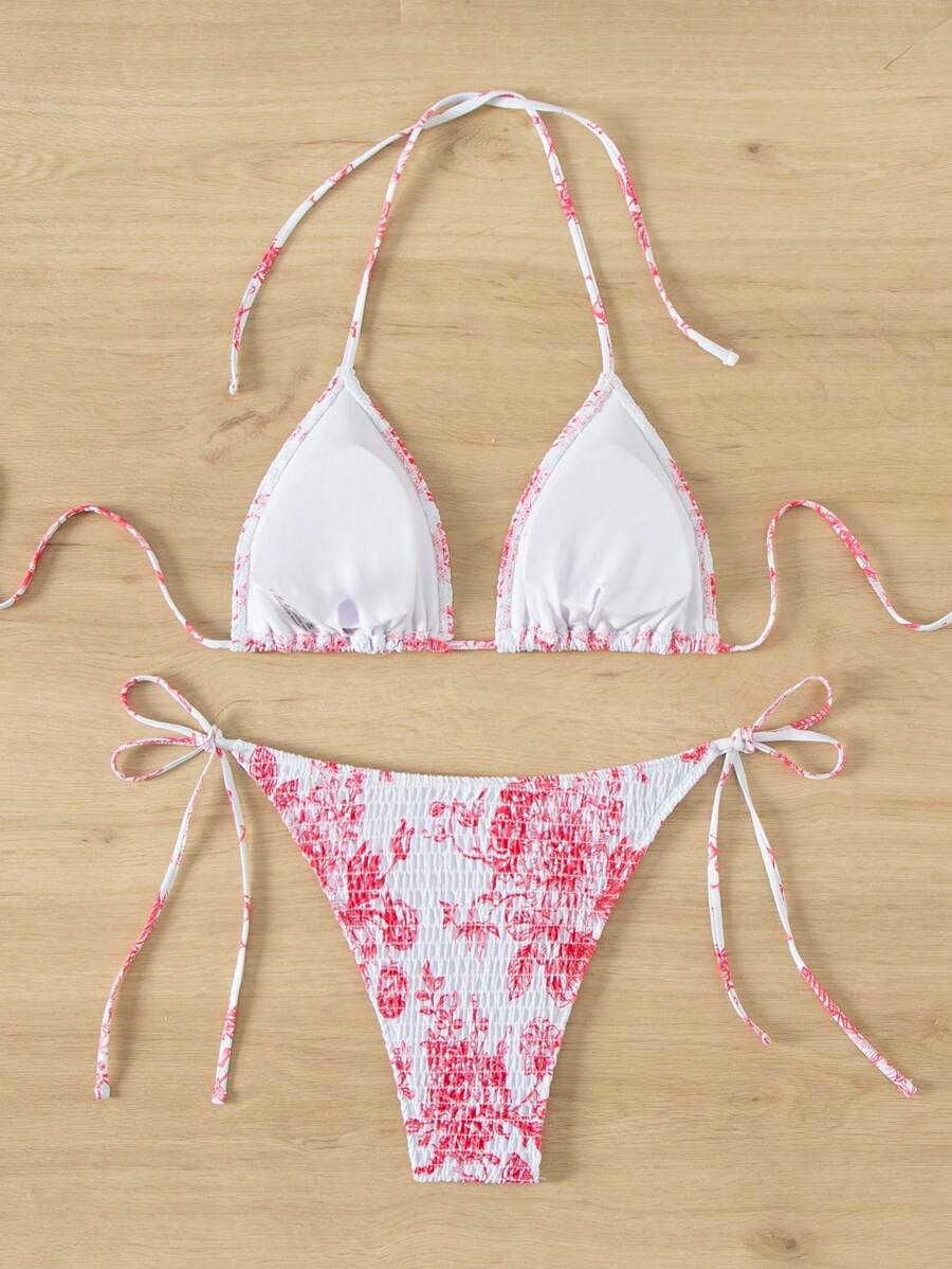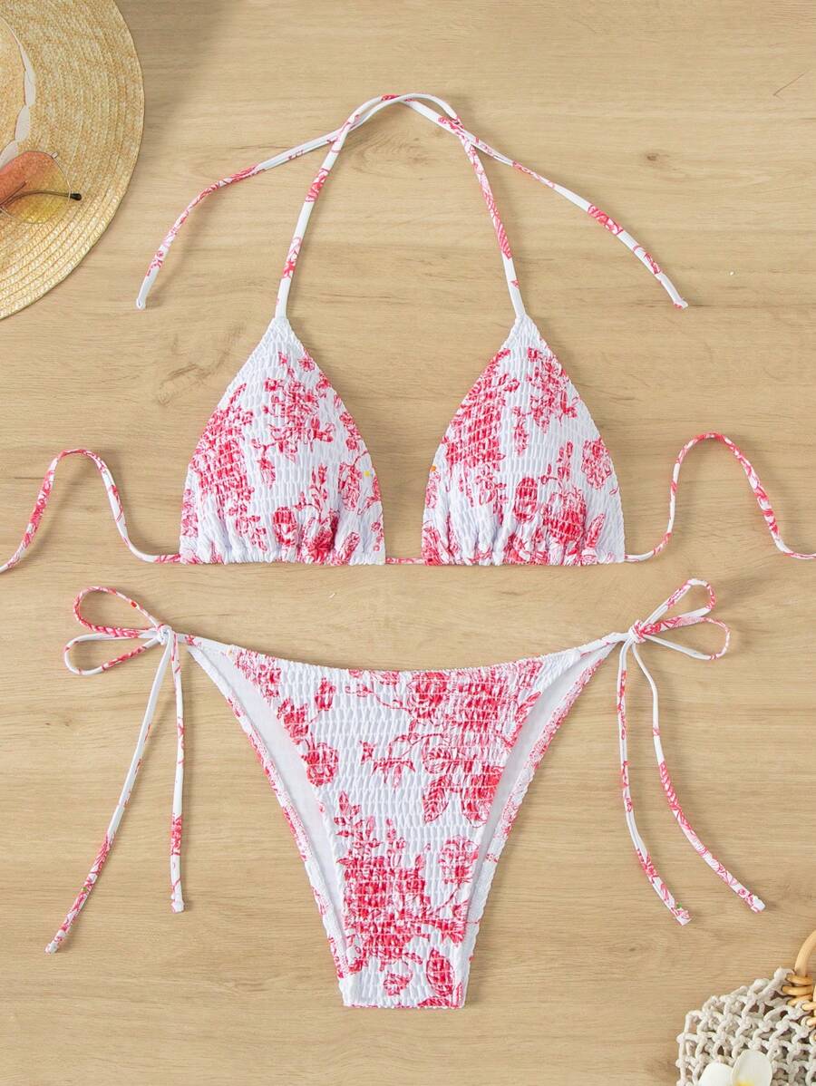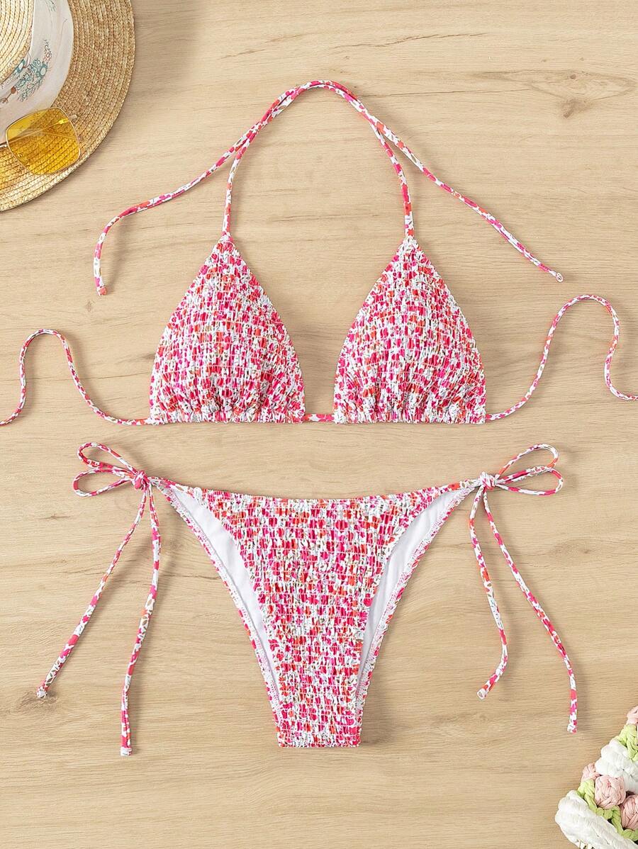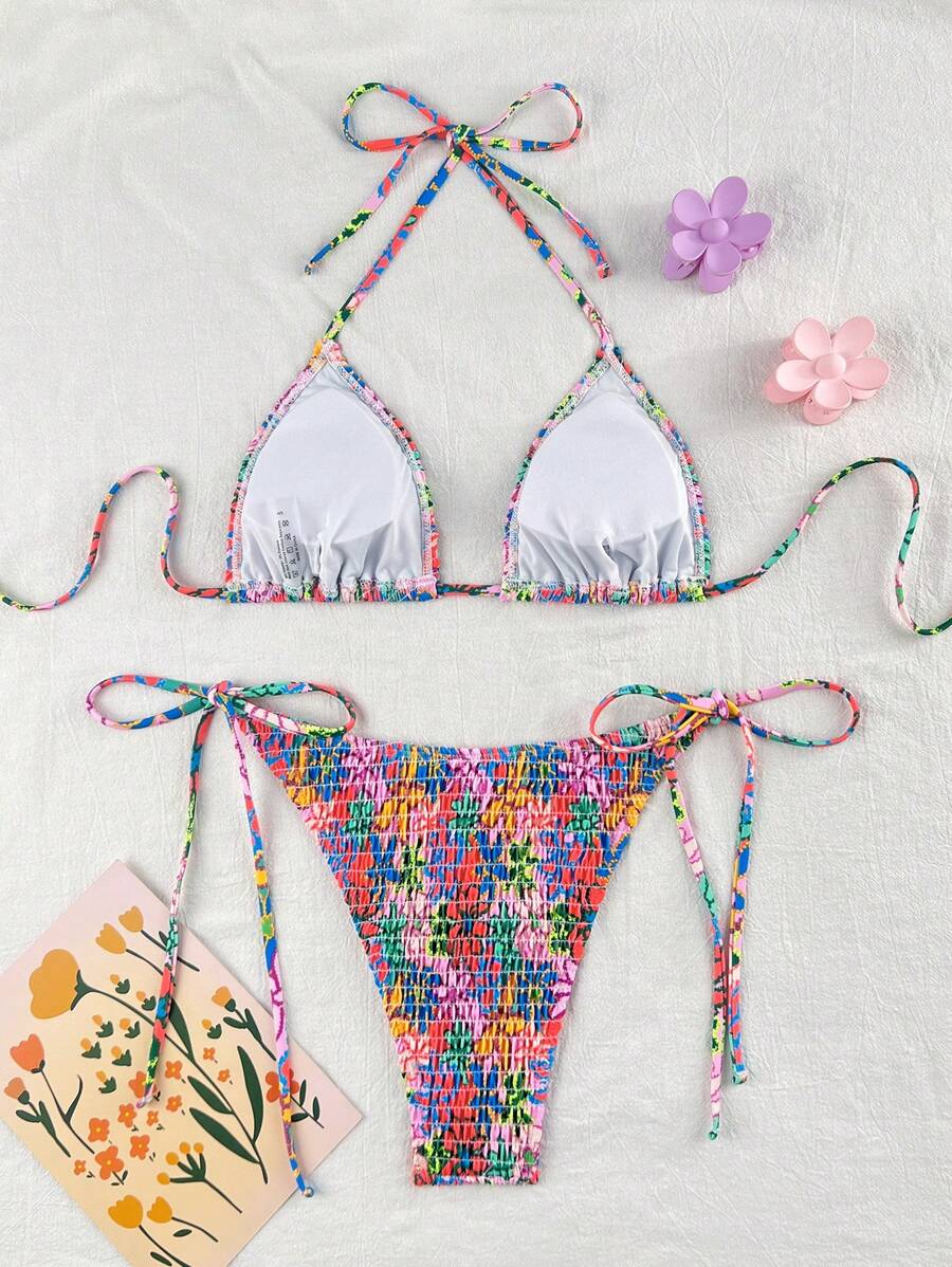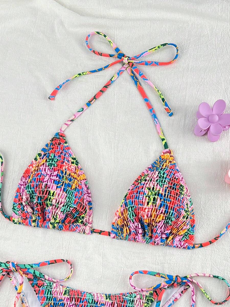 Conjunto de bikini de dos piezas para mujer con diseno tie-dye y cuell – Muy Bonita