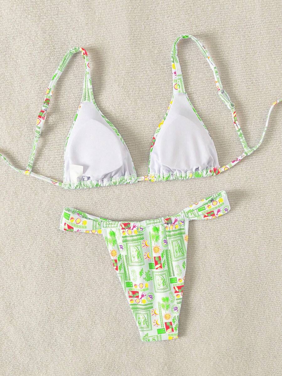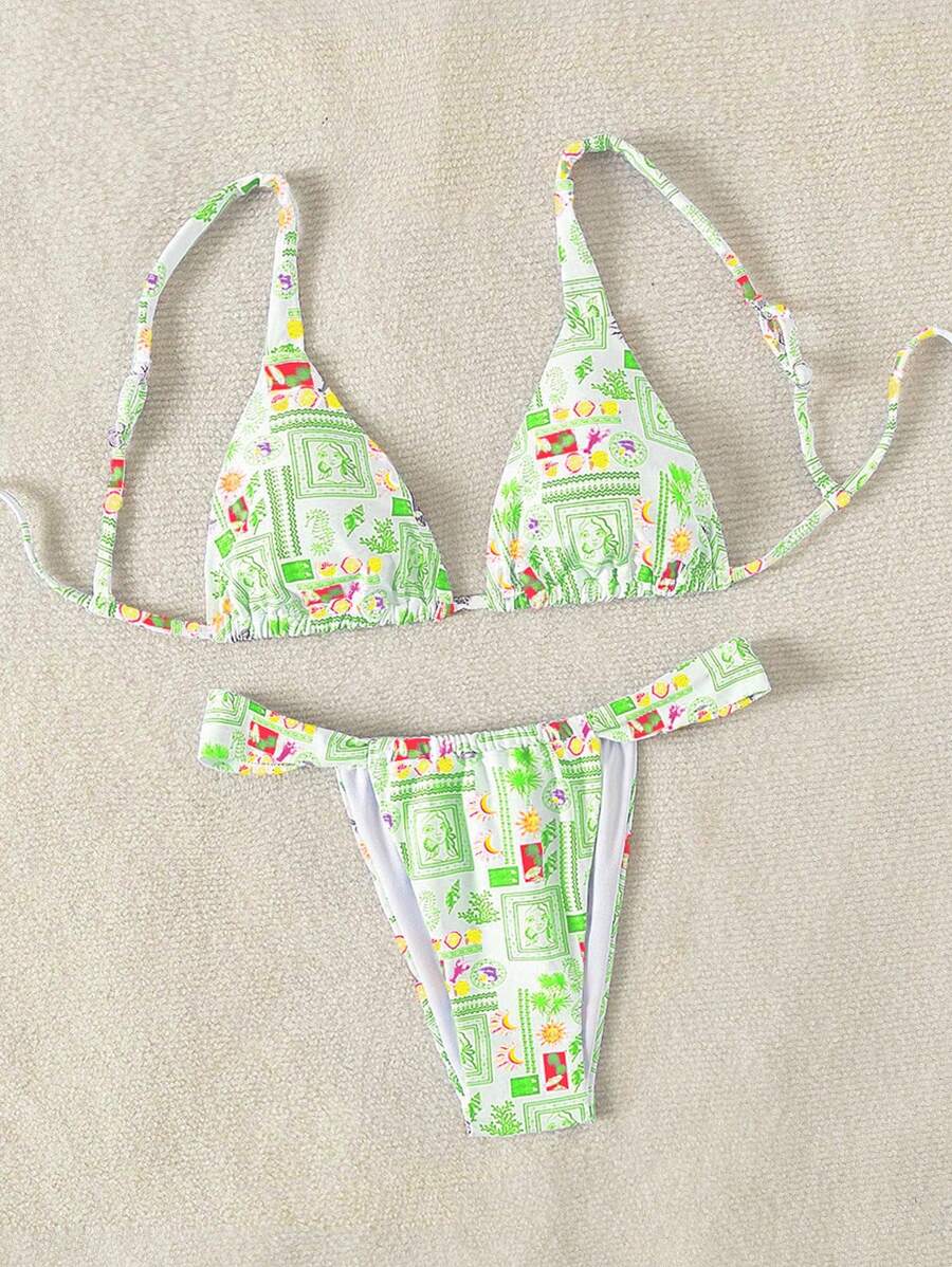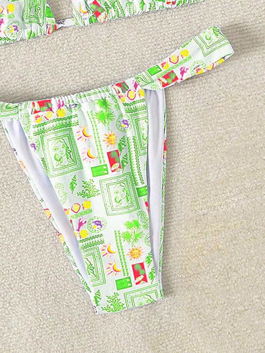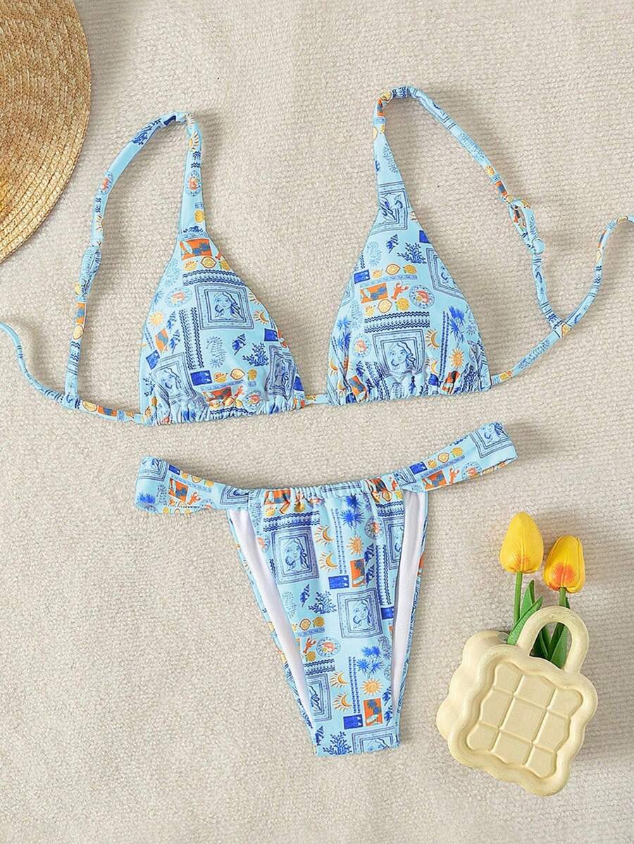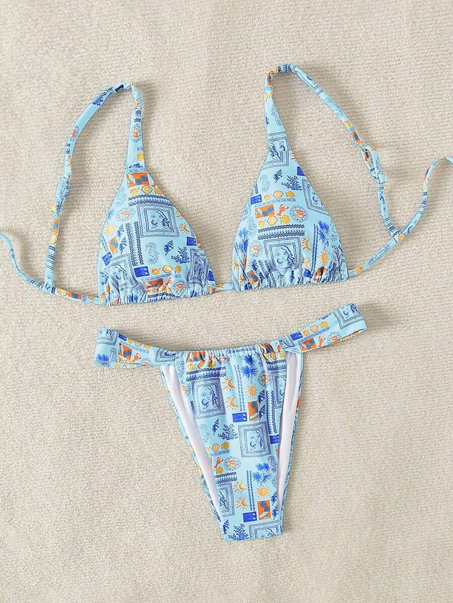 Conjunto de bikini naranja sexy con estampado de plantas para playa de – Muy Bonita