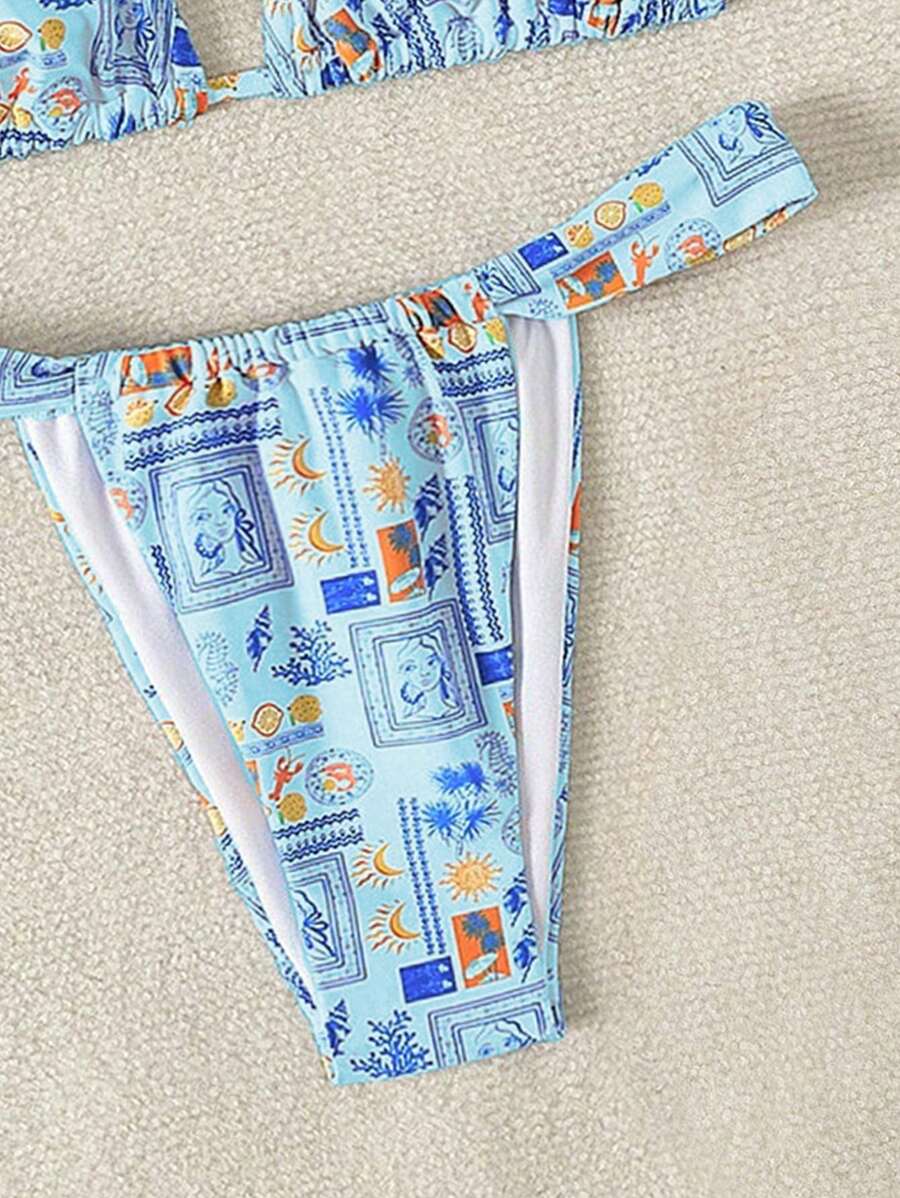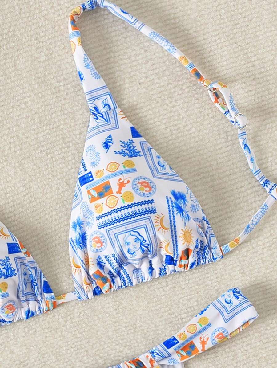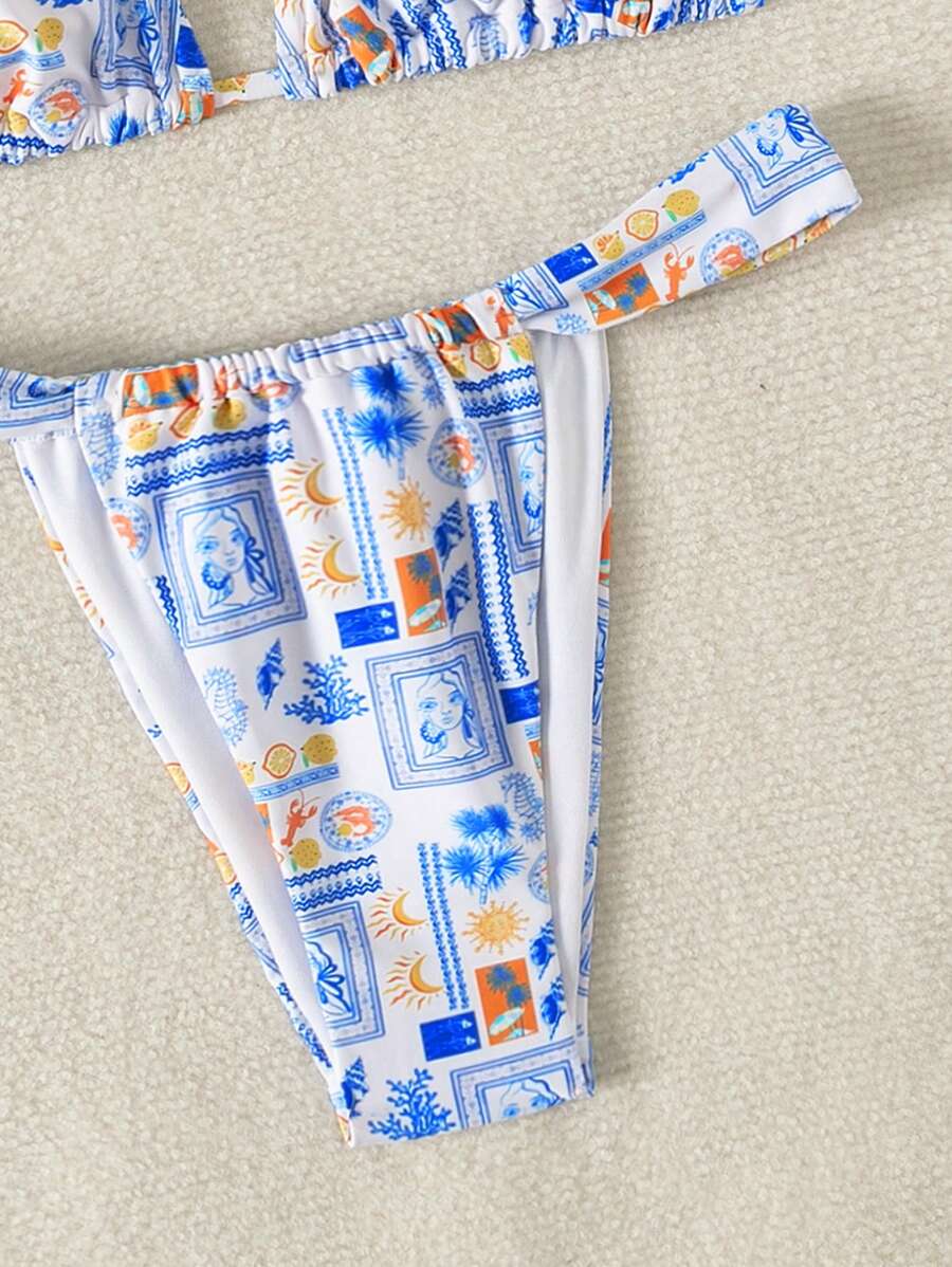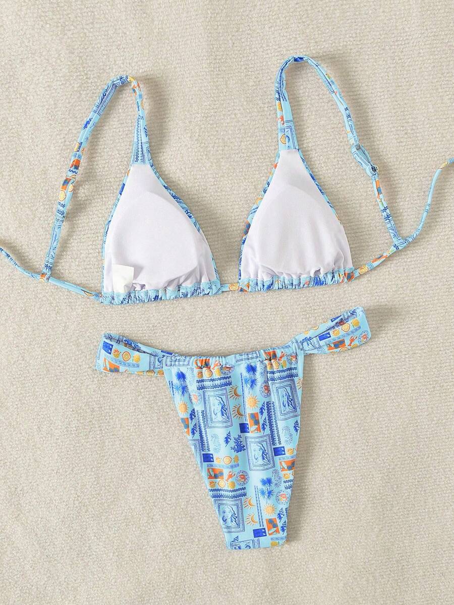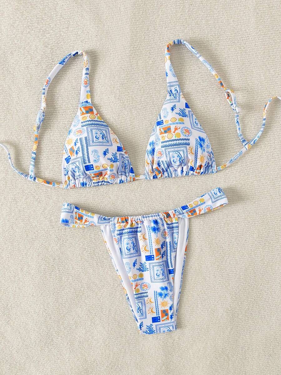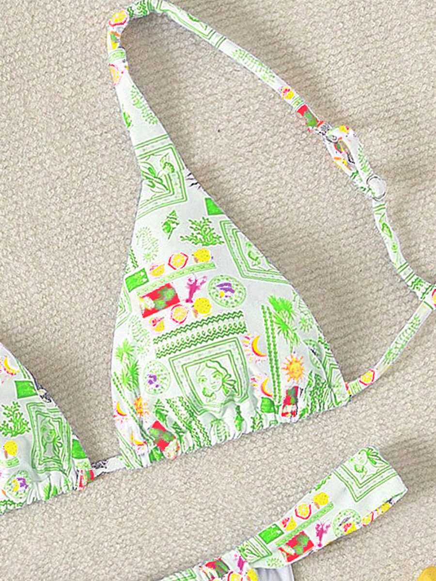 Conjunto de bikini naranja sexy con estampado de plantas para playa de – Muy Bonita