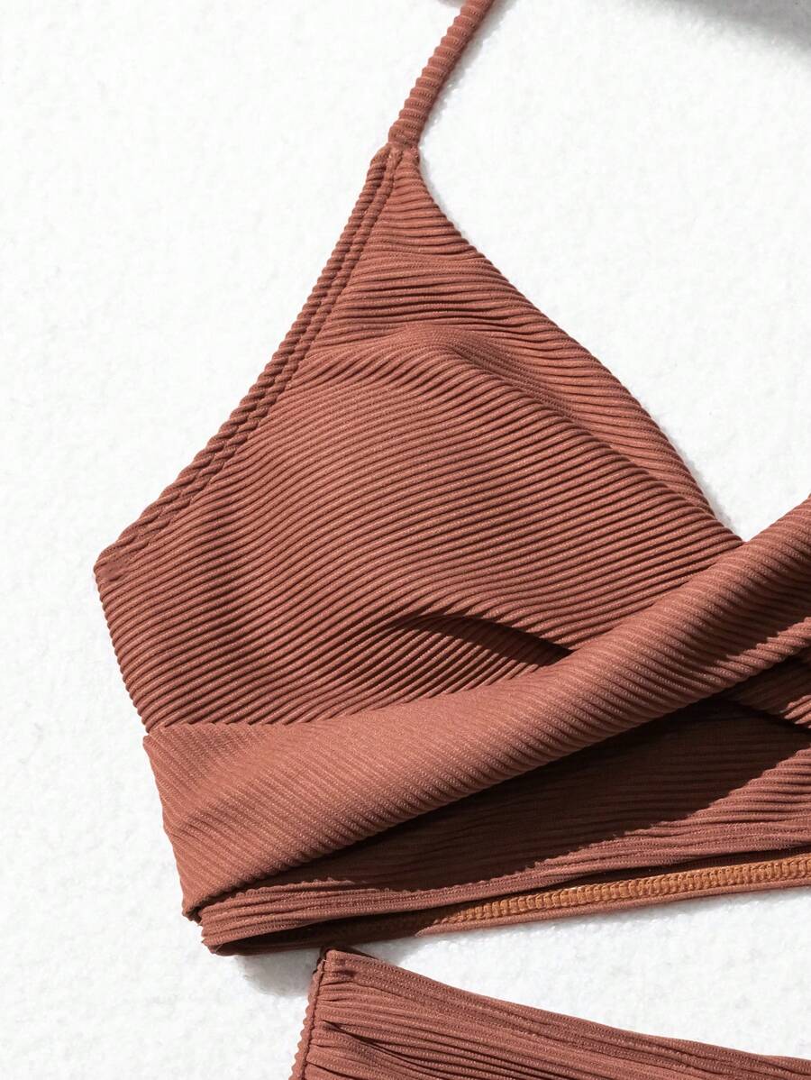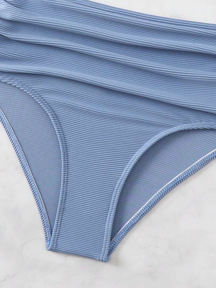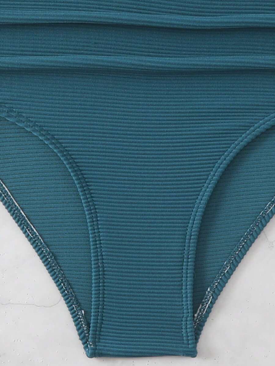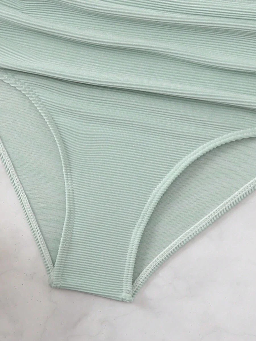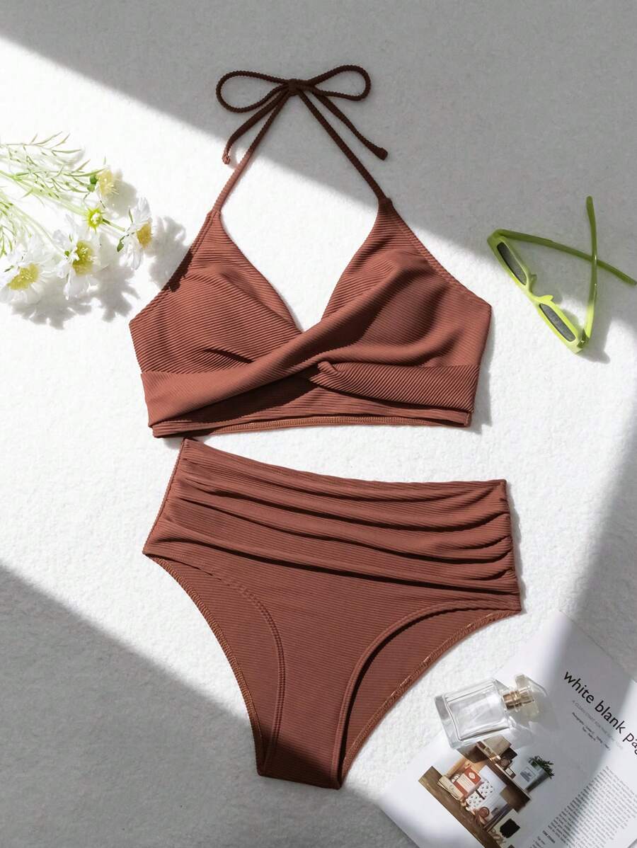 Conjunto de bikini con tirantes de espagueti con diseno retorcido y plisado en unicolor para la playa de verano en vacaciones
