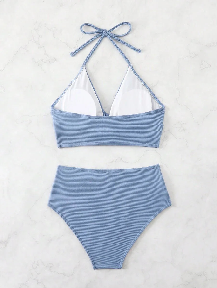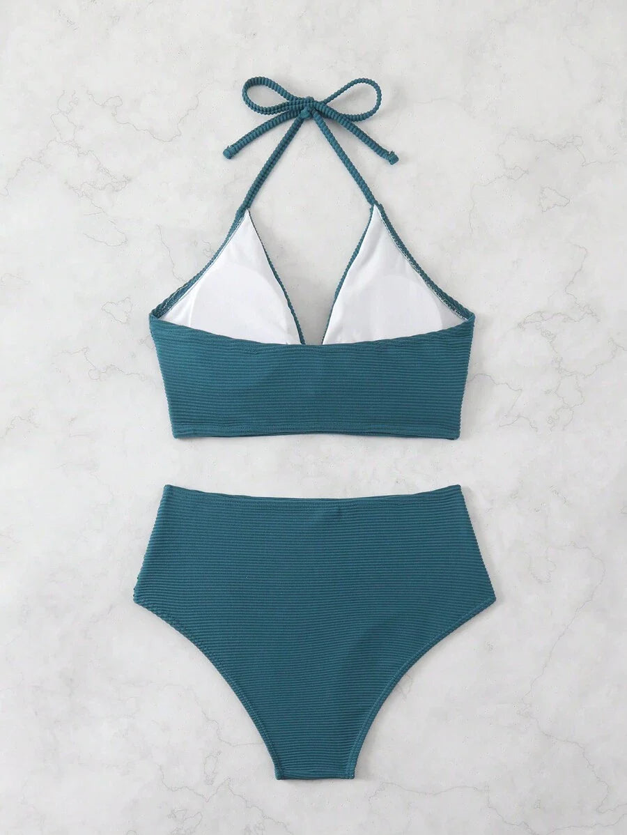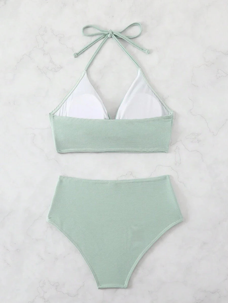 Conjunto de bikini con tirantes de espagueti con diseno retorcido y pl – Muy Bonita
