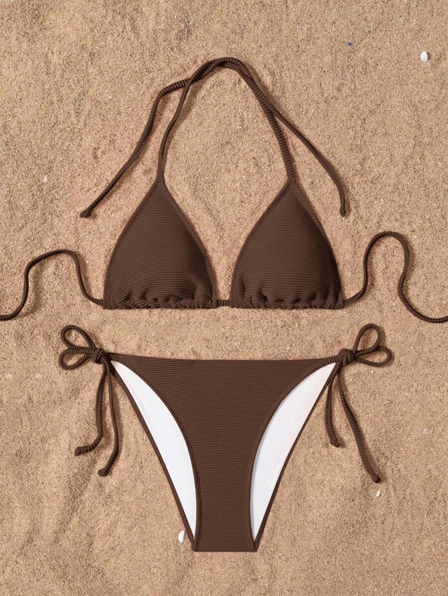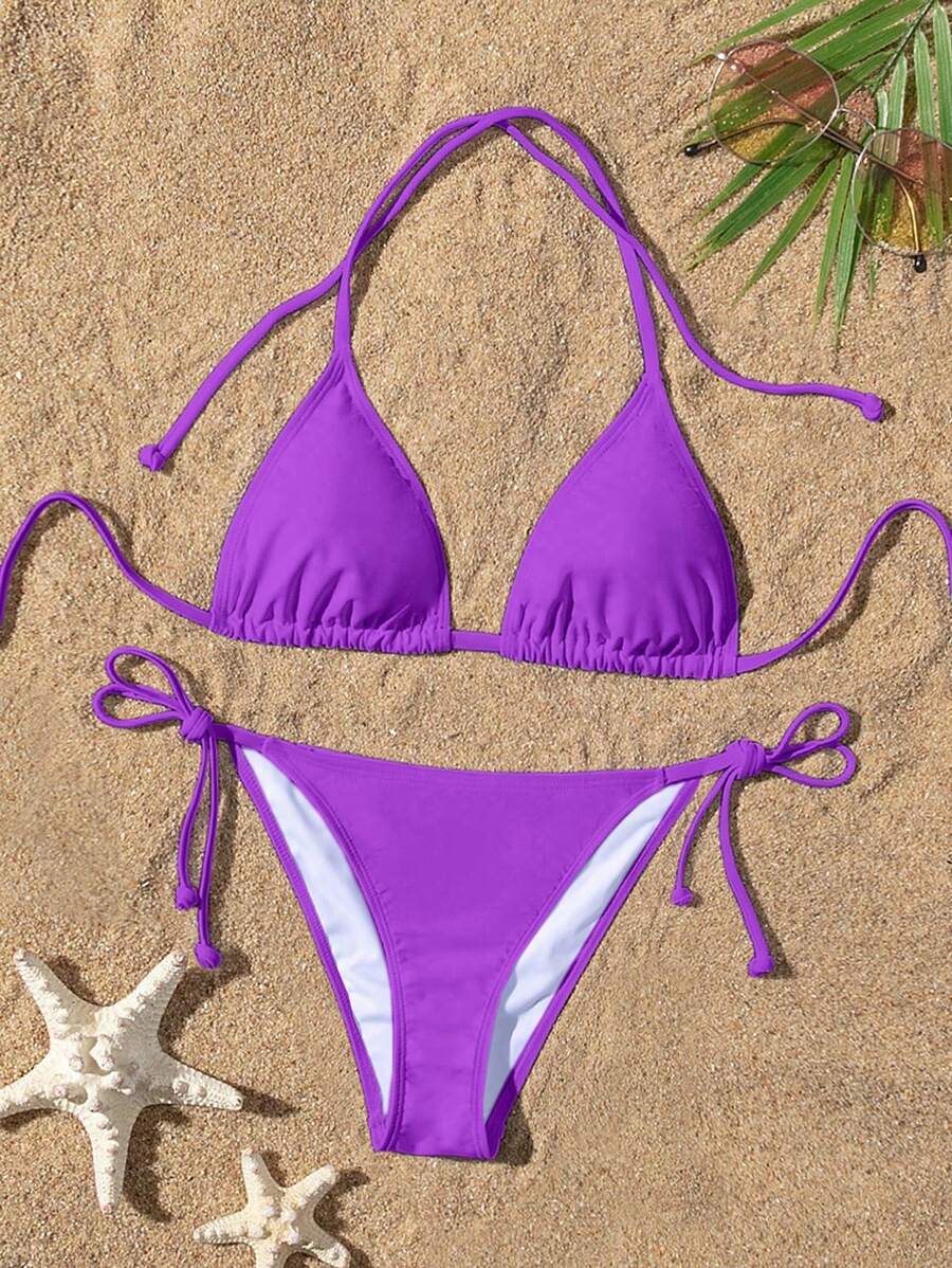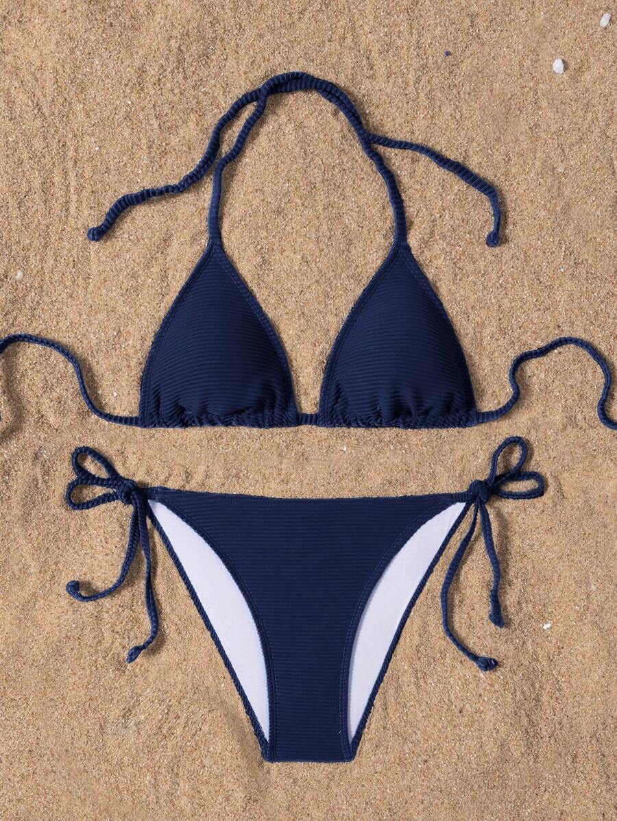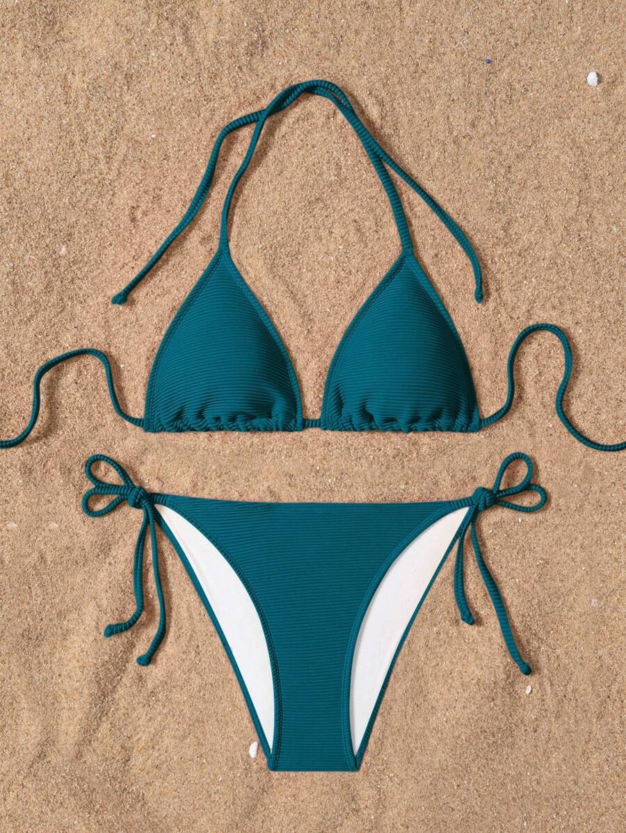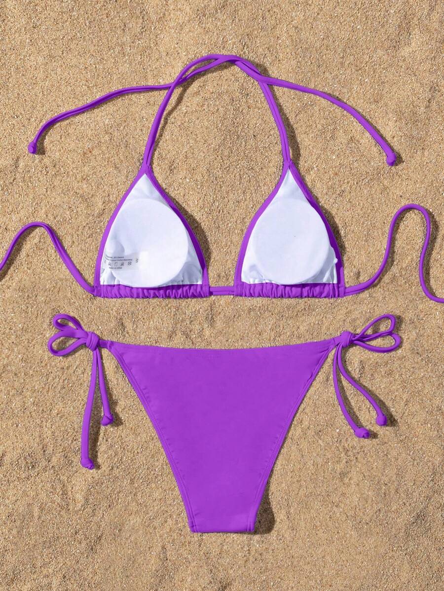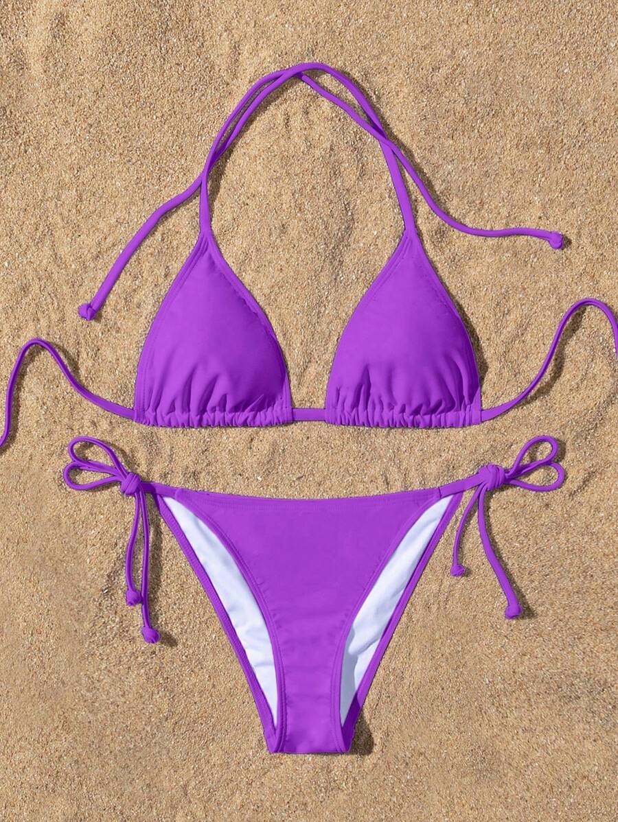 Conjunto de bikini sexy de atar al cuello de un solo color para mujer – Muy Bonita
